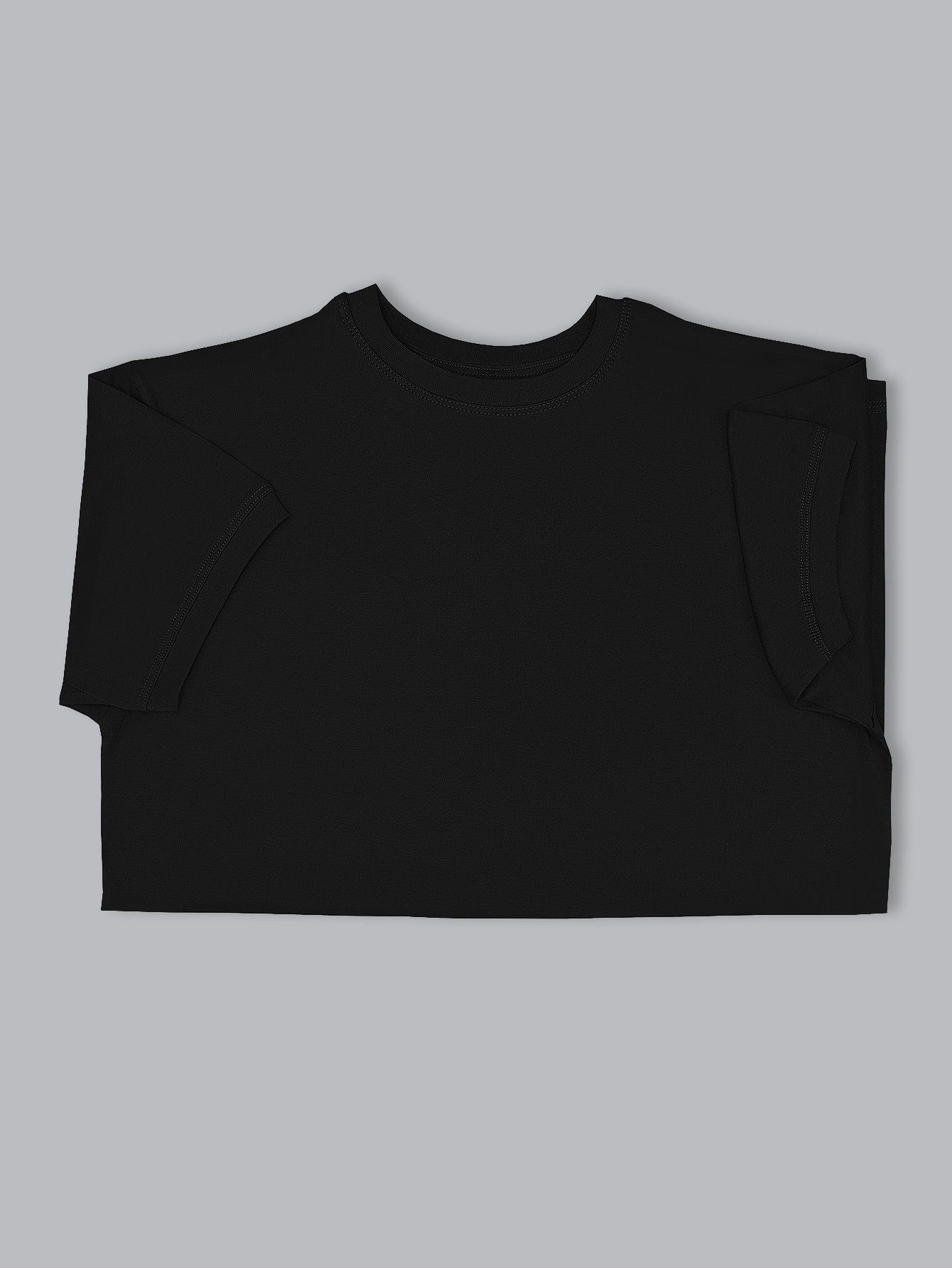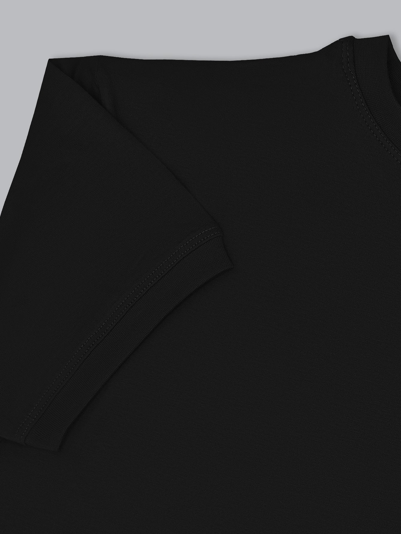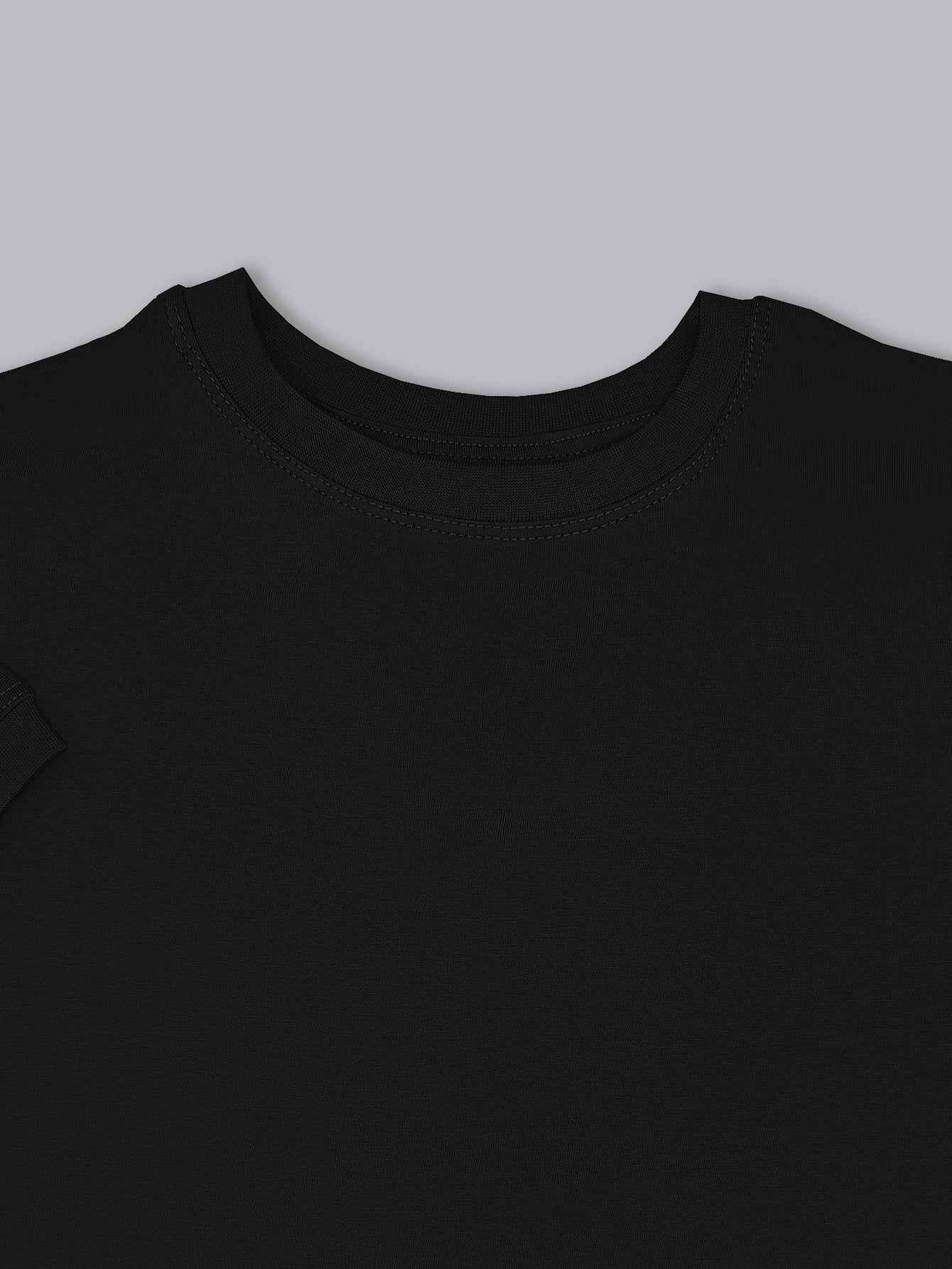 تيشيرت ولادي مضلع بياقة دائرية - أسود