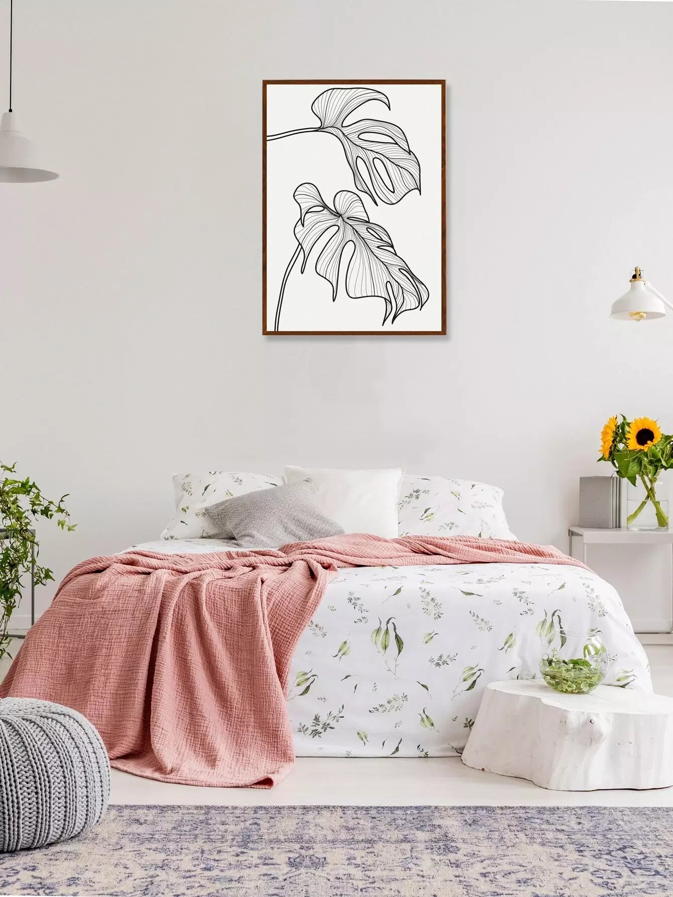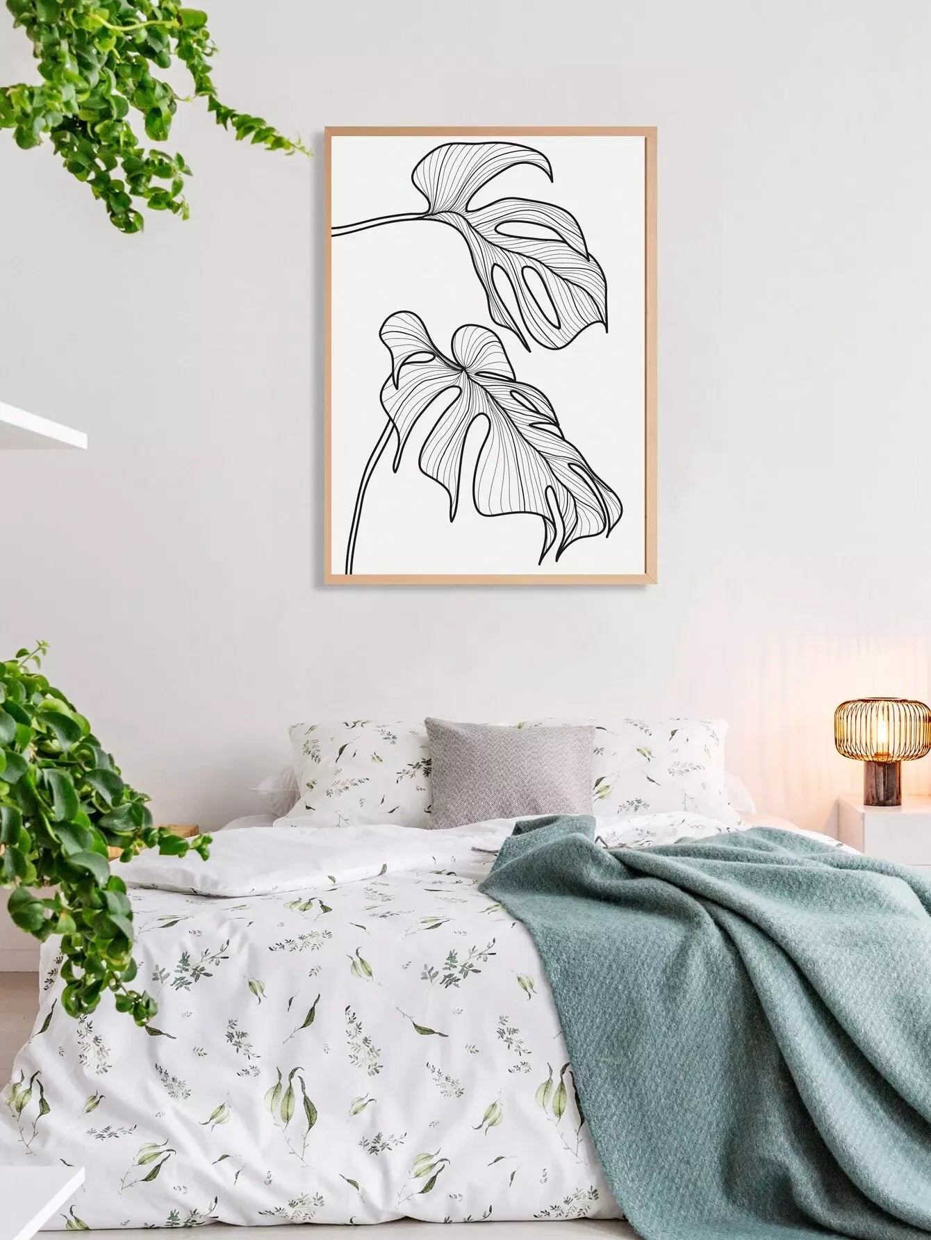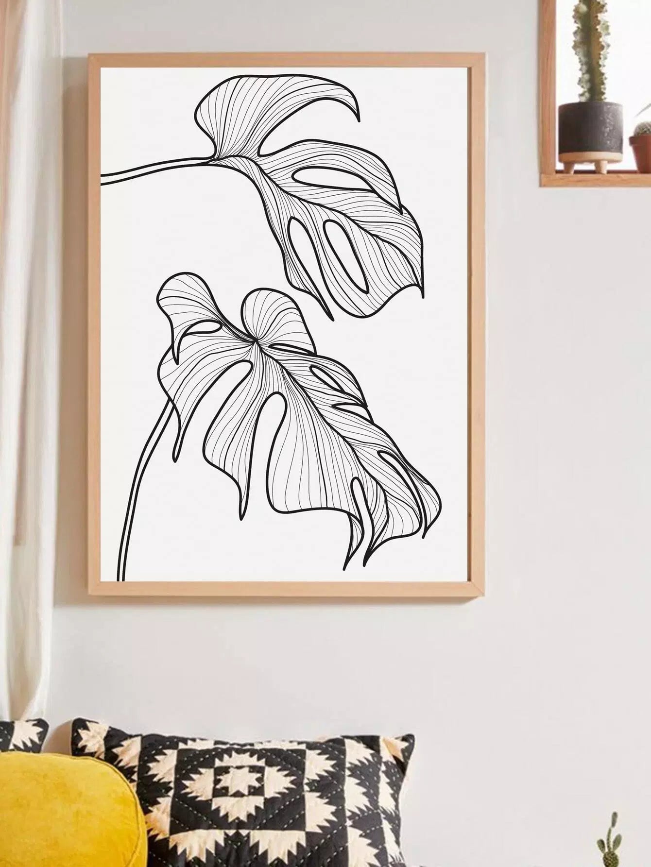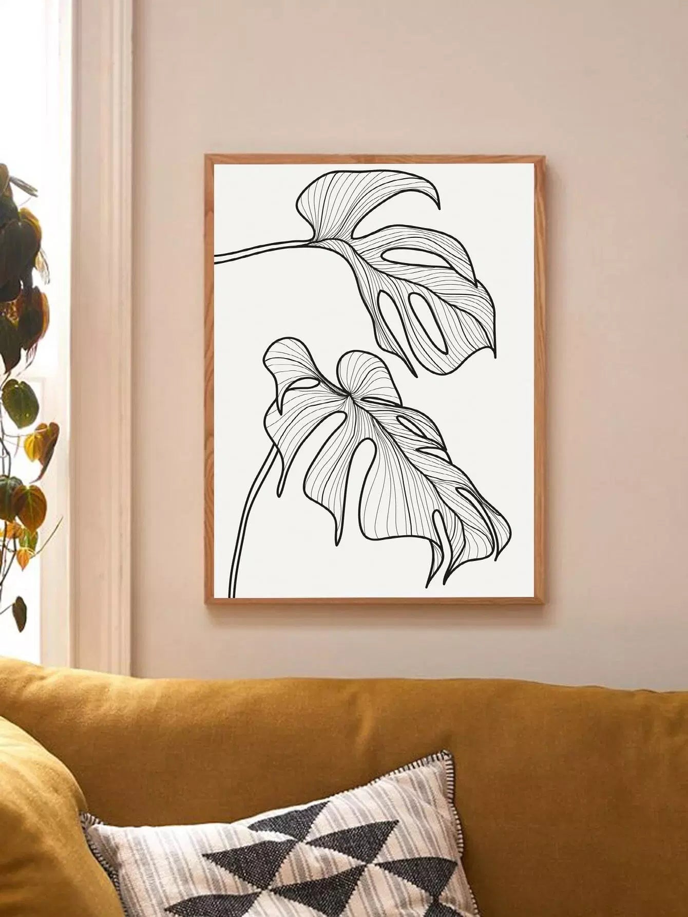 المنزل والمعيشة - لوحة جدارية مطبوعة بأوراق الشجر بدون إطار