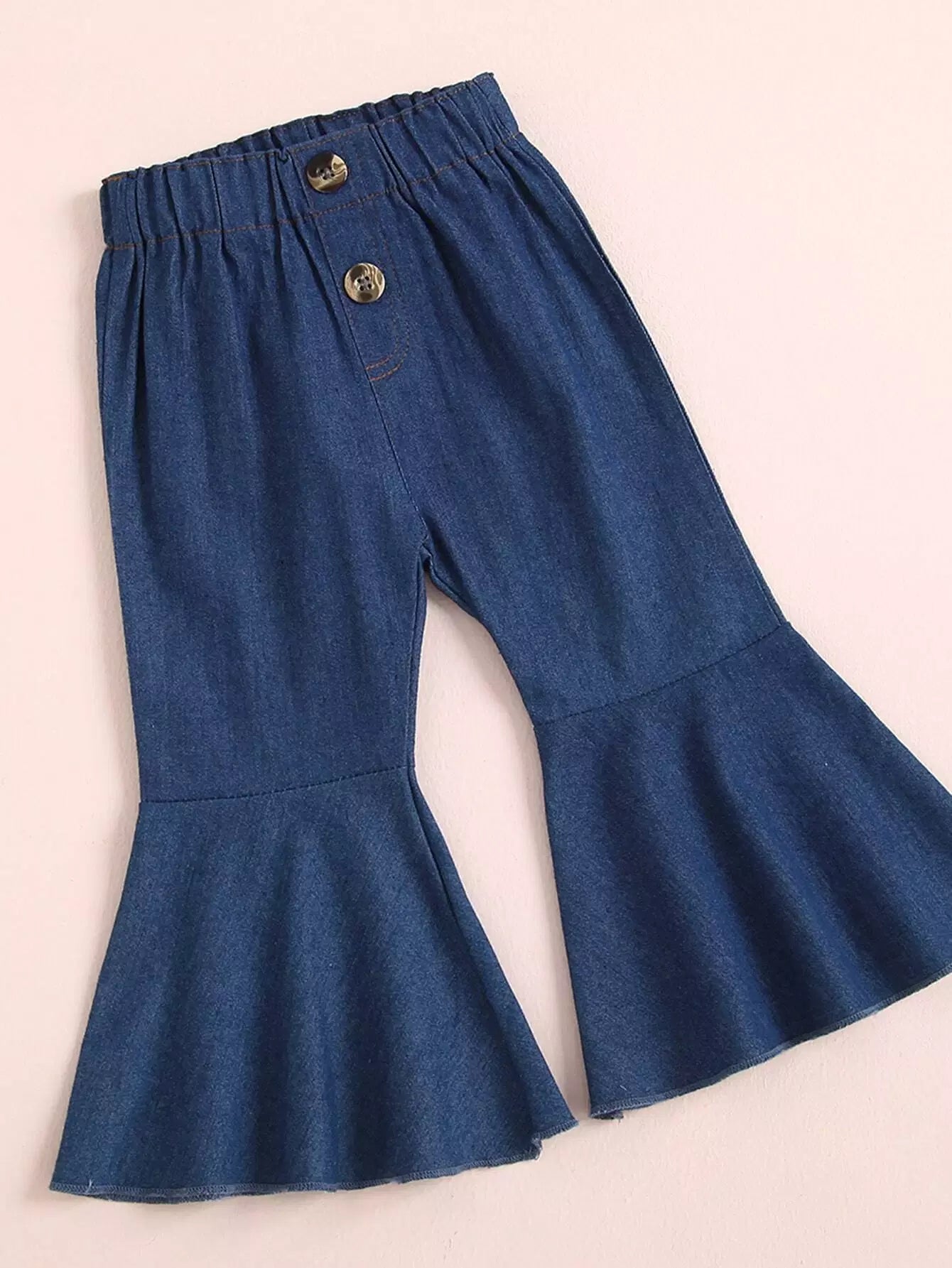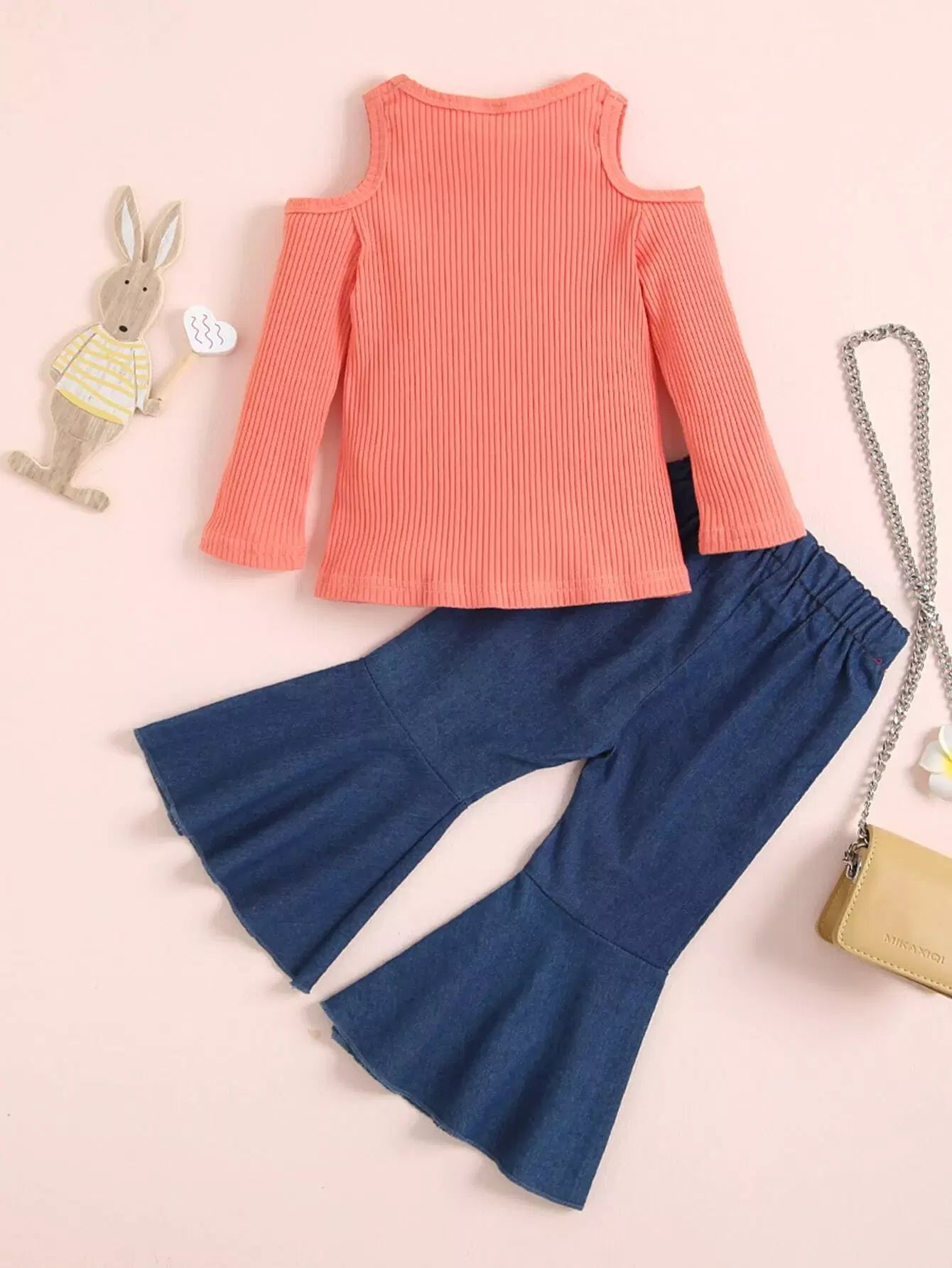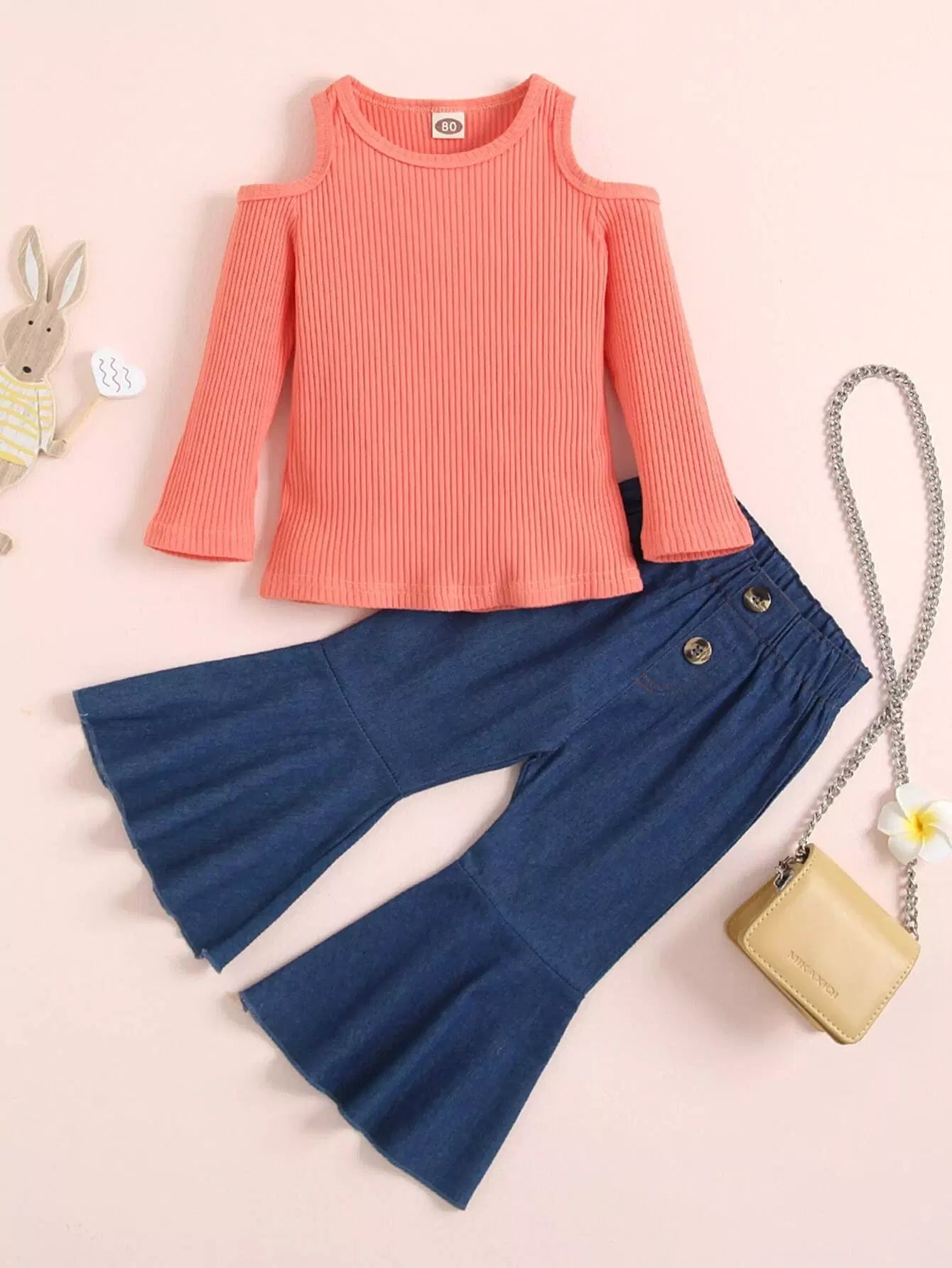 تي شيرت بأكتاف باردة مع بنطلون جينز بقصّة واسعة الساقين