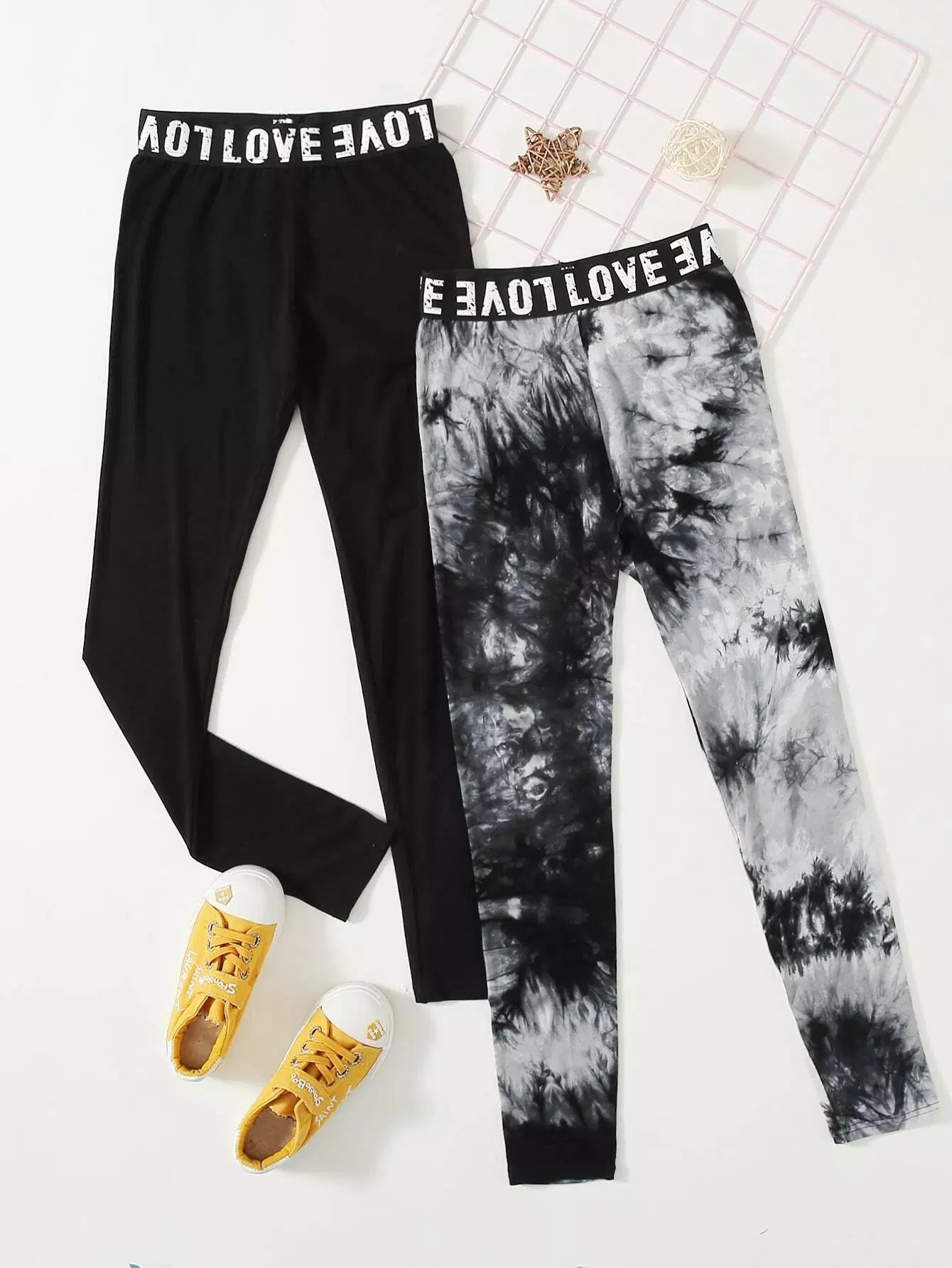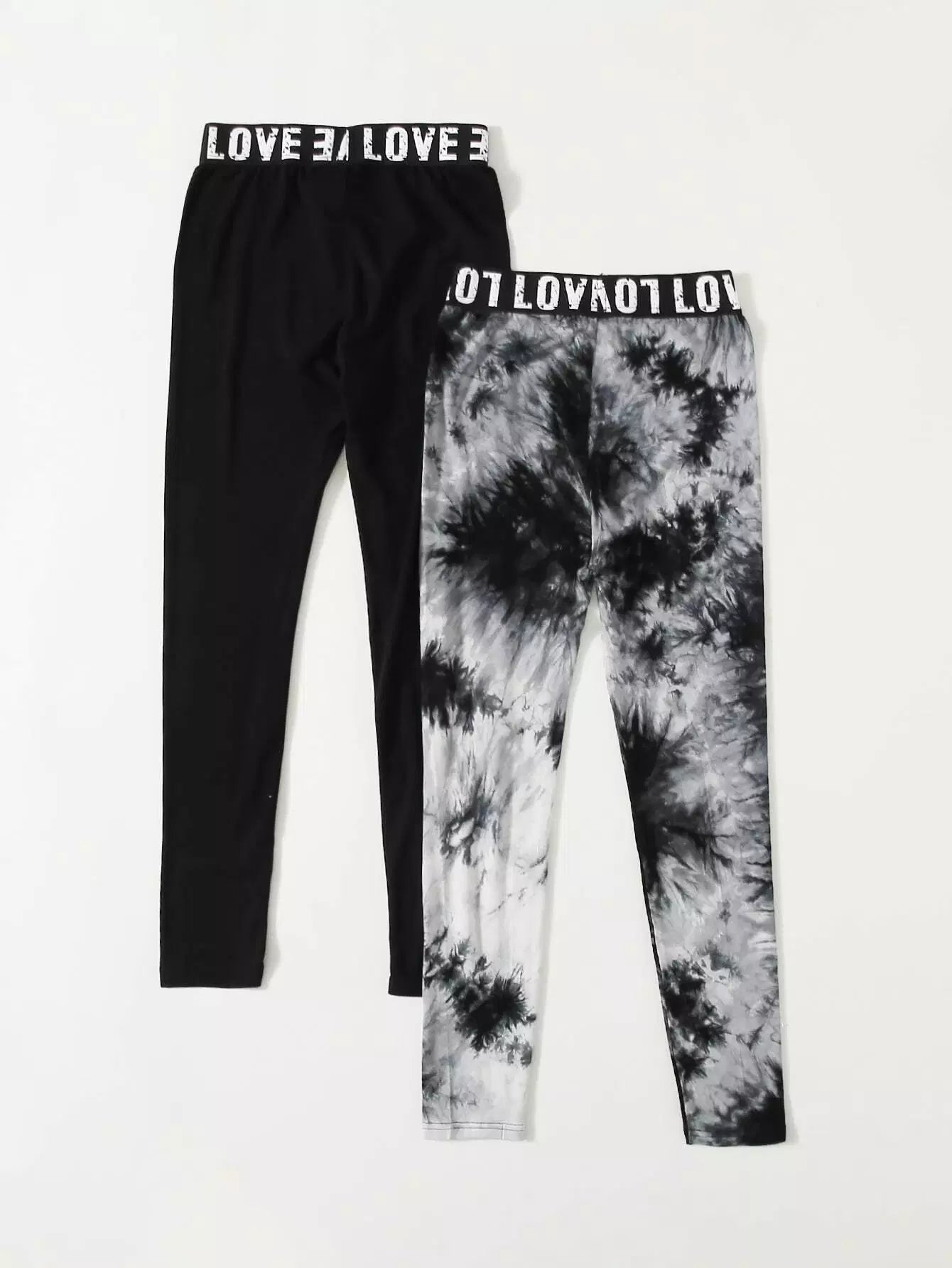 مجموعة من 2 بنطلون ضيق بشريط حروف للبنات