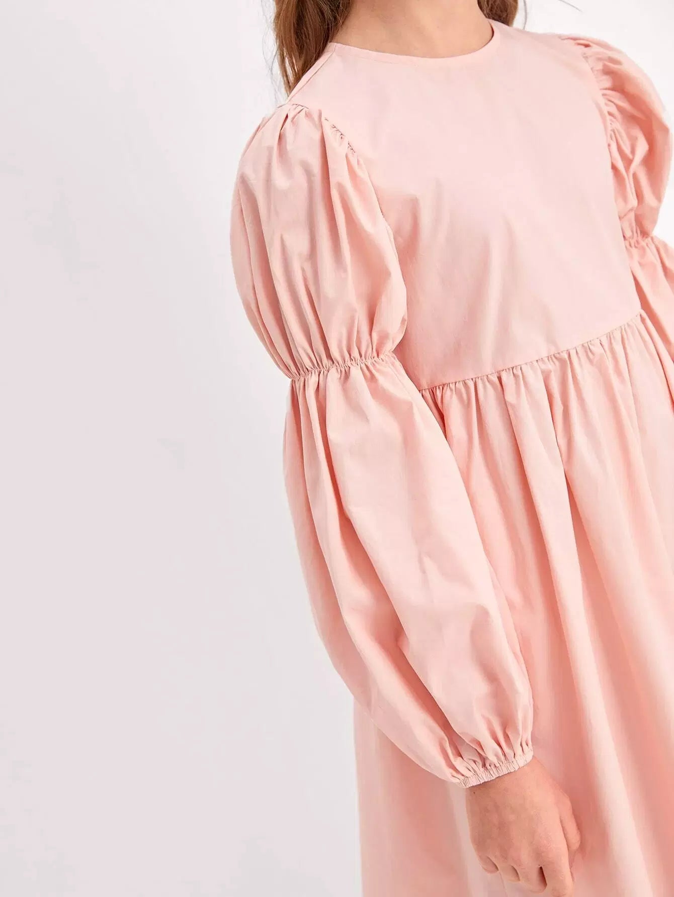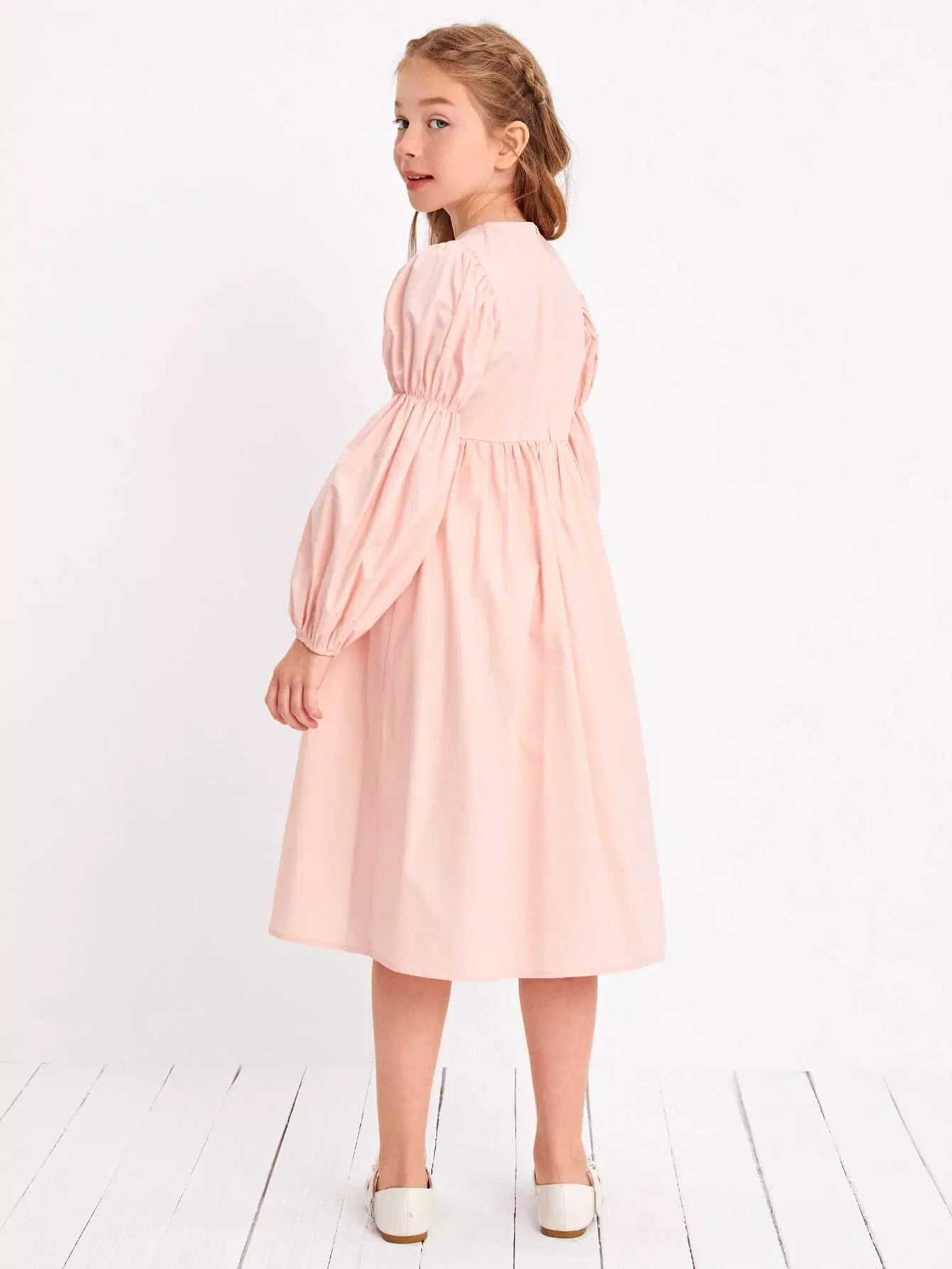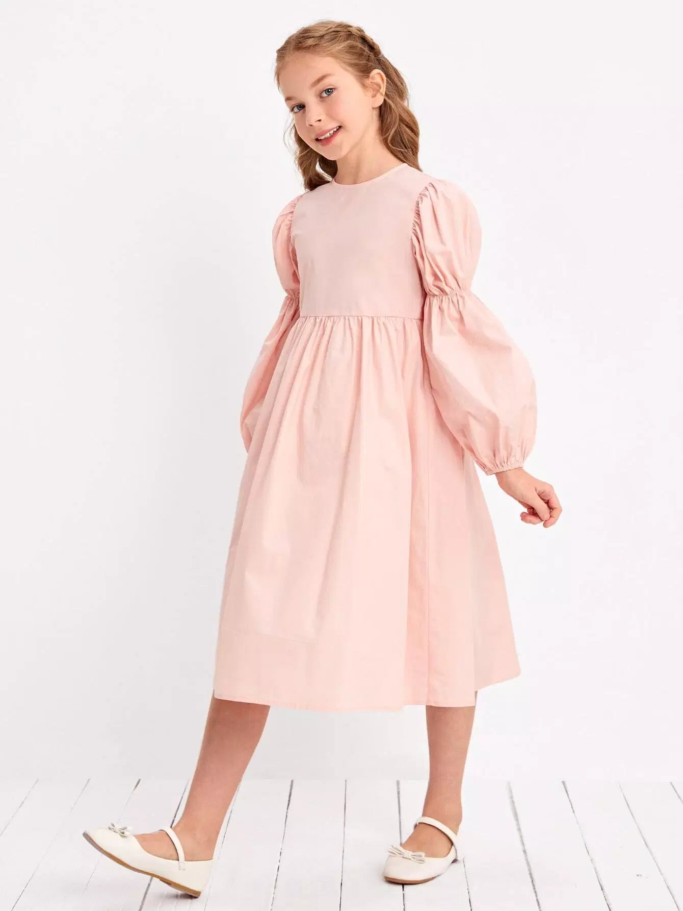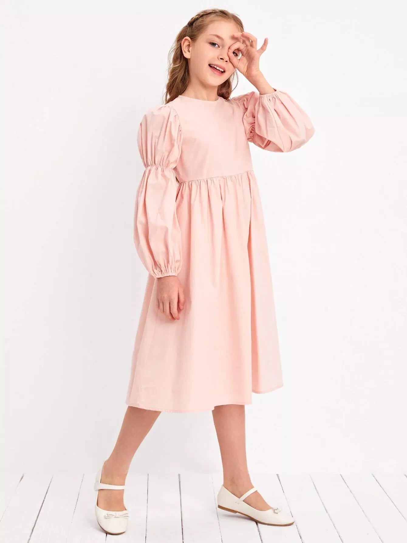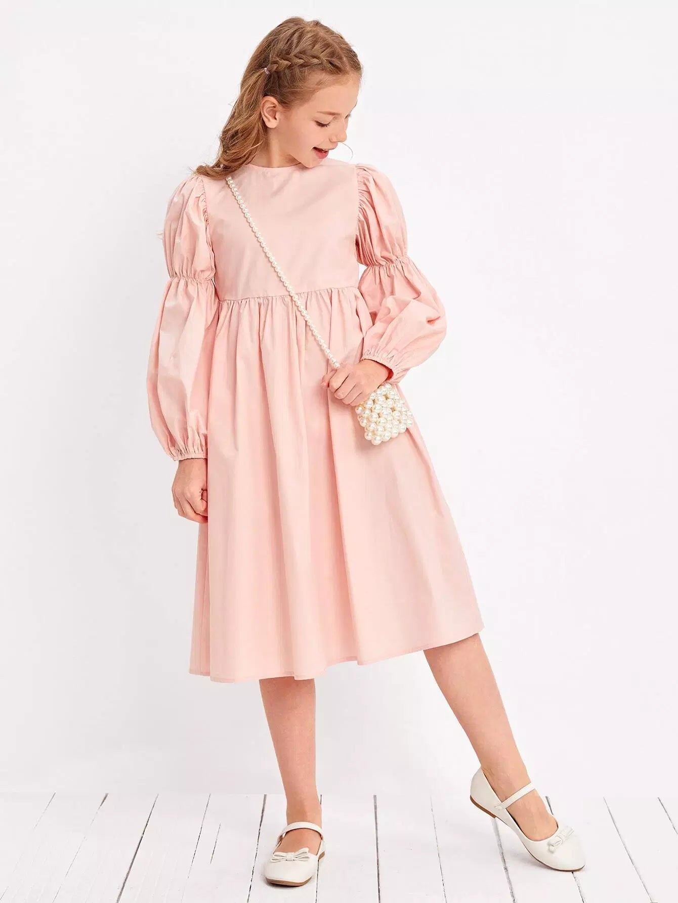 الأطفال - فستان سادة بأكمام أسقف للفتيات