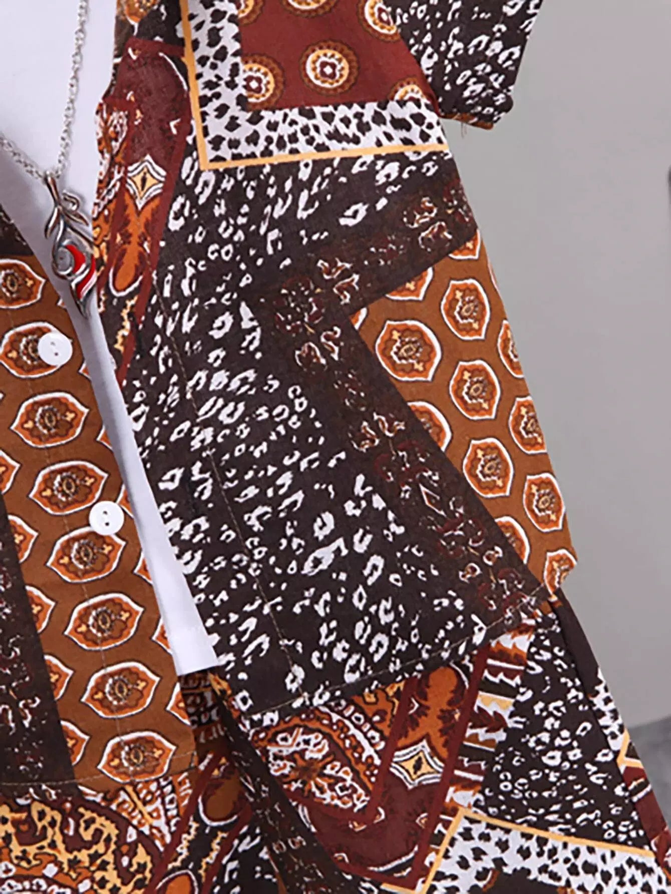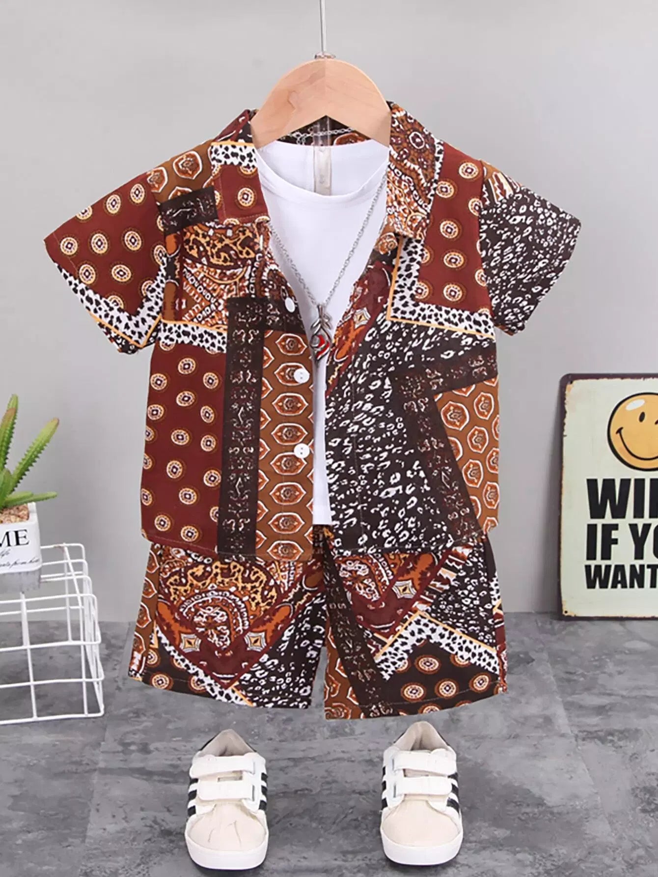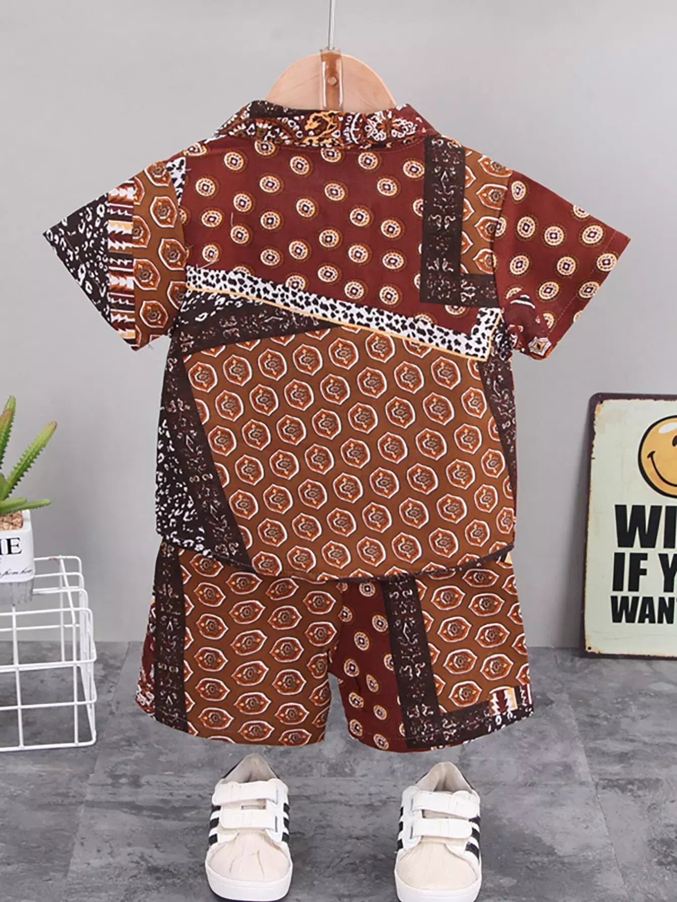 قميص أطفال صغار بنقشة جيو مطبوع بأزرار أمامية مع شورت