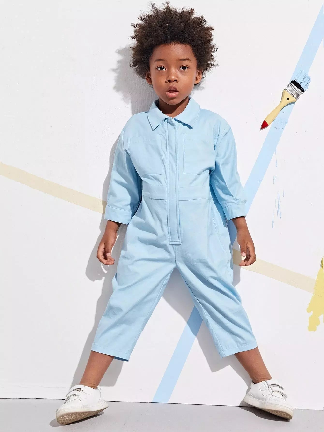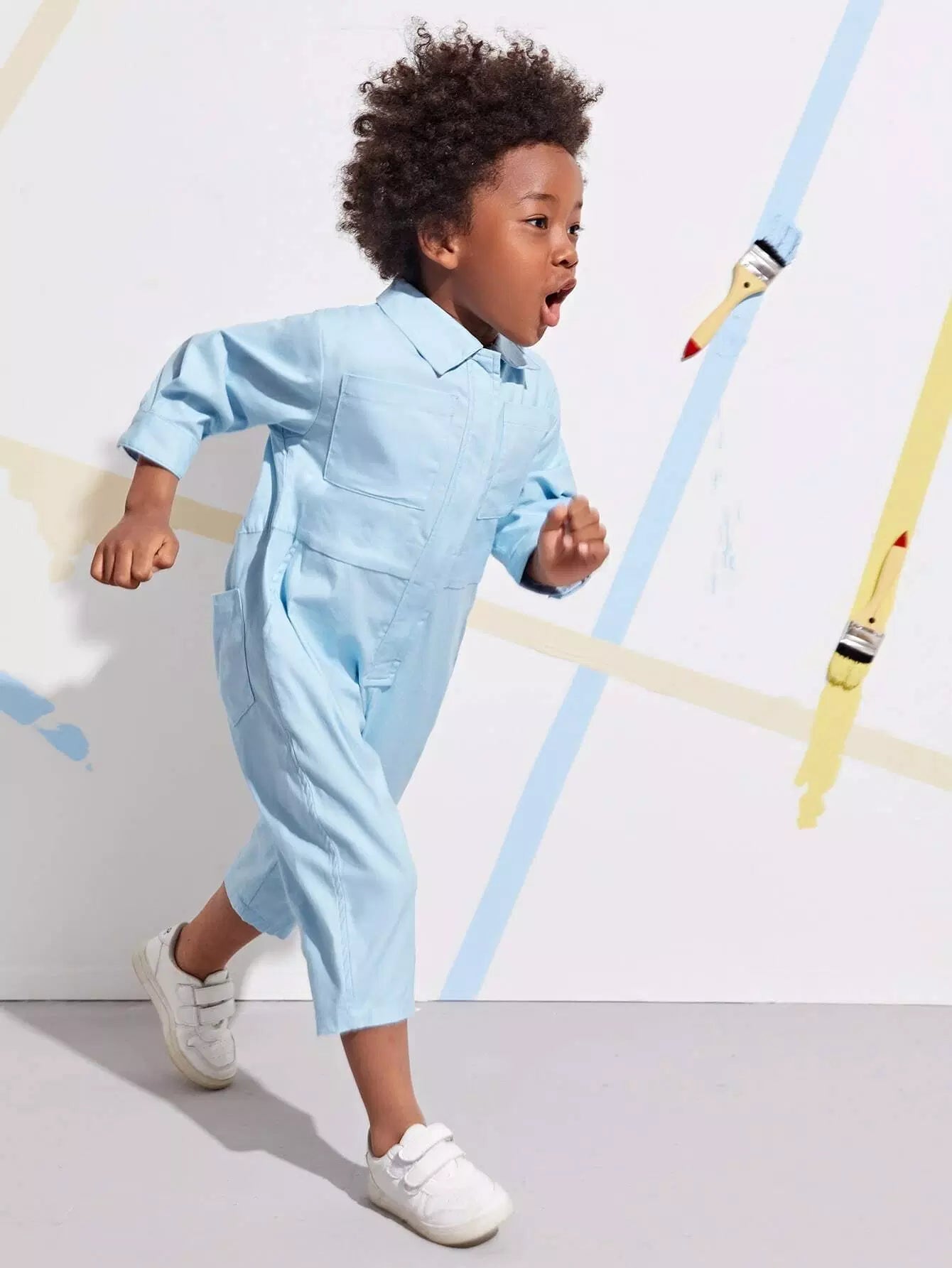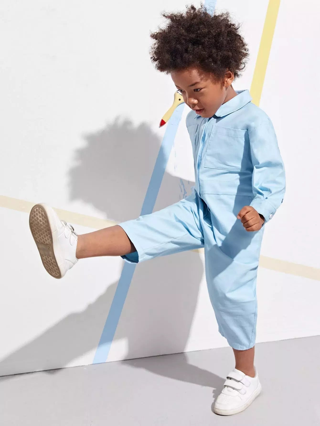 جمبسوت بقميص بجيب أمامي وطبعة جرافيكية للأولاد الصغار