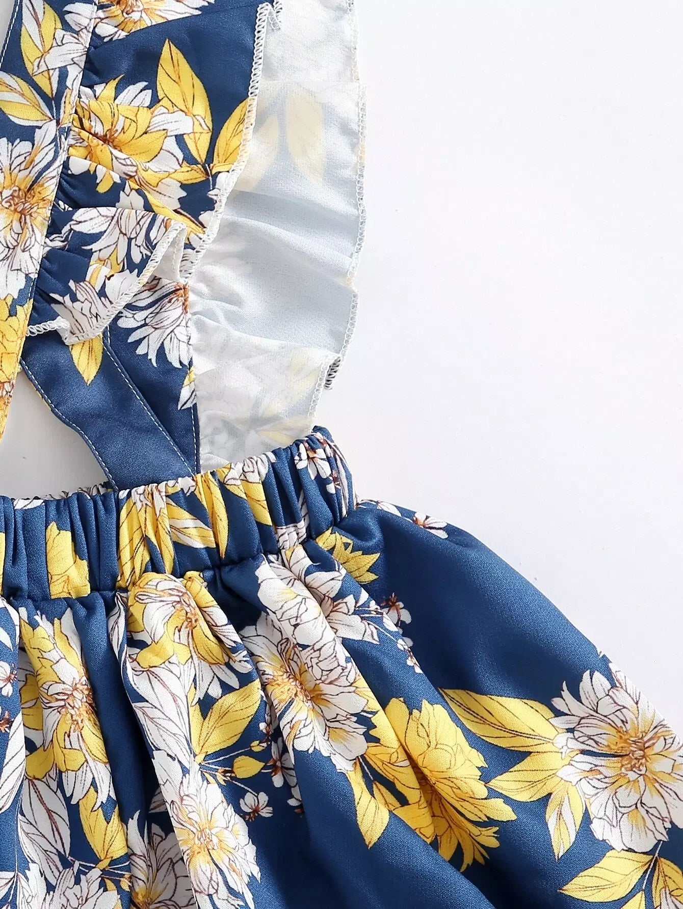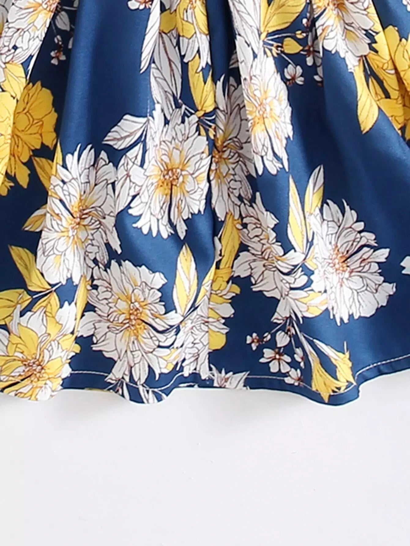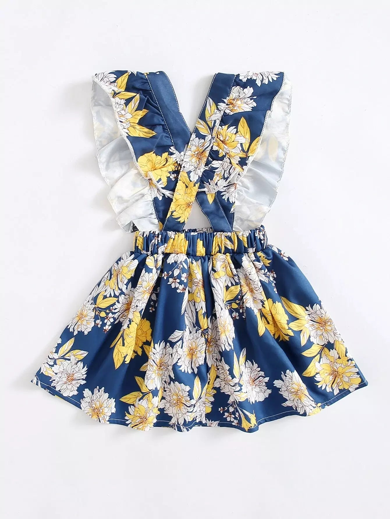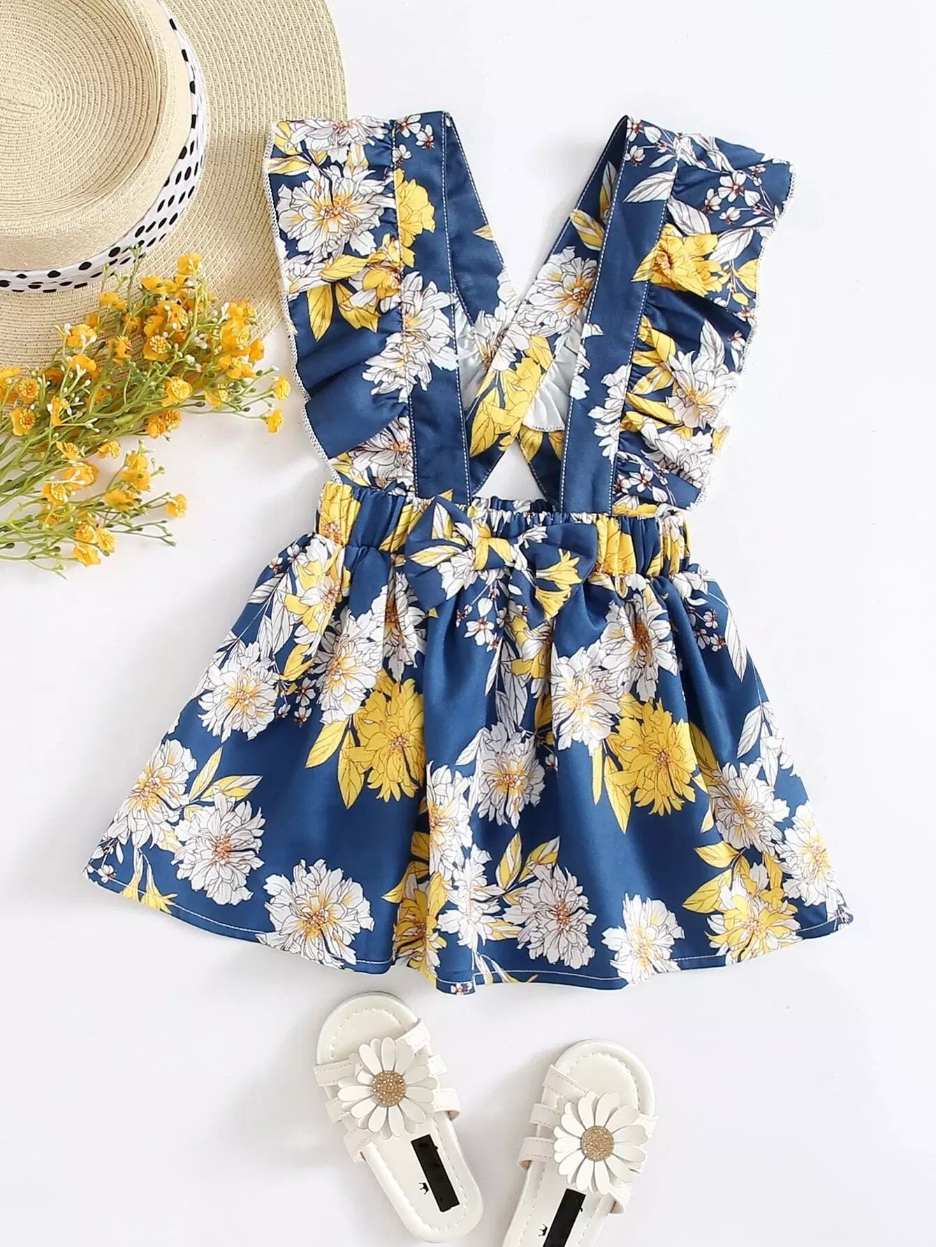 الأطفال - فستان عام للفتيات الصغيرات مزين بالزهور ومكشكش من الأمام