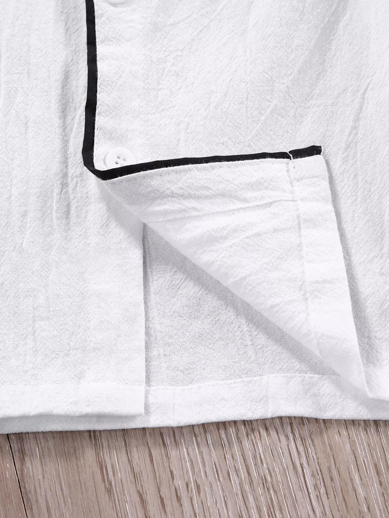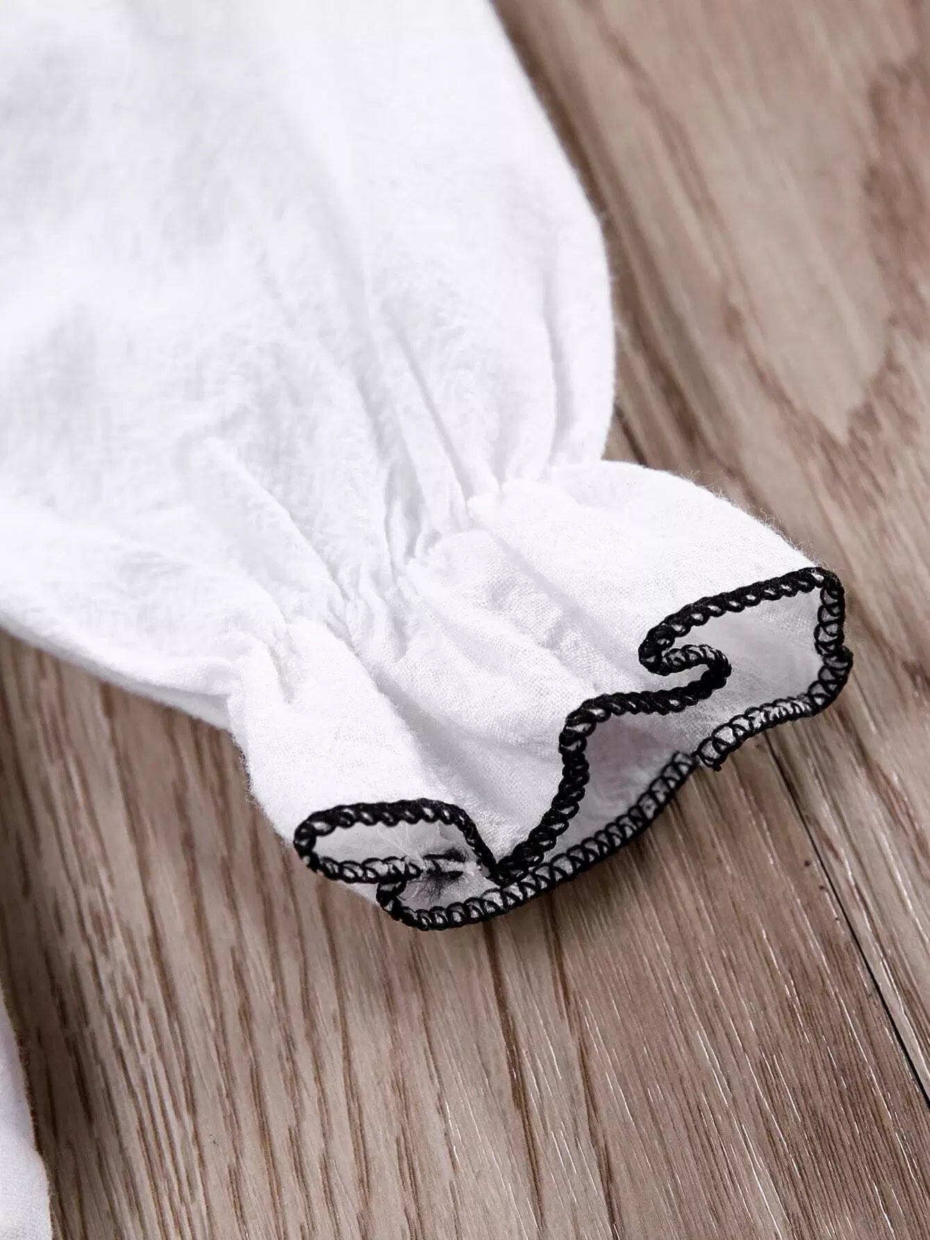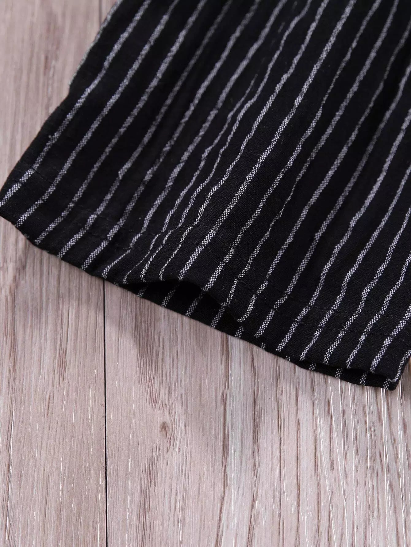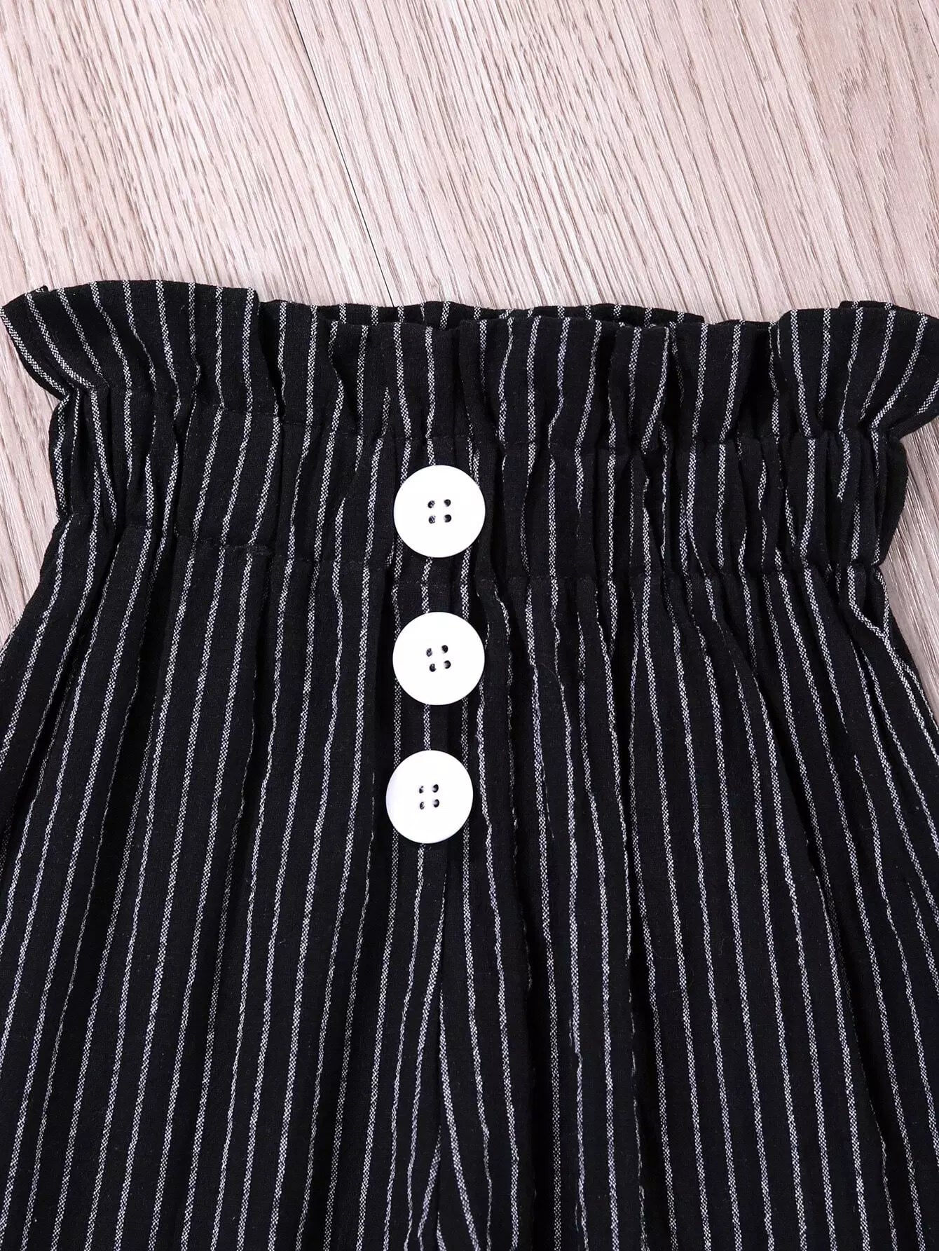 طفل صغير - بلوزة مطرزة بالزهور للفتيات الصغيرات وسروال خصر مخطط على شكل حقيبة ورقية