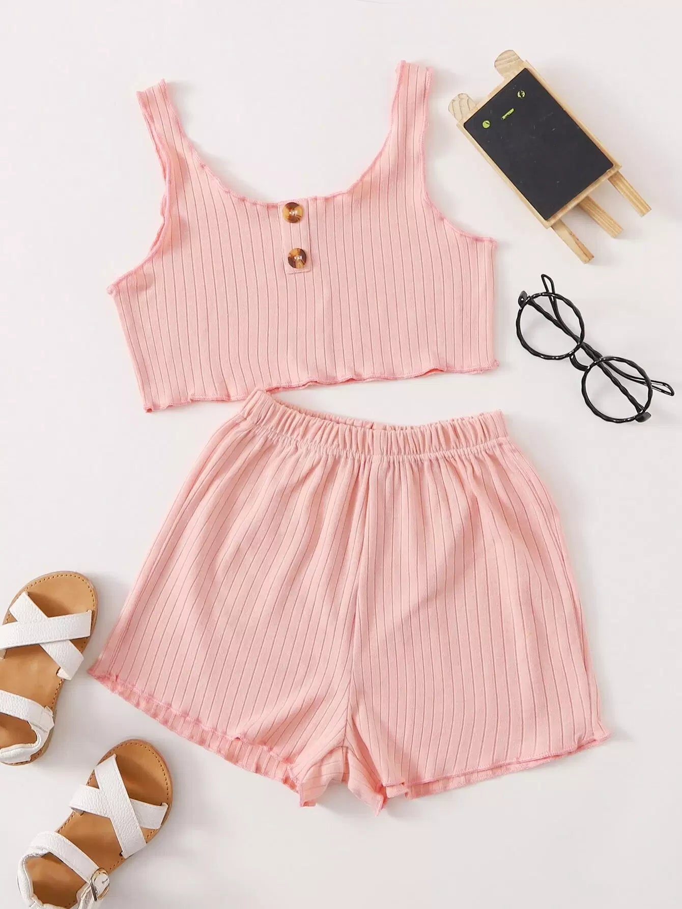 قميص بدون أكمام وبنطلون قصير بنصف زر للبنات