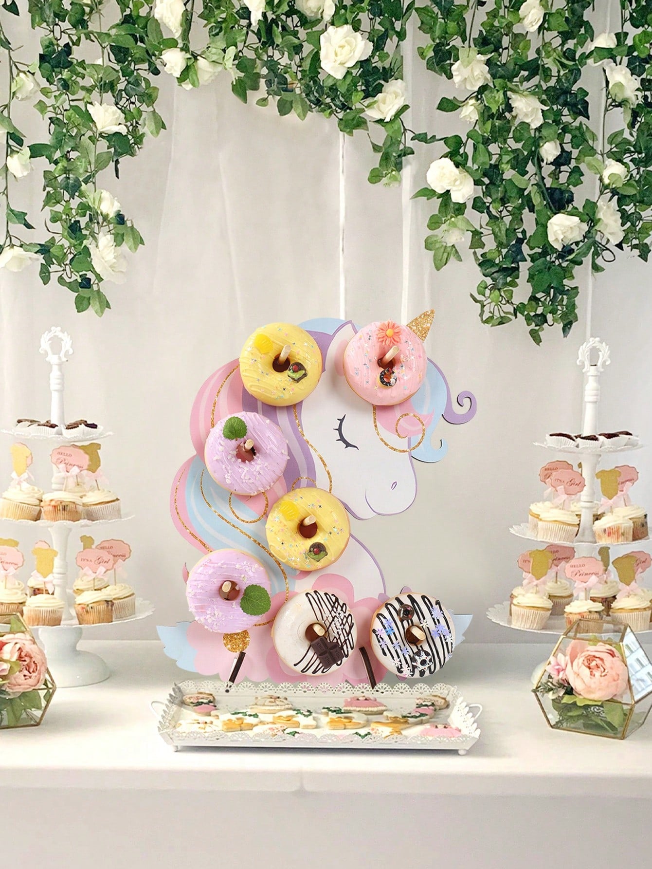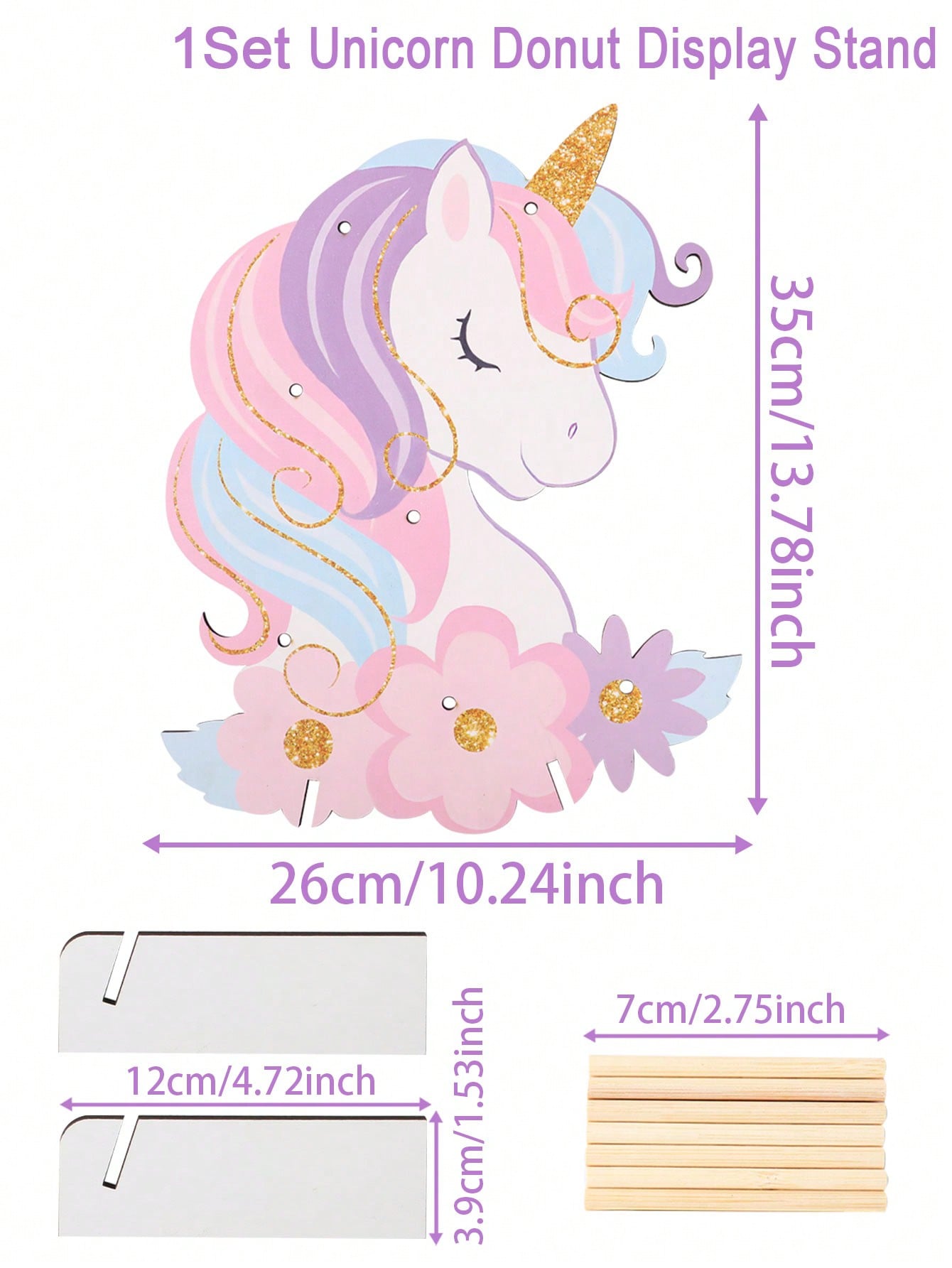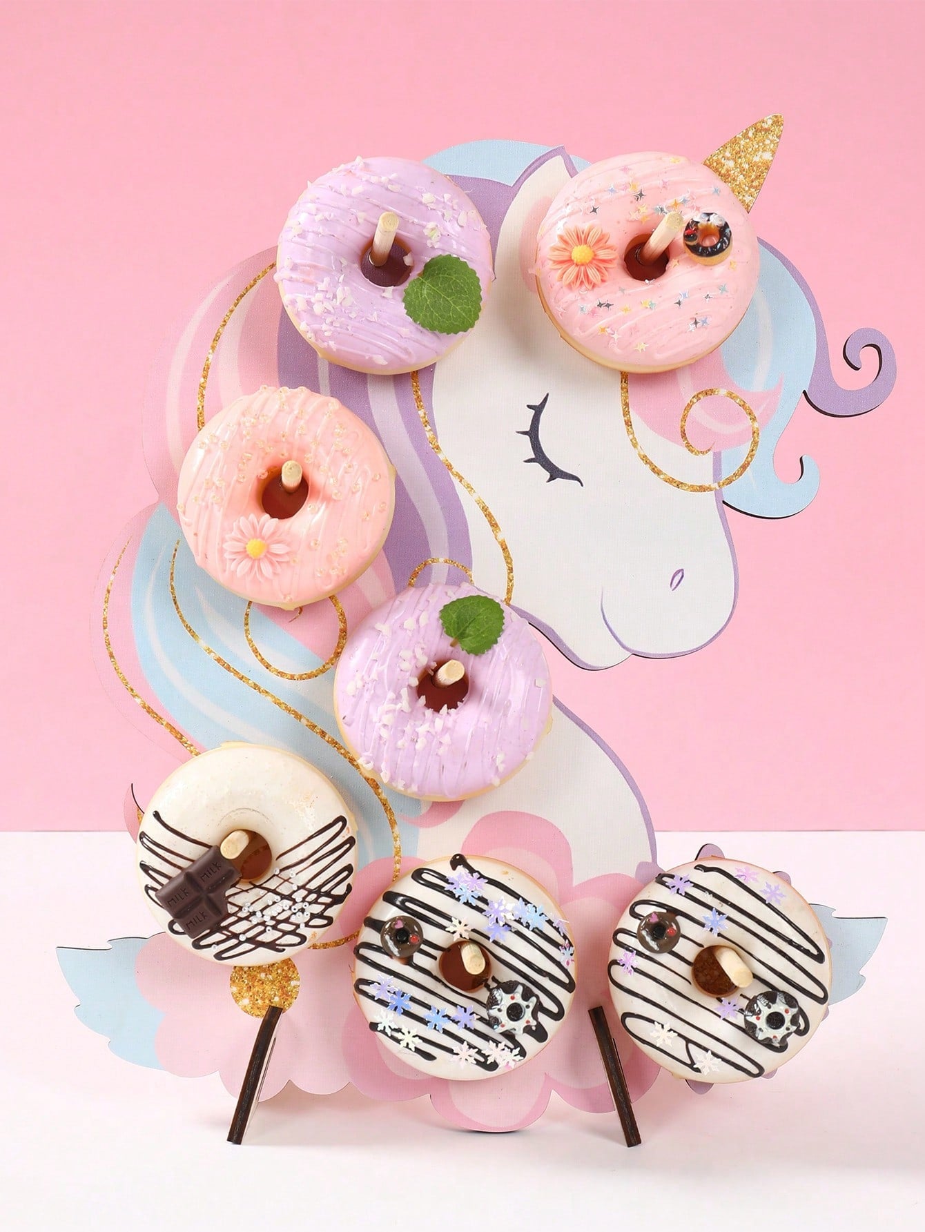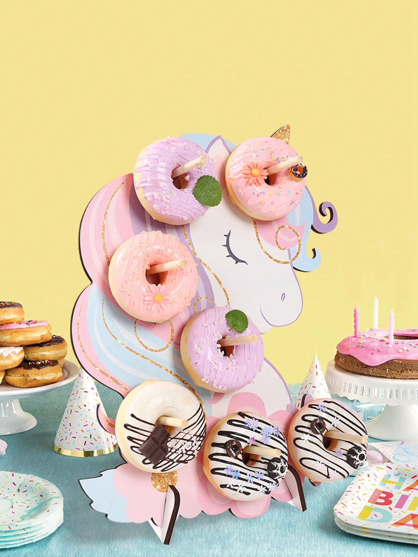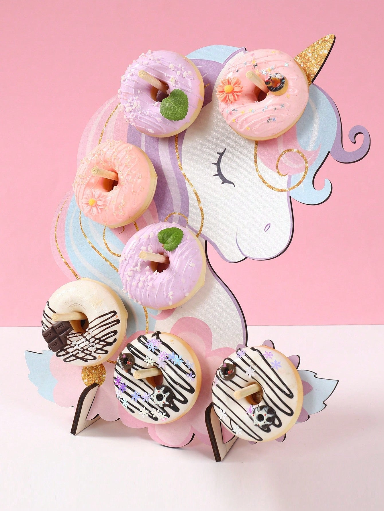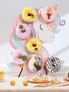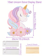 حامل عرض دونات خشبي بتصميم يونيكورن، قطعة واحدة، حامل دونات حلو، لوحة زينة لحفلات الزفاف وأعياد الميلاد، يونيكورن