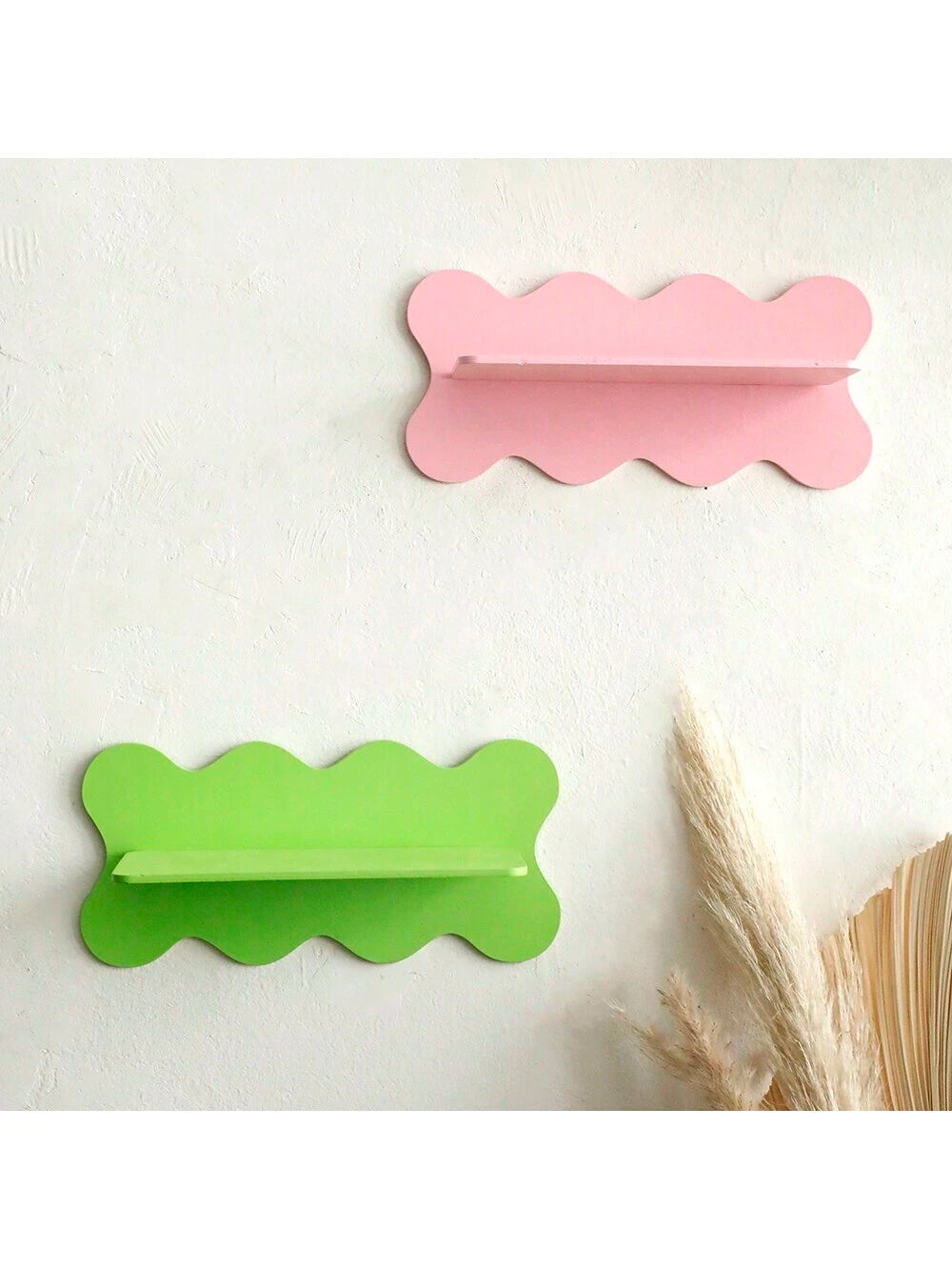 رف عائم مموج قطعة واحدة، رفوف سحابية لطيفة، ديكور غرفة دنماركي كاواي، رف حائط متعرج مميز، رف كتب أنيق لغرفة النوم والحمام