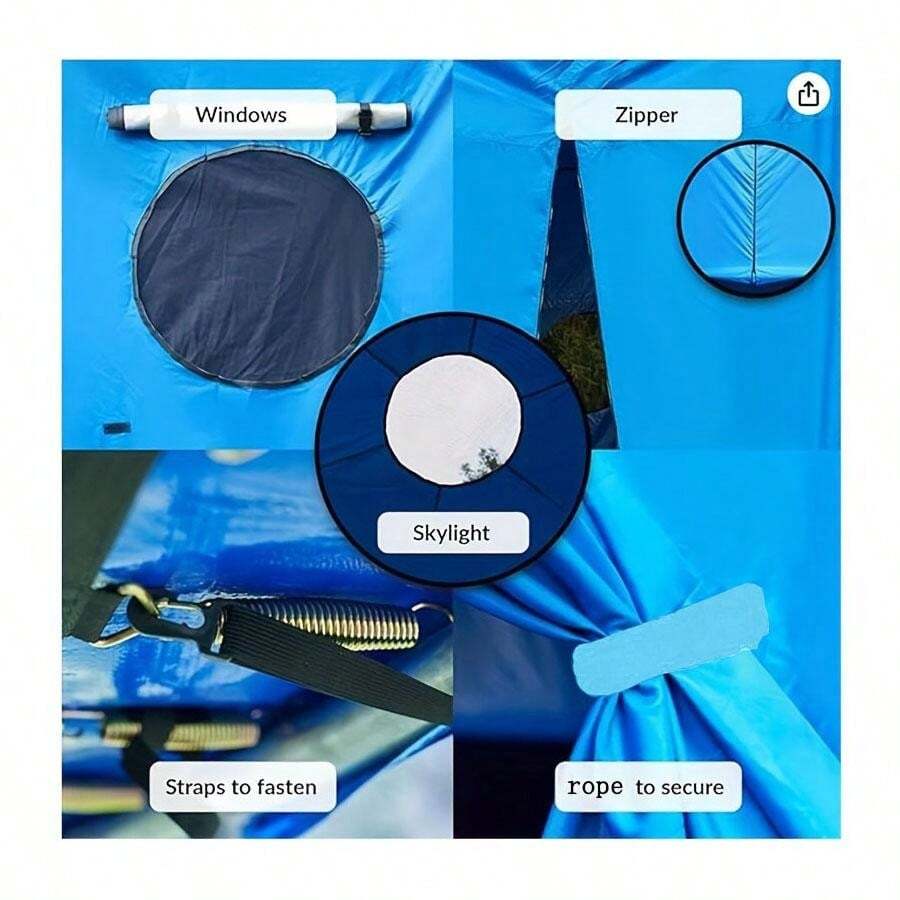 خيمة ترامبولين تناسب غطاء خيمة الترامبولين الدائرية ذات الأعمدة المستقيمة (الخيمة فقط) أزرق/أخضر
