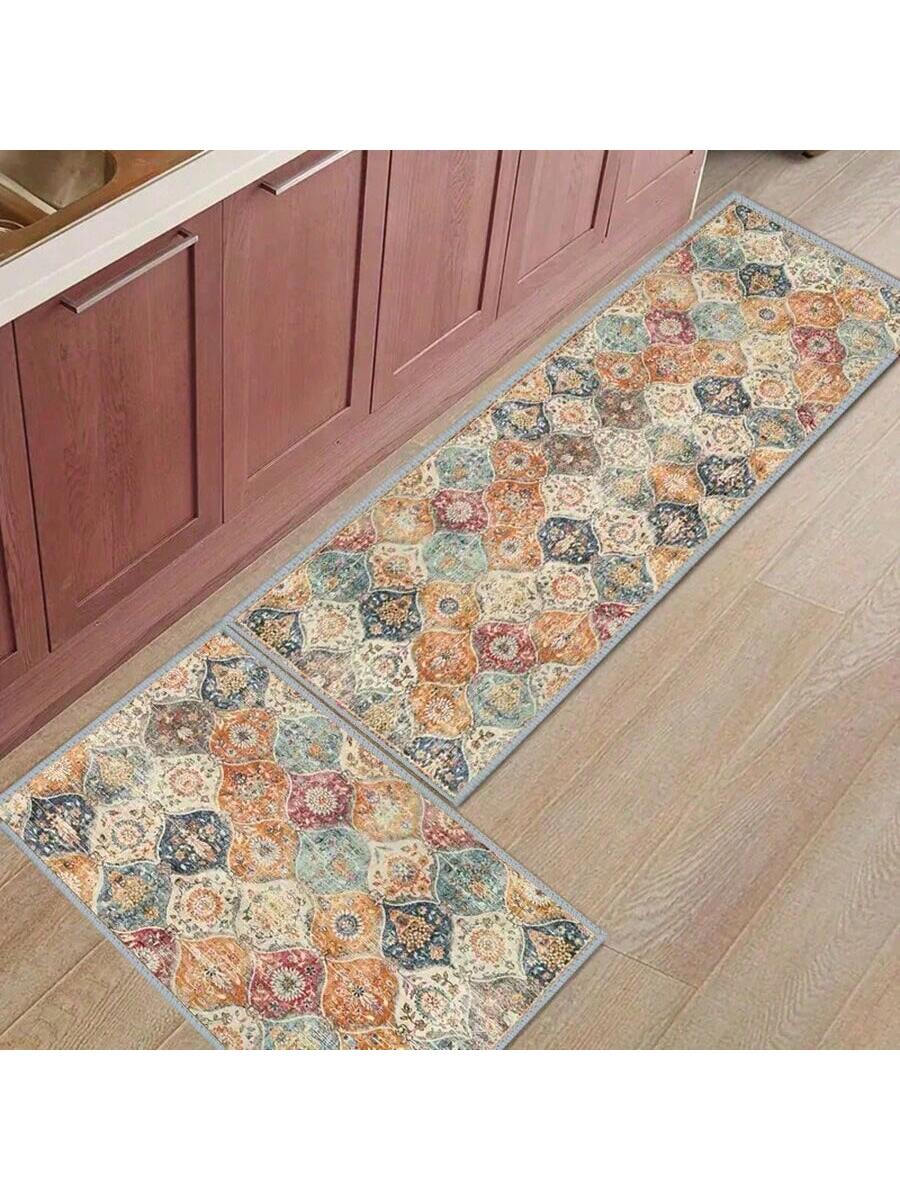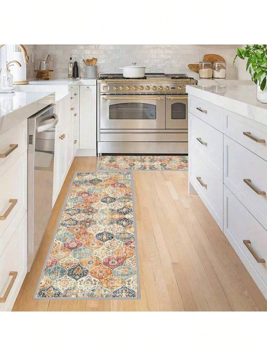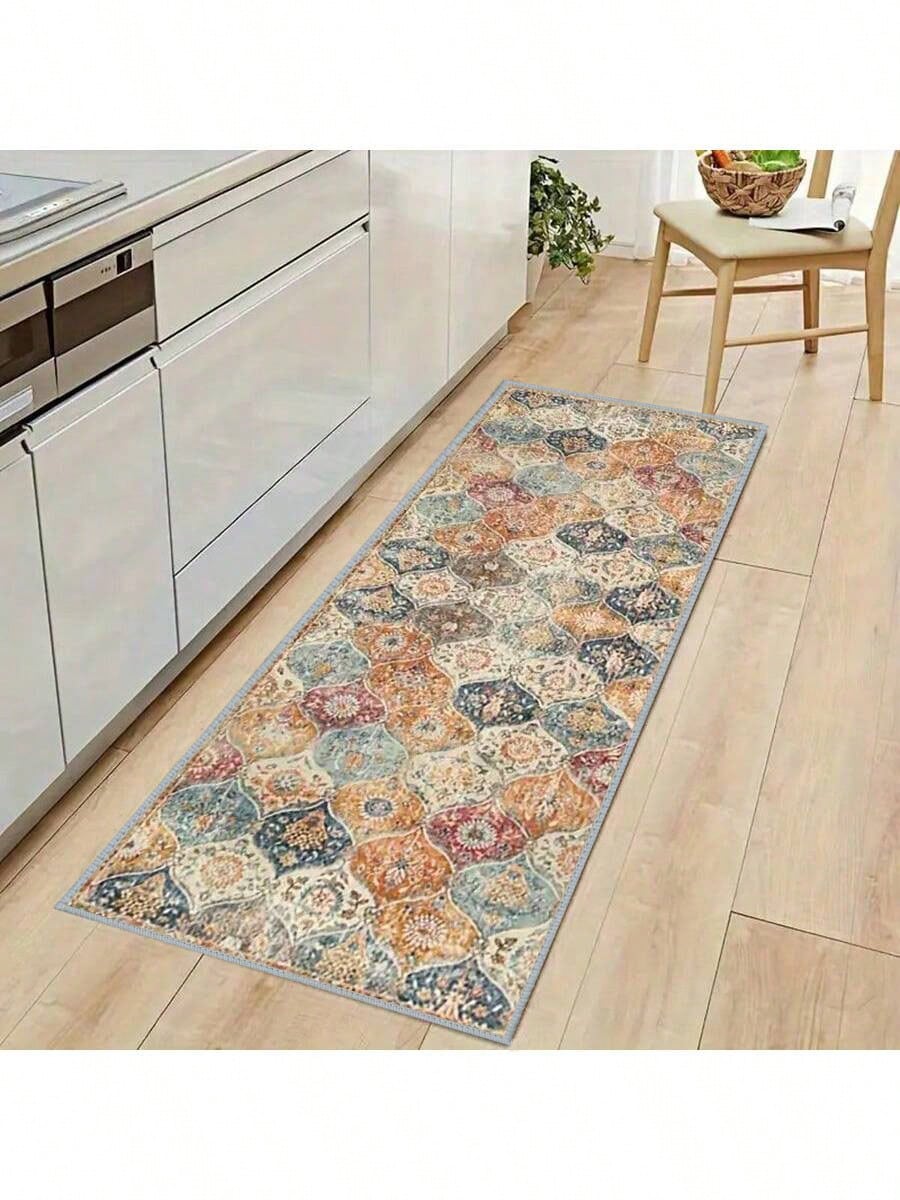 سجادة أرضية للمطبخ مطبوعة بنقوش زهور مغربية بوهيمية عتيقة، قطعة واحدة