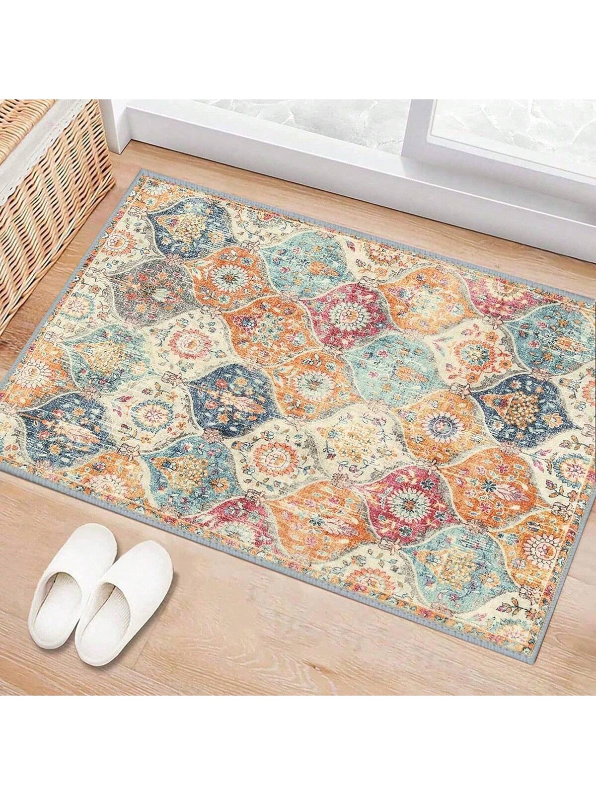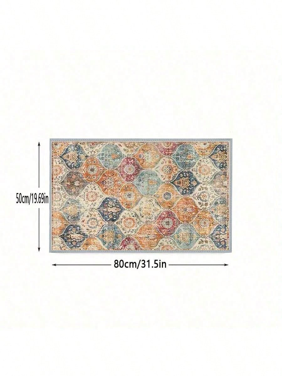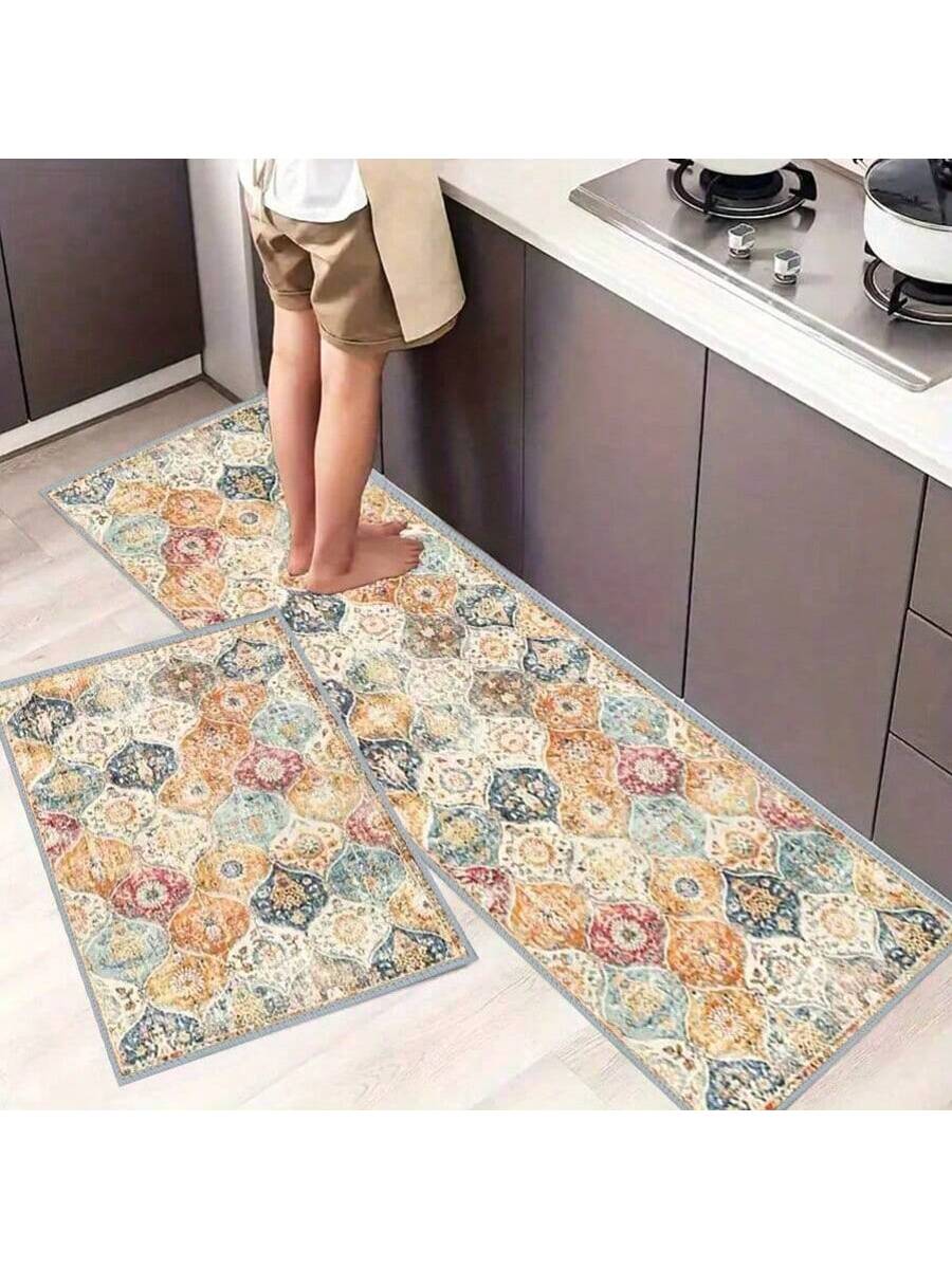 سجادة أرضية للمطبخ مطبوعة بنقوش زهور مغربية بوهيمية عتيقة، قطعة واحدة