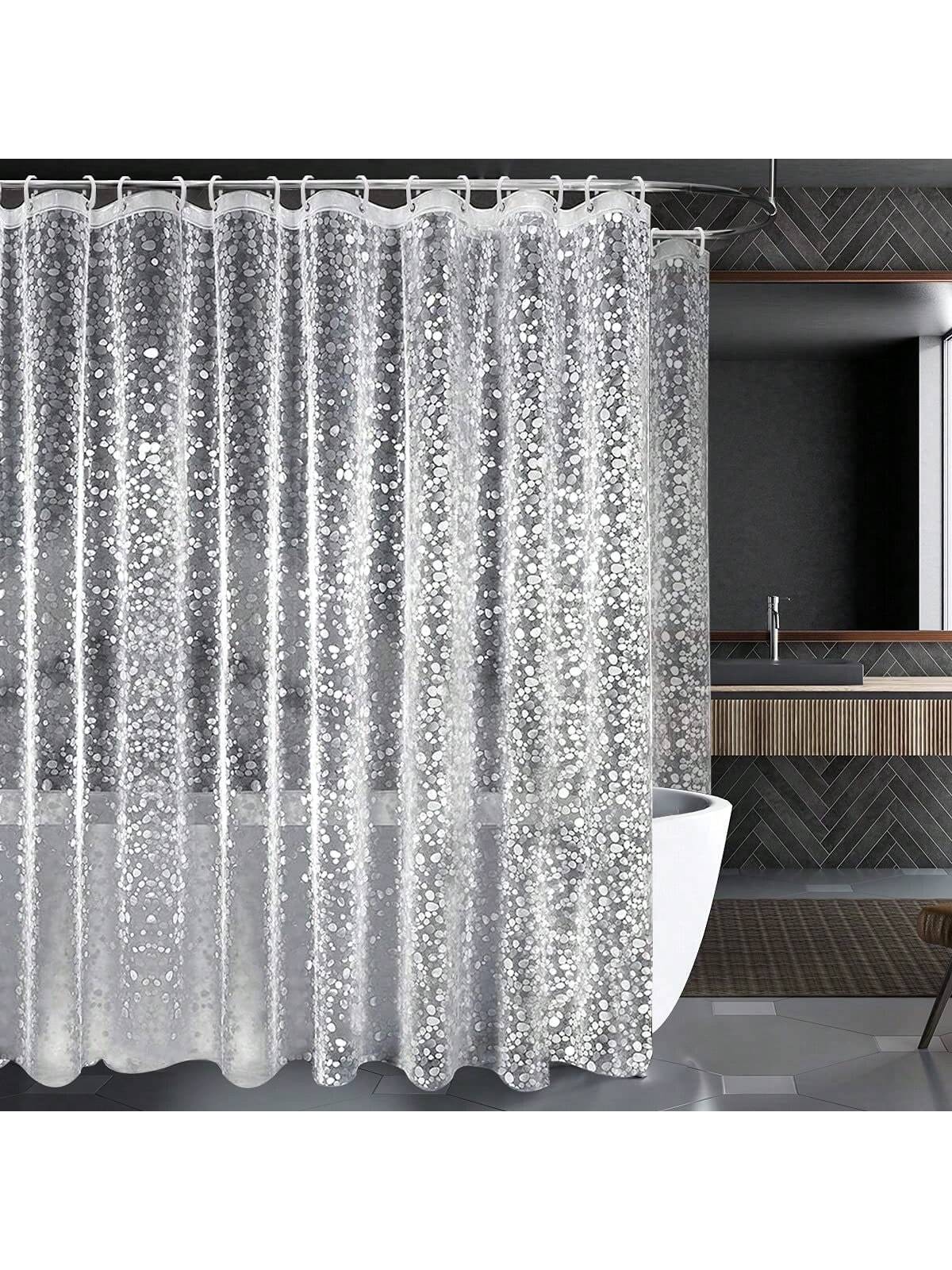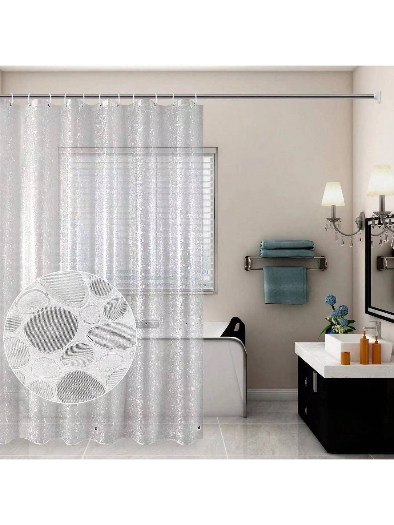 ستارة حمام - ستارة حمام ثلاثية الأبعاد من بلاستيك PEVA بنقشة حصى، مزودة بفتحات حلقات معدنية وملحقات