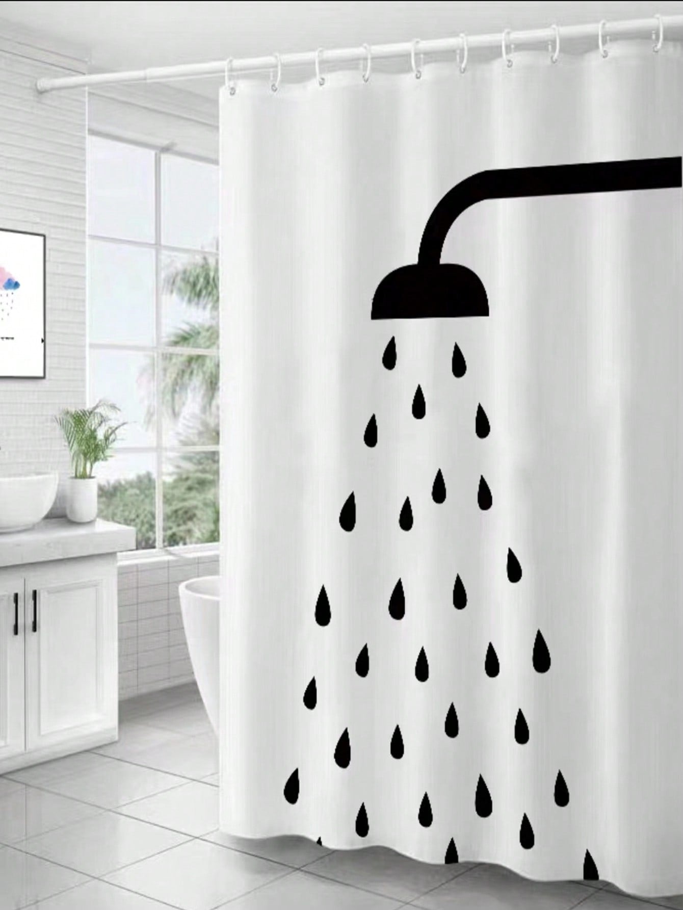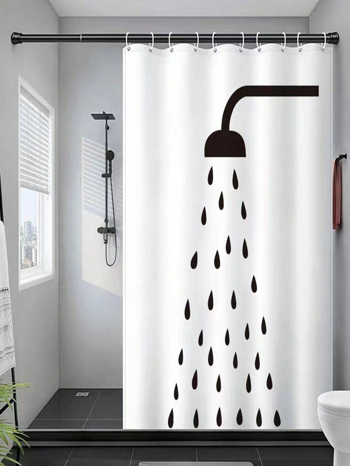ستارة حمام سميكة بنقشة رأس دش أسود