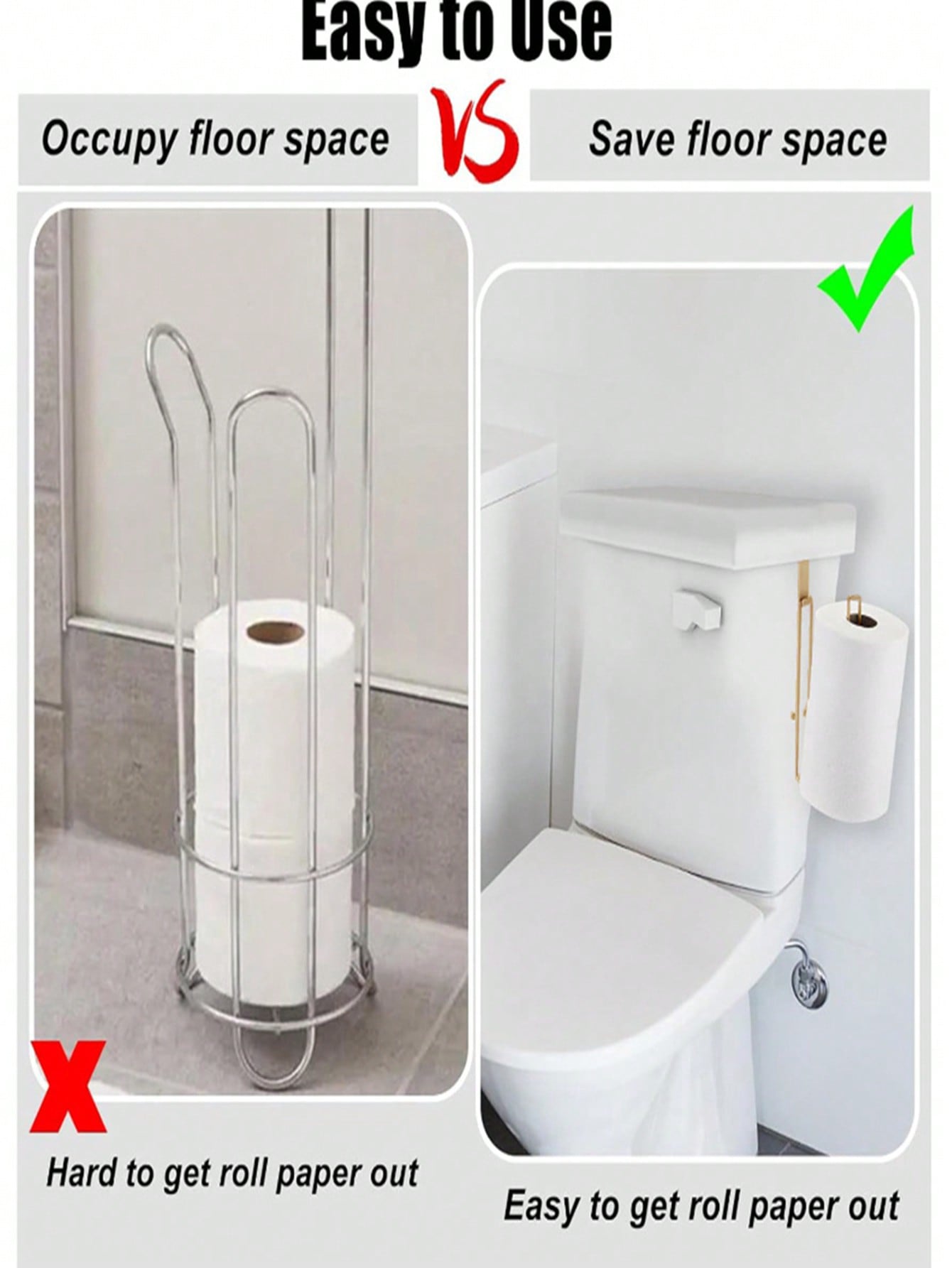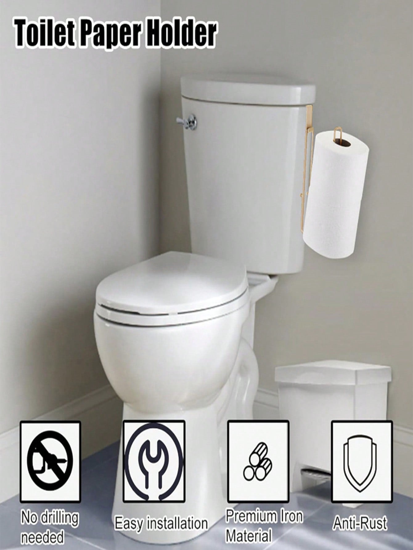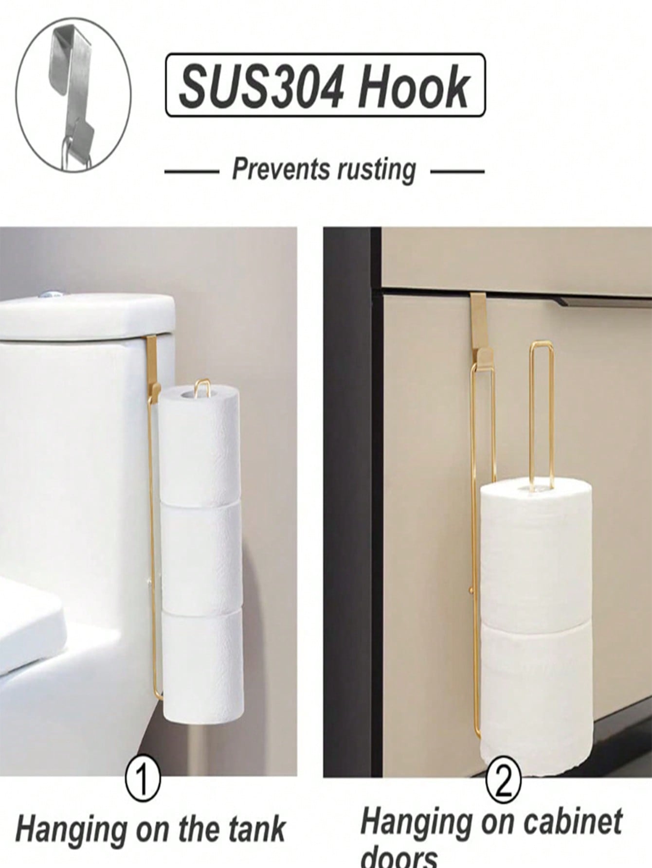 طقم من قطعتين من رفوف ورق التواليت غير المثقبة - رف تخزين للحمام