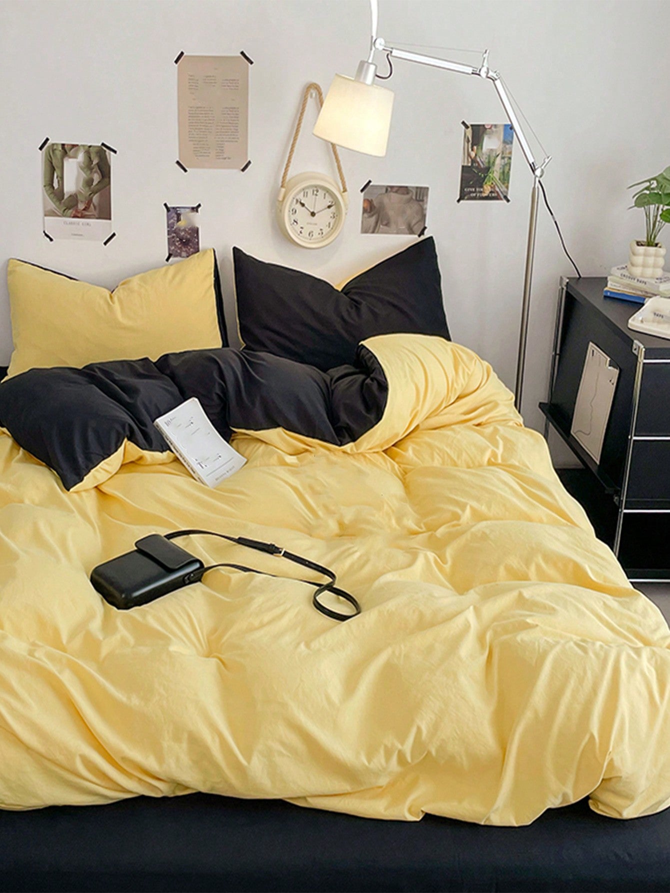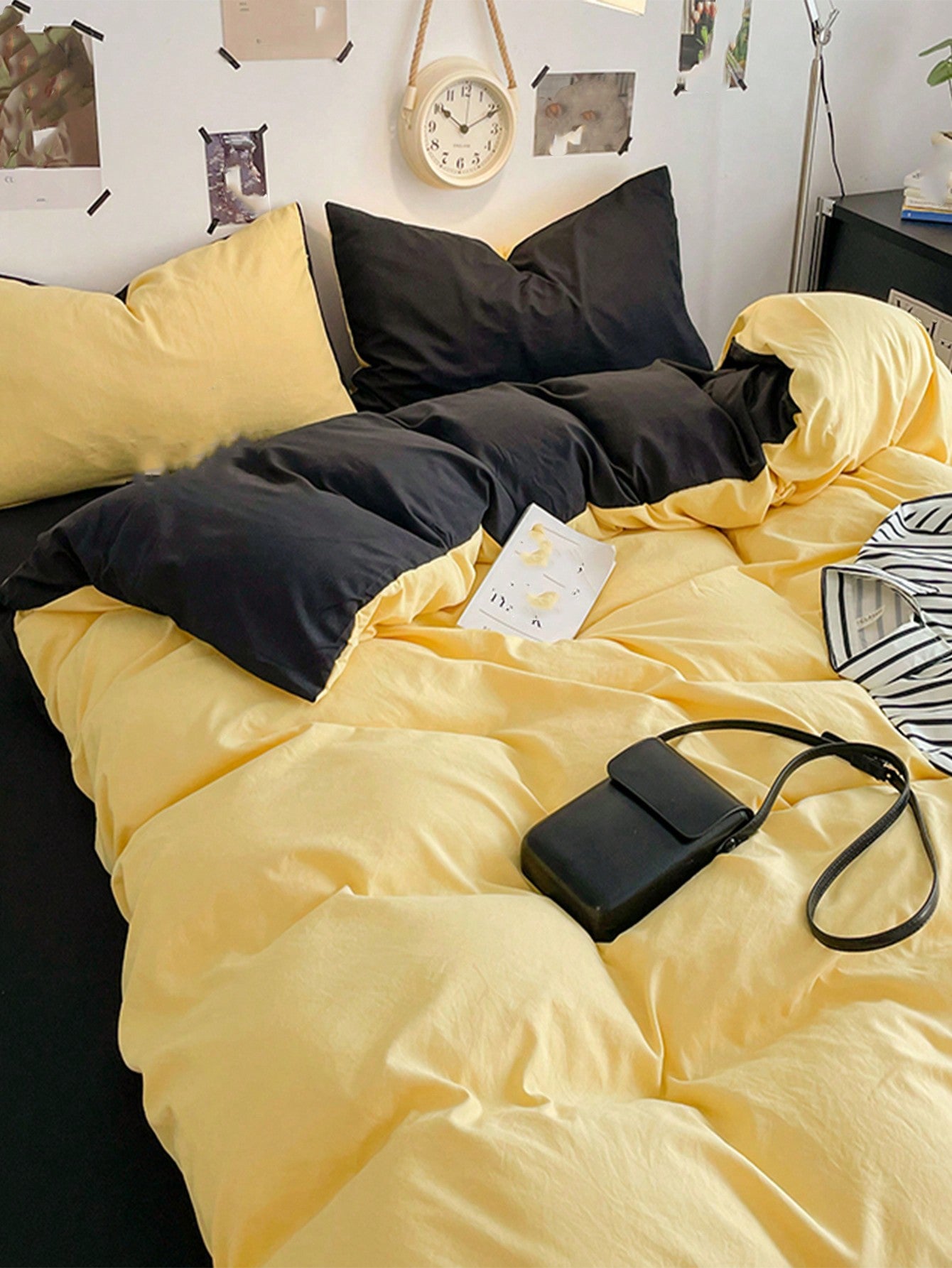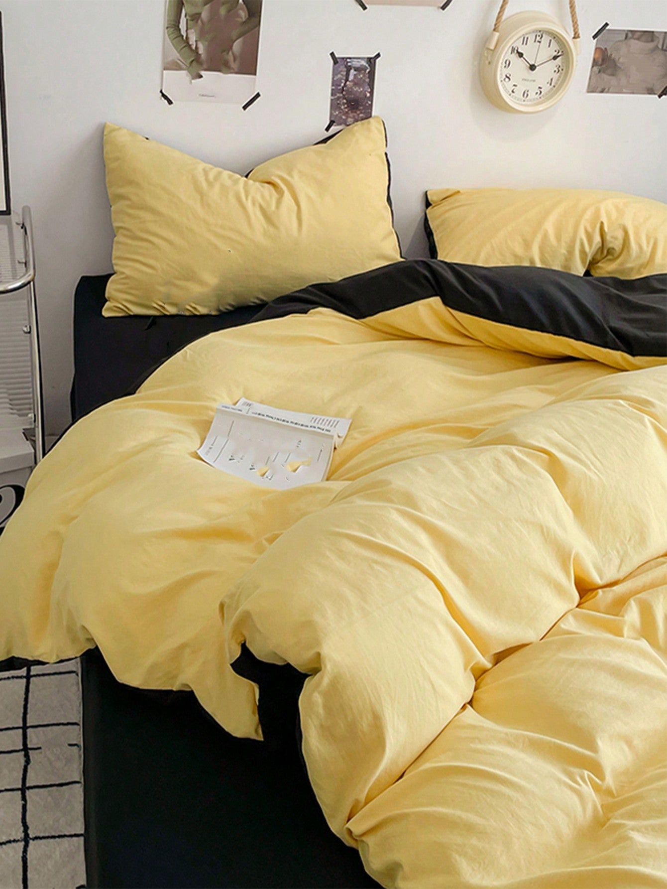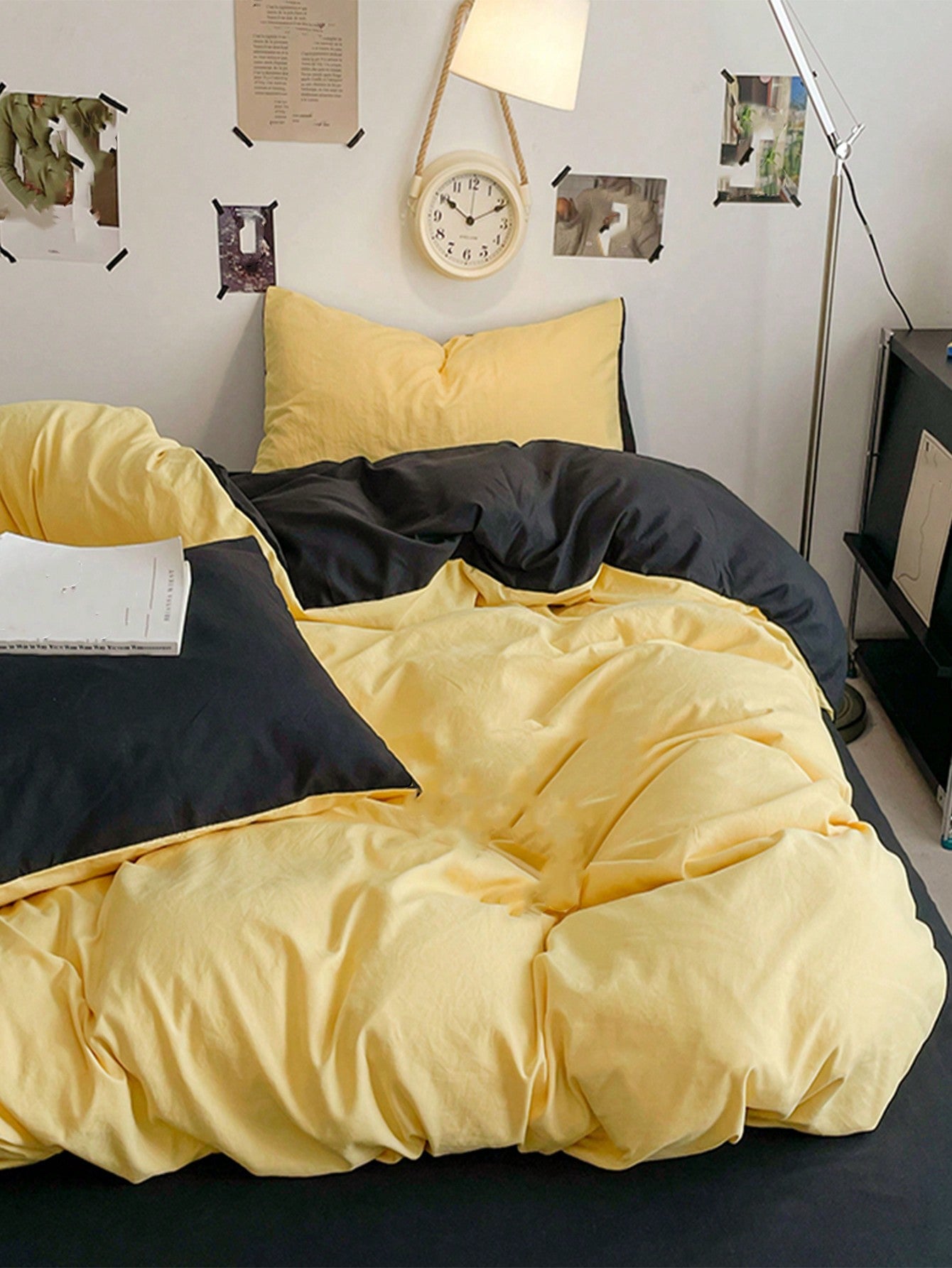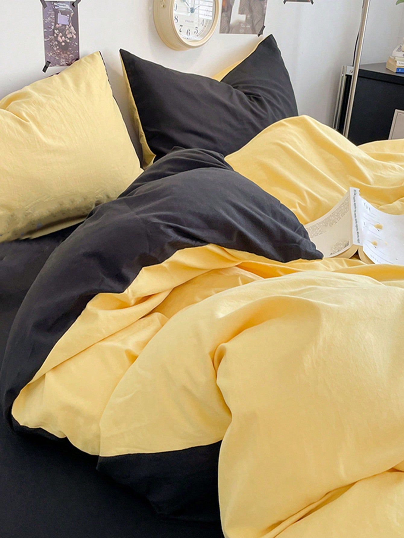 طقم غطاء لحاف من 3 قطع باللونين الأصفر والرمادي الداكن - مستلزمات تزيين الغرفة