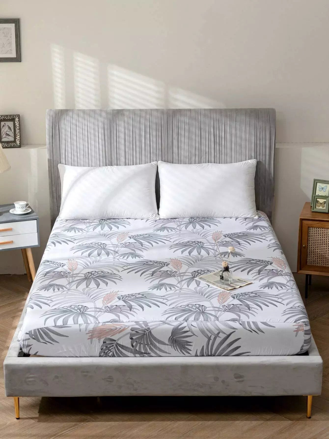 شرشف مُجهز بطبعة أوراق الشجر