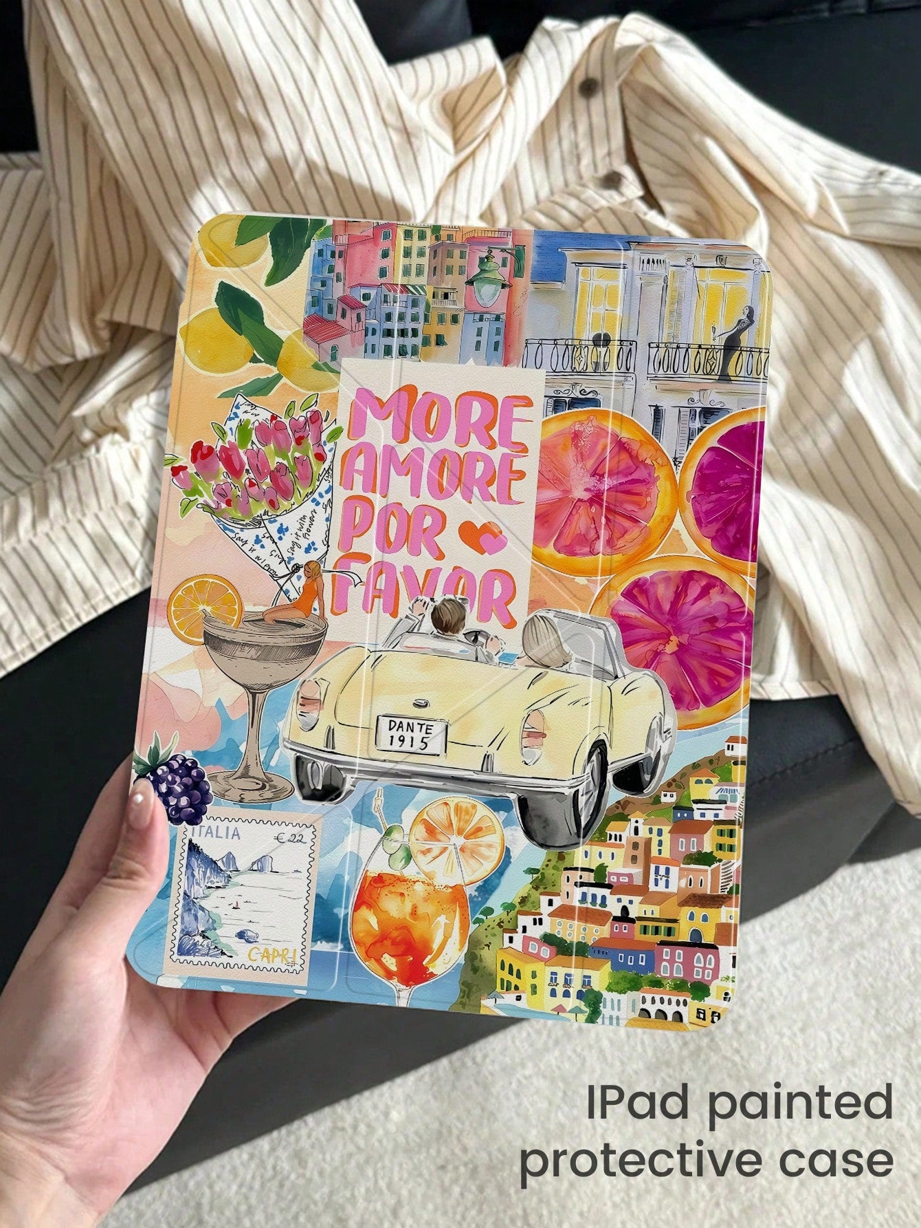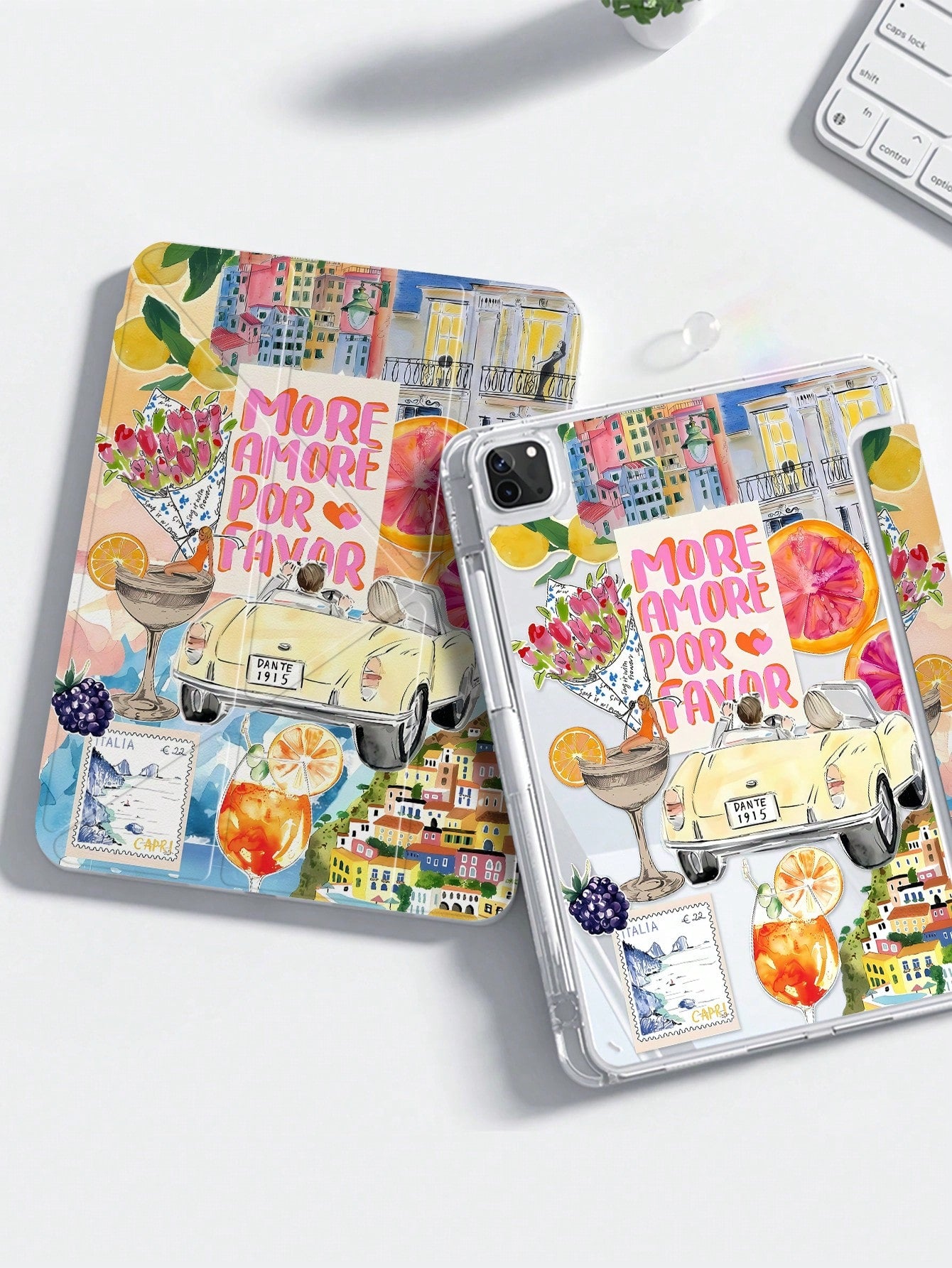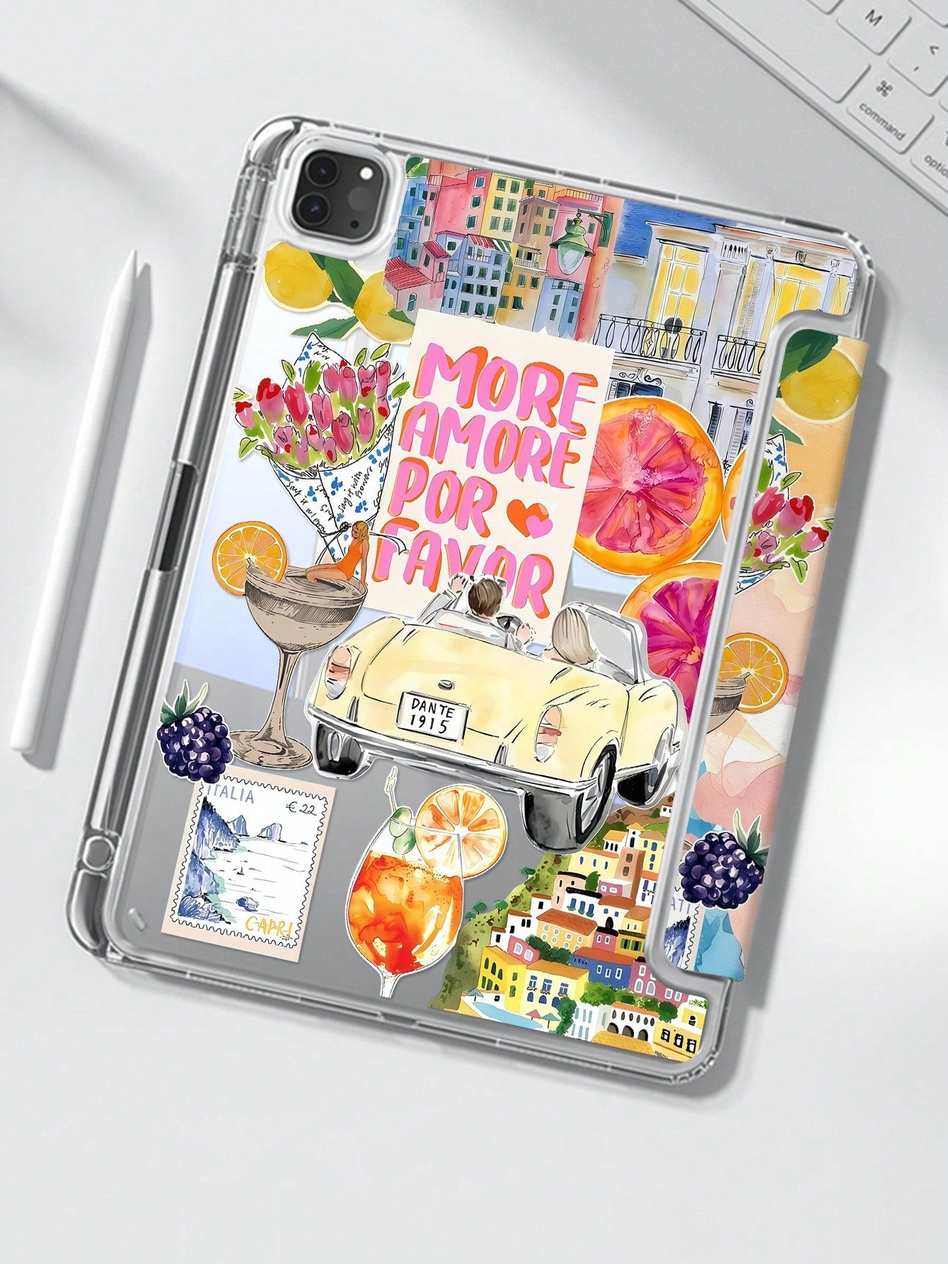 غطاء خلفي كريستالي شفاف مزدوج الجوانب بتصميم أنيق ولطيف على شكل أحجية كوكتيل من الفواكه والحروف الكرتونية