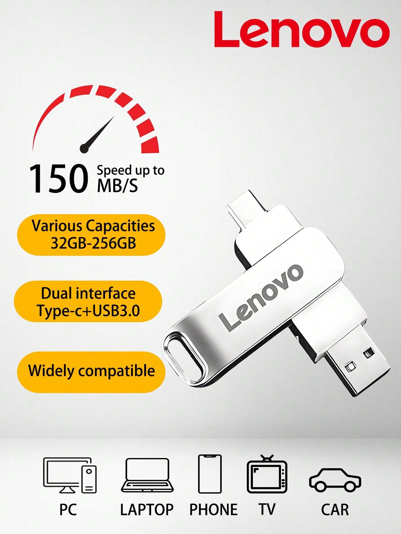 محرك أقراص فلاش لينوفو USB 3.2 بسعات 32/64/128/256 جيجابايت، ناقل بيانات عالي السرعة، مصنوع من المعدن، بطاقة ذاكرة فلاش