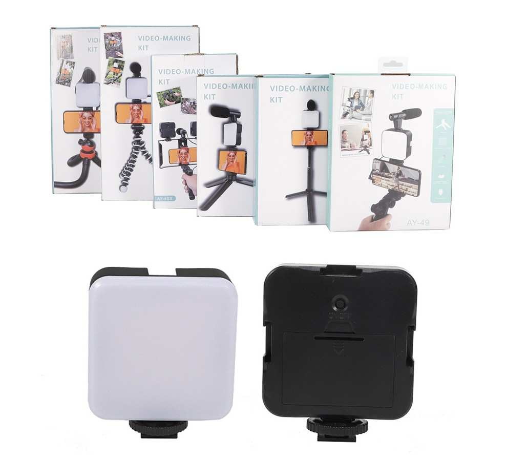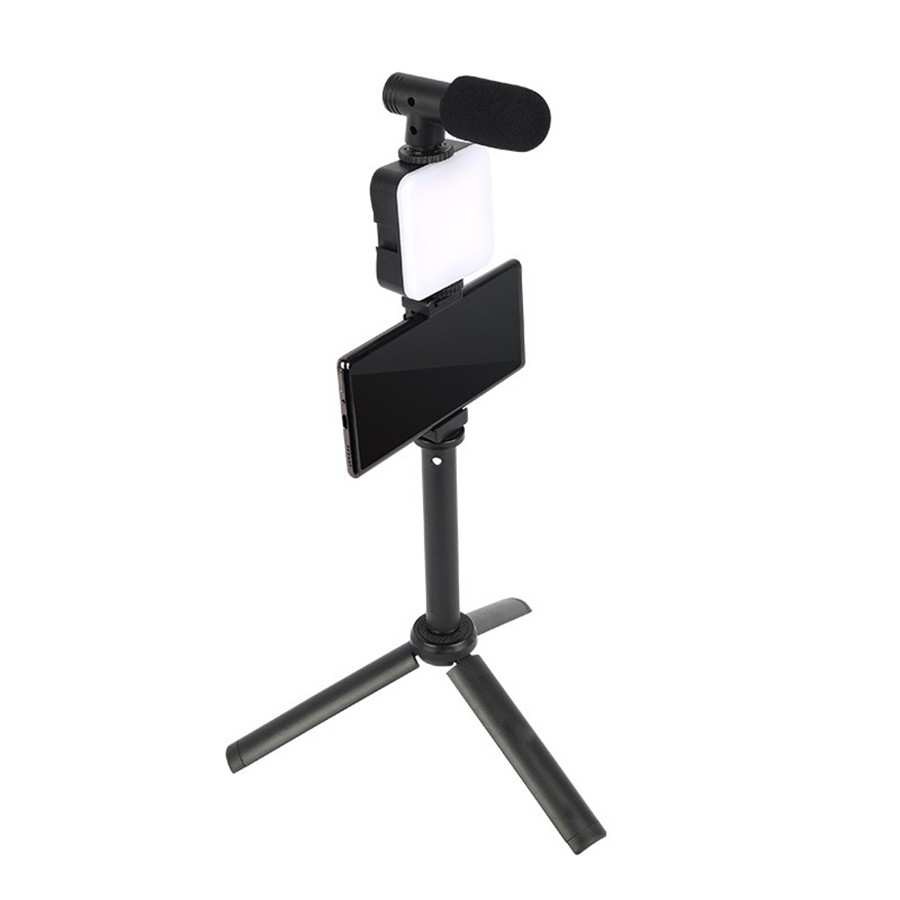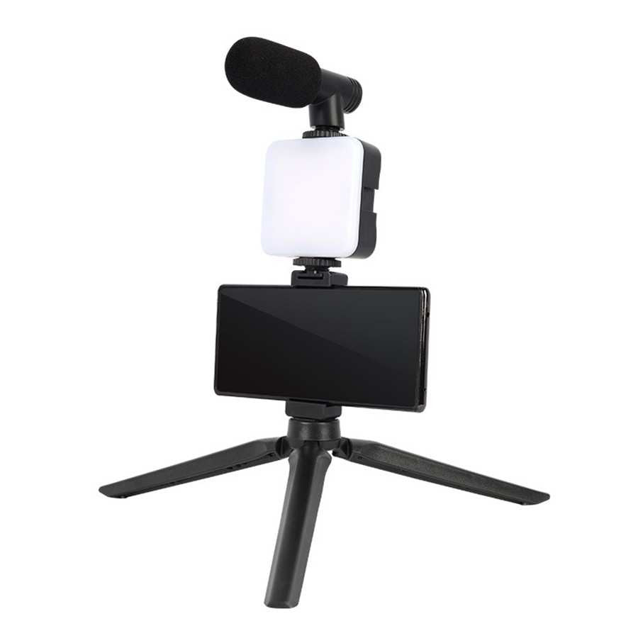 تشمل: ضوء ملء، هاتف ميكروفون، حامل هاتف، حامل ثلاثي القوائم، كابل شحن