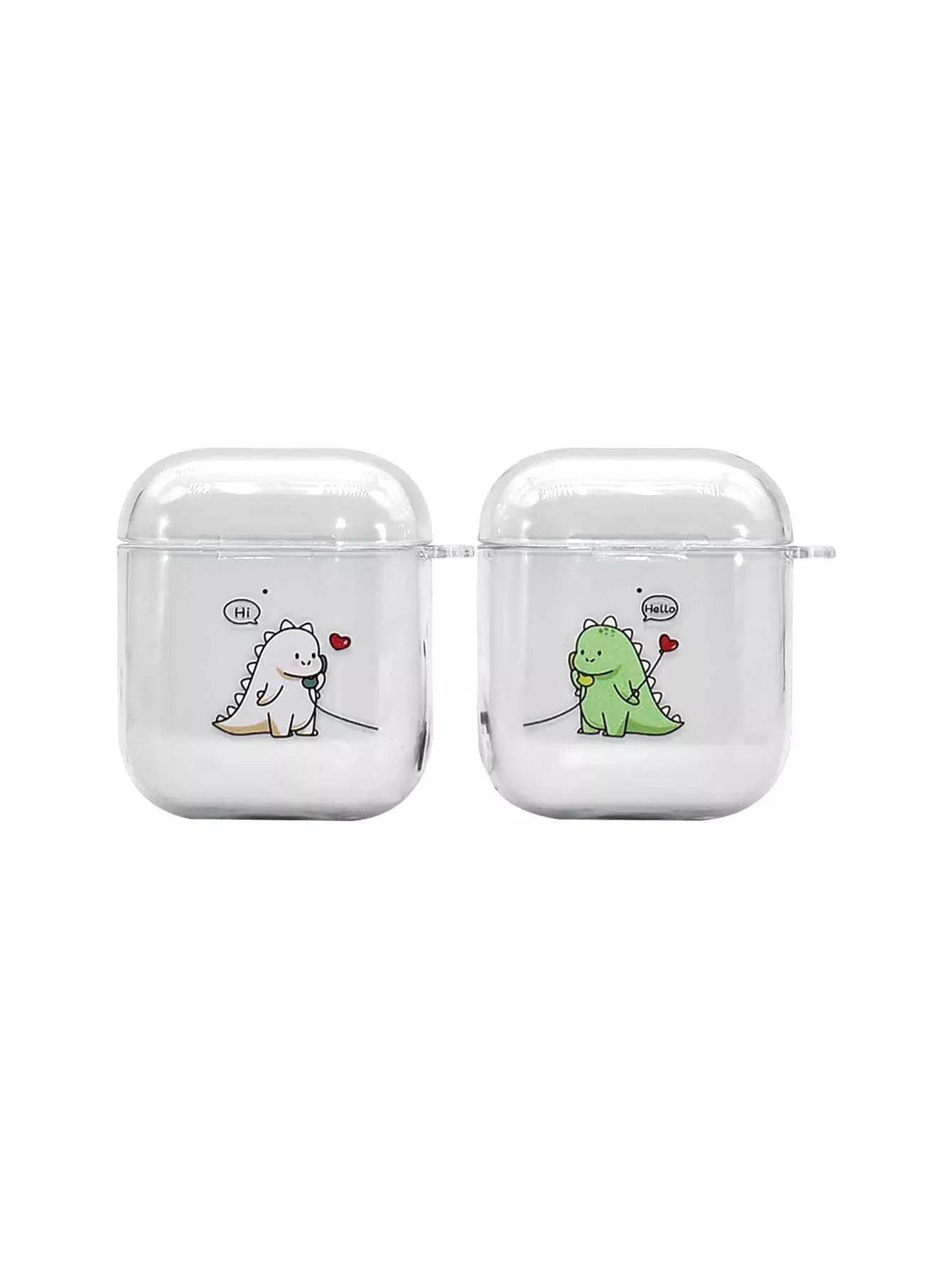جراب شفاف لسماعات AirPods مطبوع عليه ديناصور للزوجين مكون من قطعتين