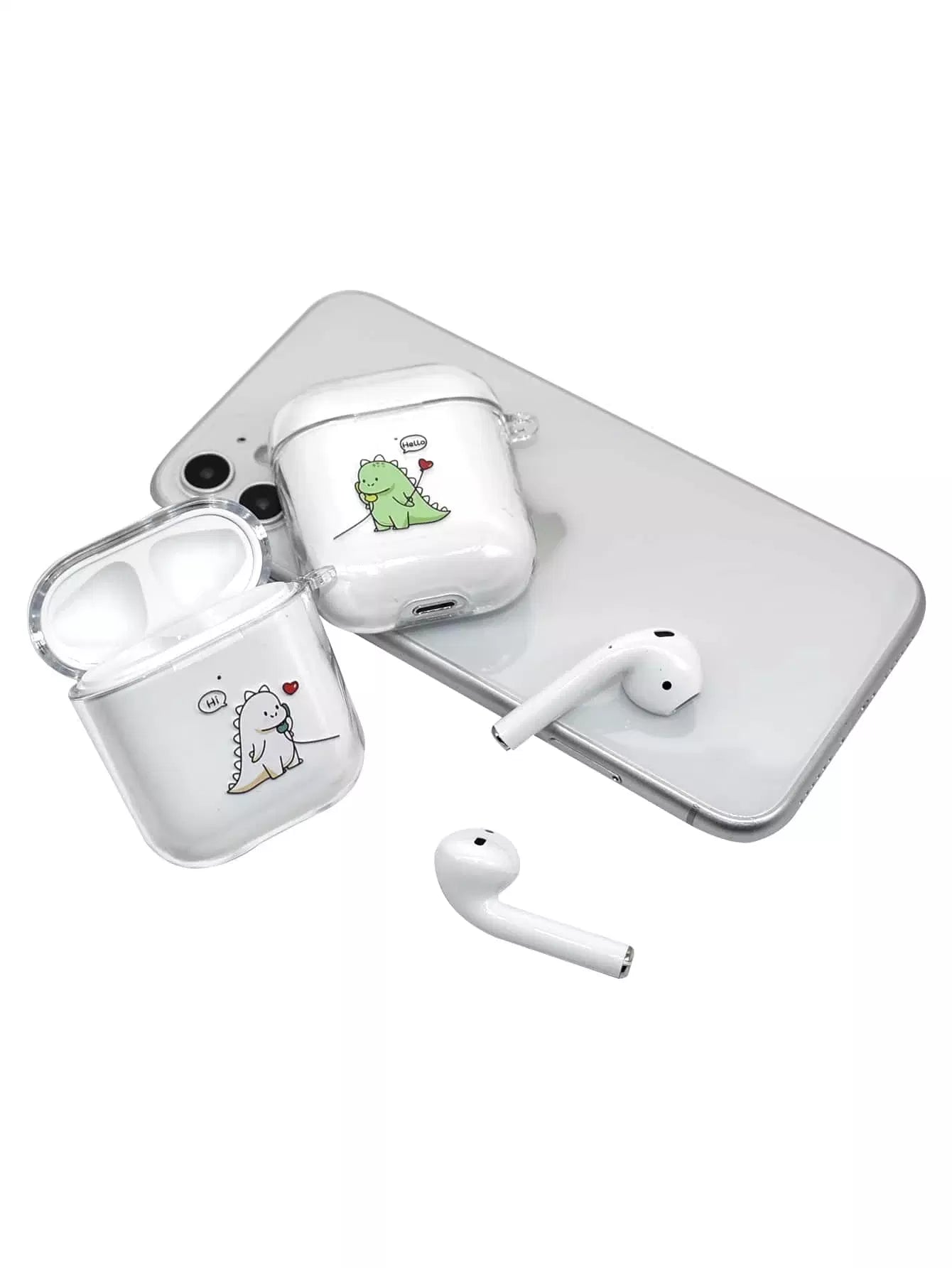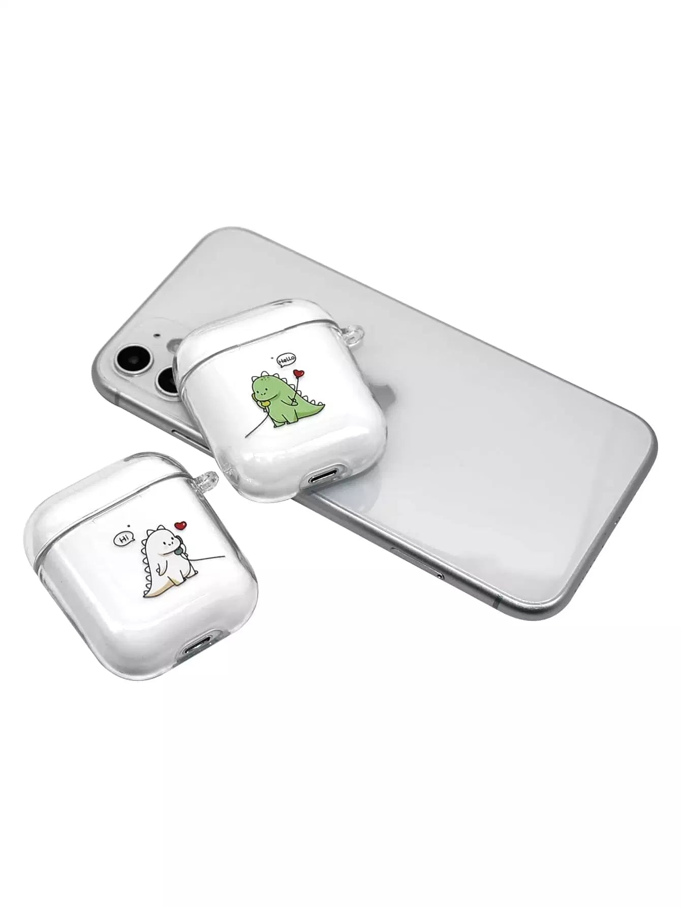 المنزل والمعيشة - قطعتان من حافظة Airpods الشفافة بطباعة الديناصورات