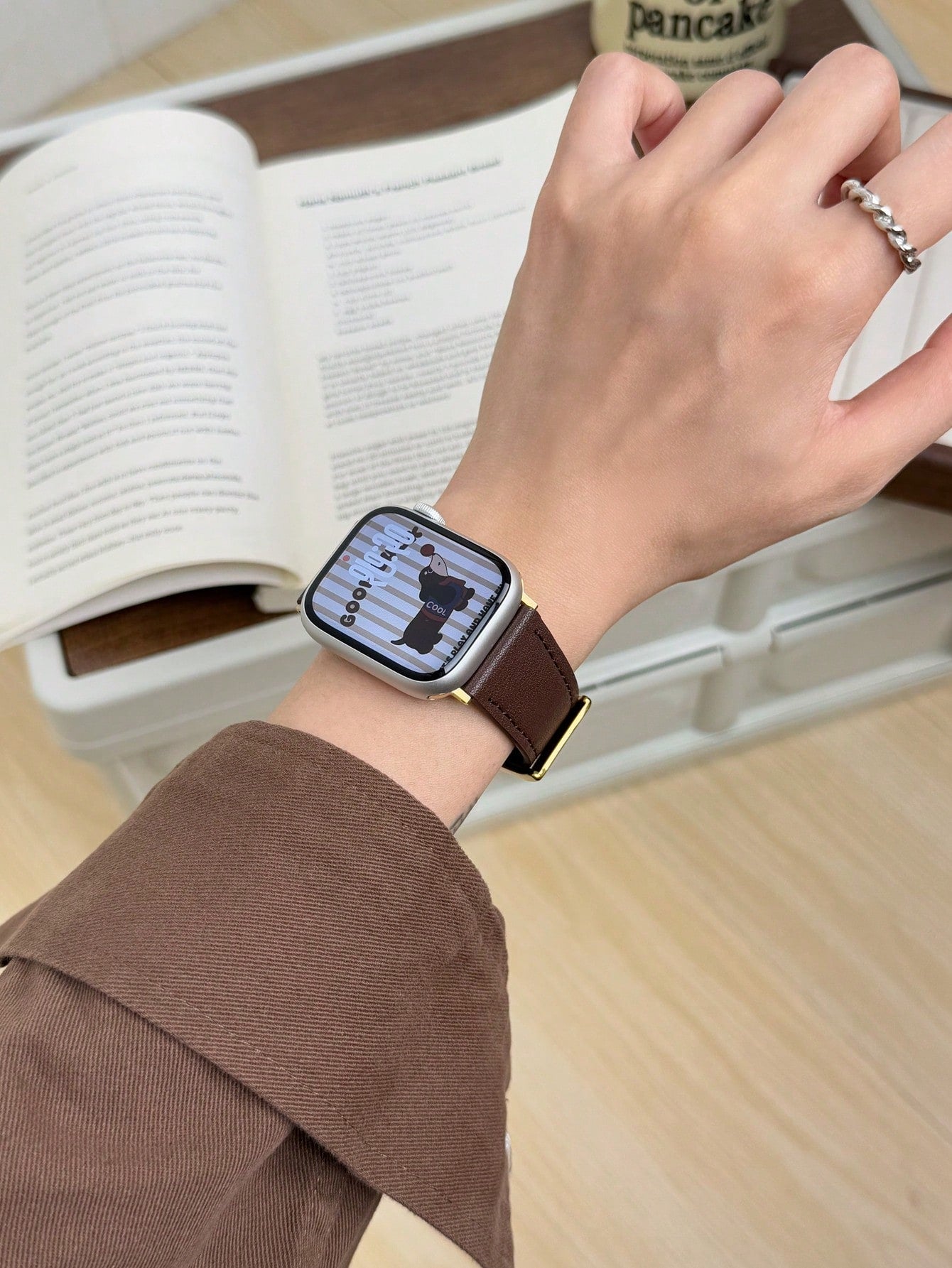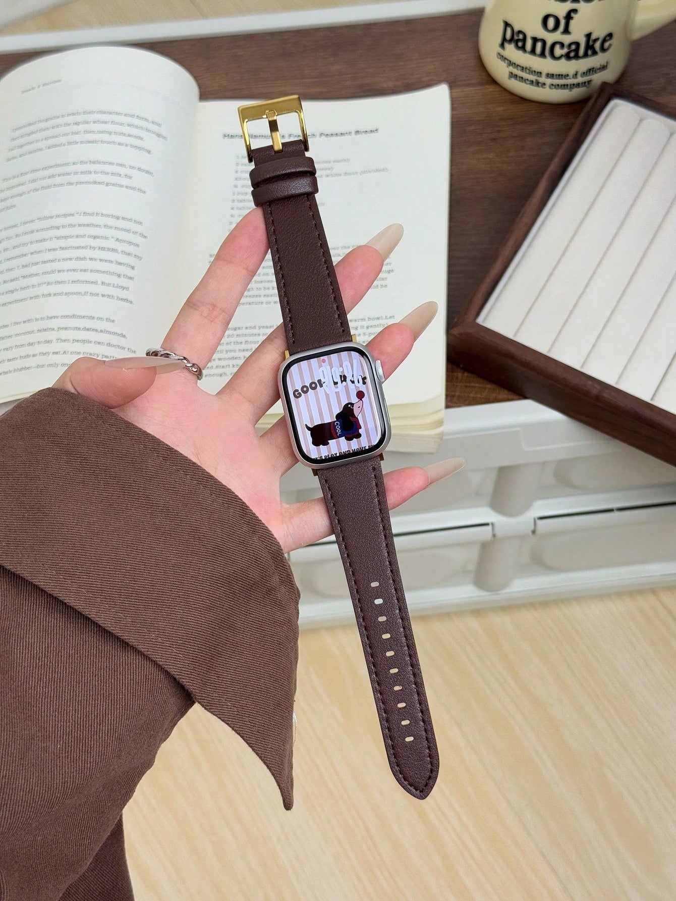 سوار ساعة من الجلد الطبيعي قطعة واحدة - متوافق مع ساعة أبل
