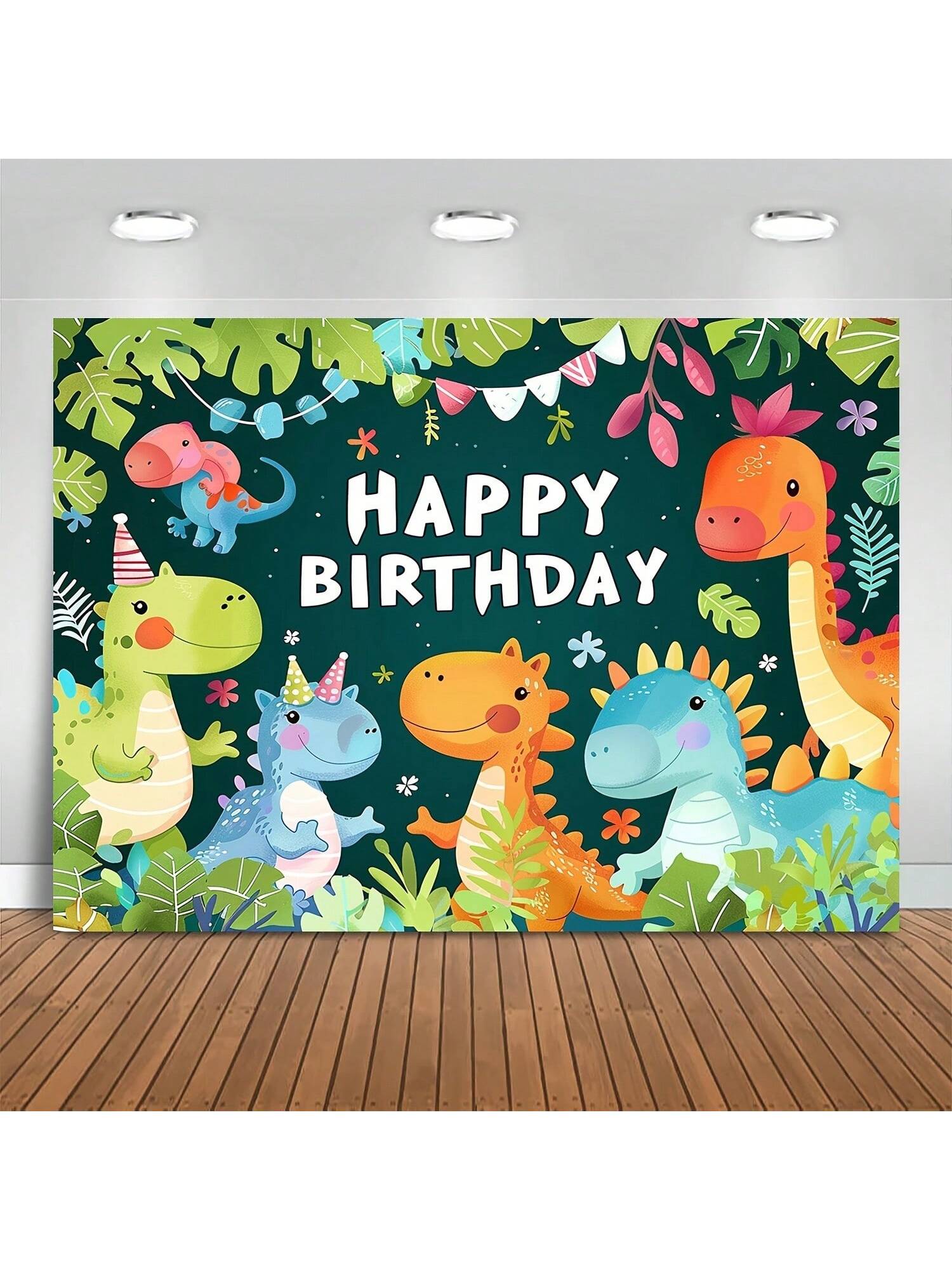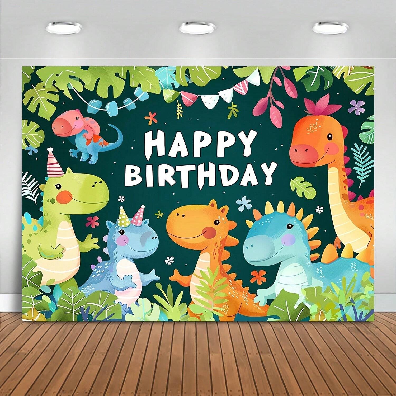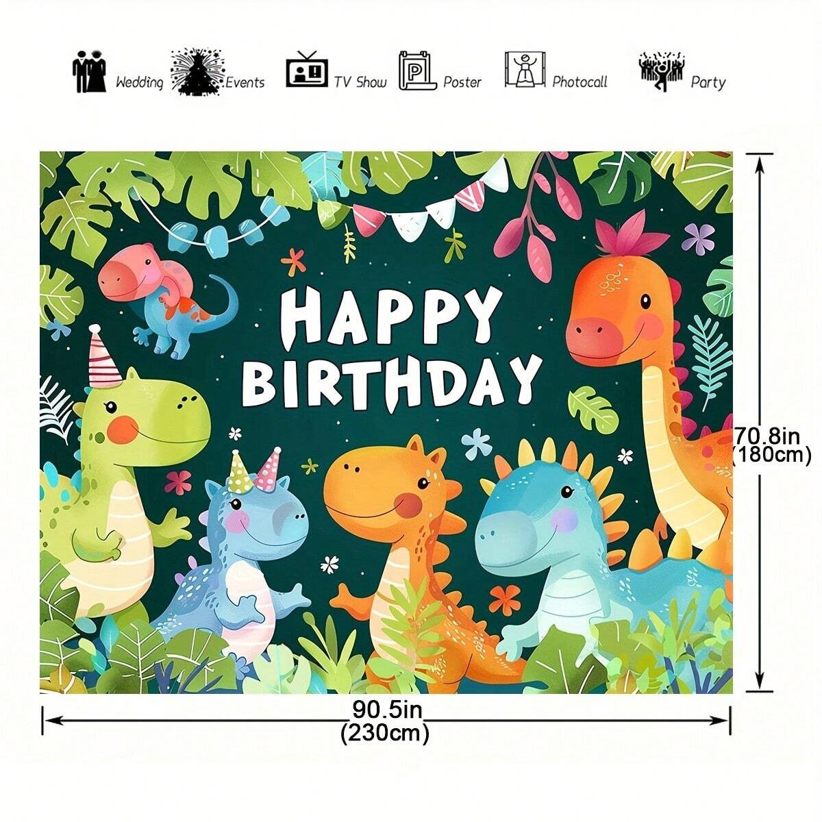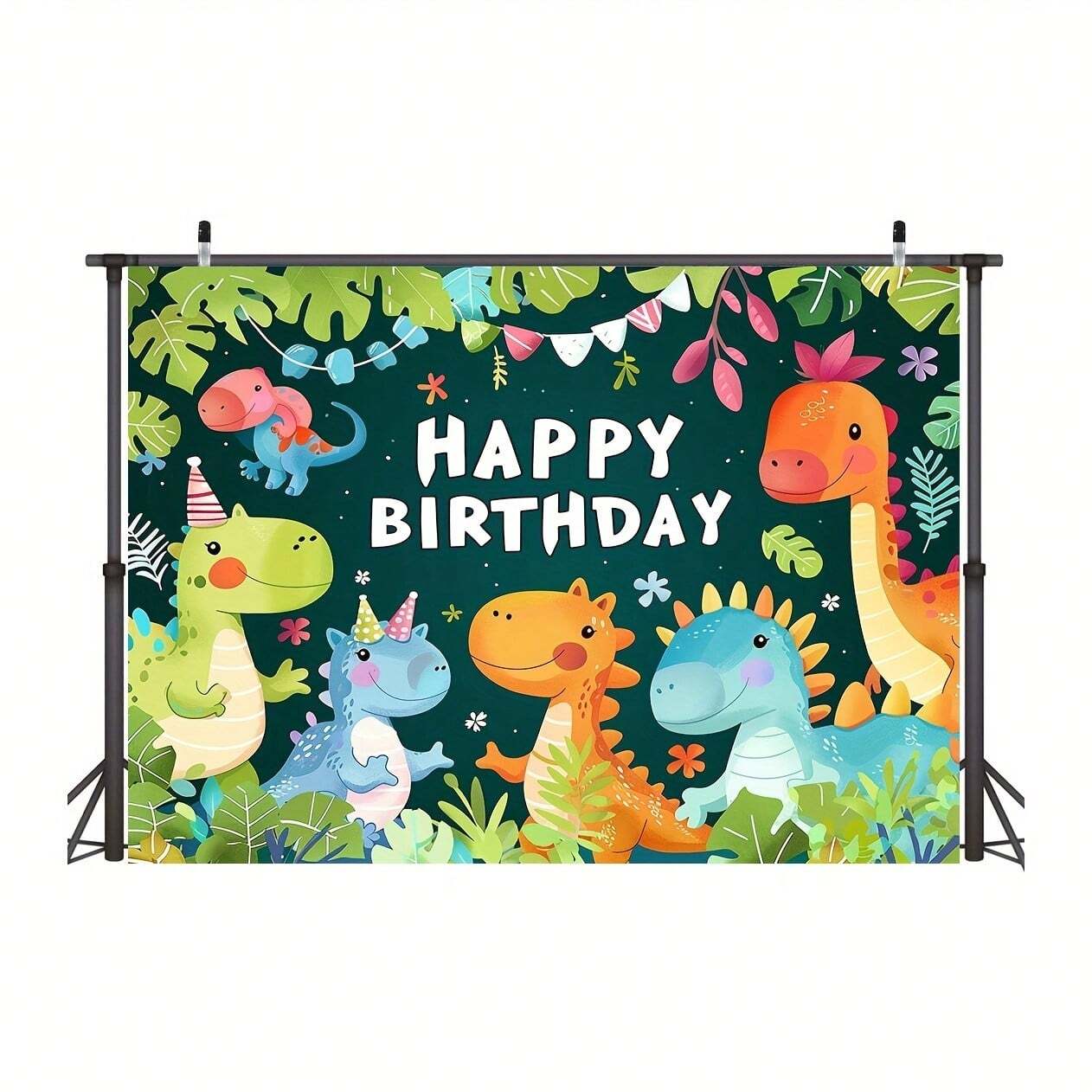 1pc Adorable Polyester Dinosaur Themed Happy Birthday Background Cloth - Vibrant Party Decoration Banner