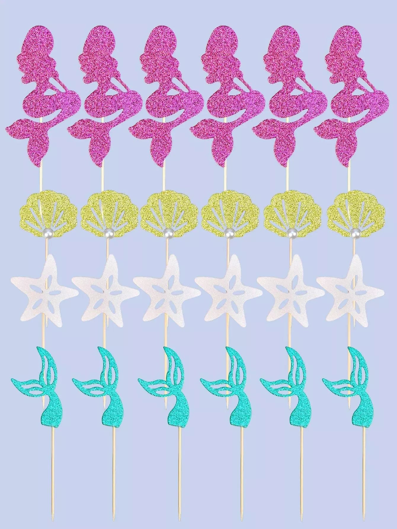24 قطعة من زينة الكيك بتصميم حورية البحر