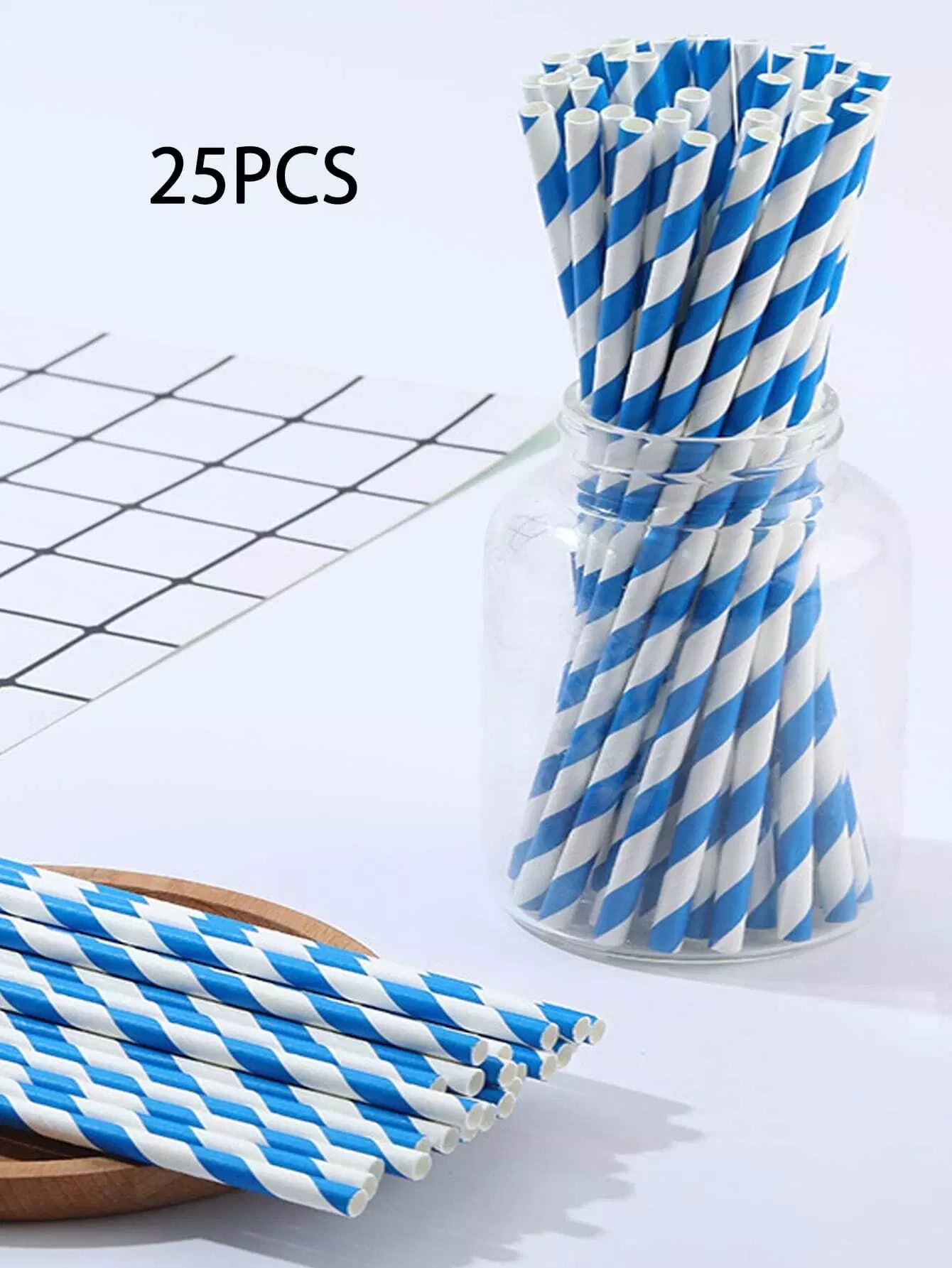 25 قطعة من القش المخطط الحلزوني للاستخدام مرة واحدة