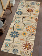 سجادة غرفة معيشة بنمط زهور بوهيمي - قابلة للغسل في الغسالة - سجادة متينة