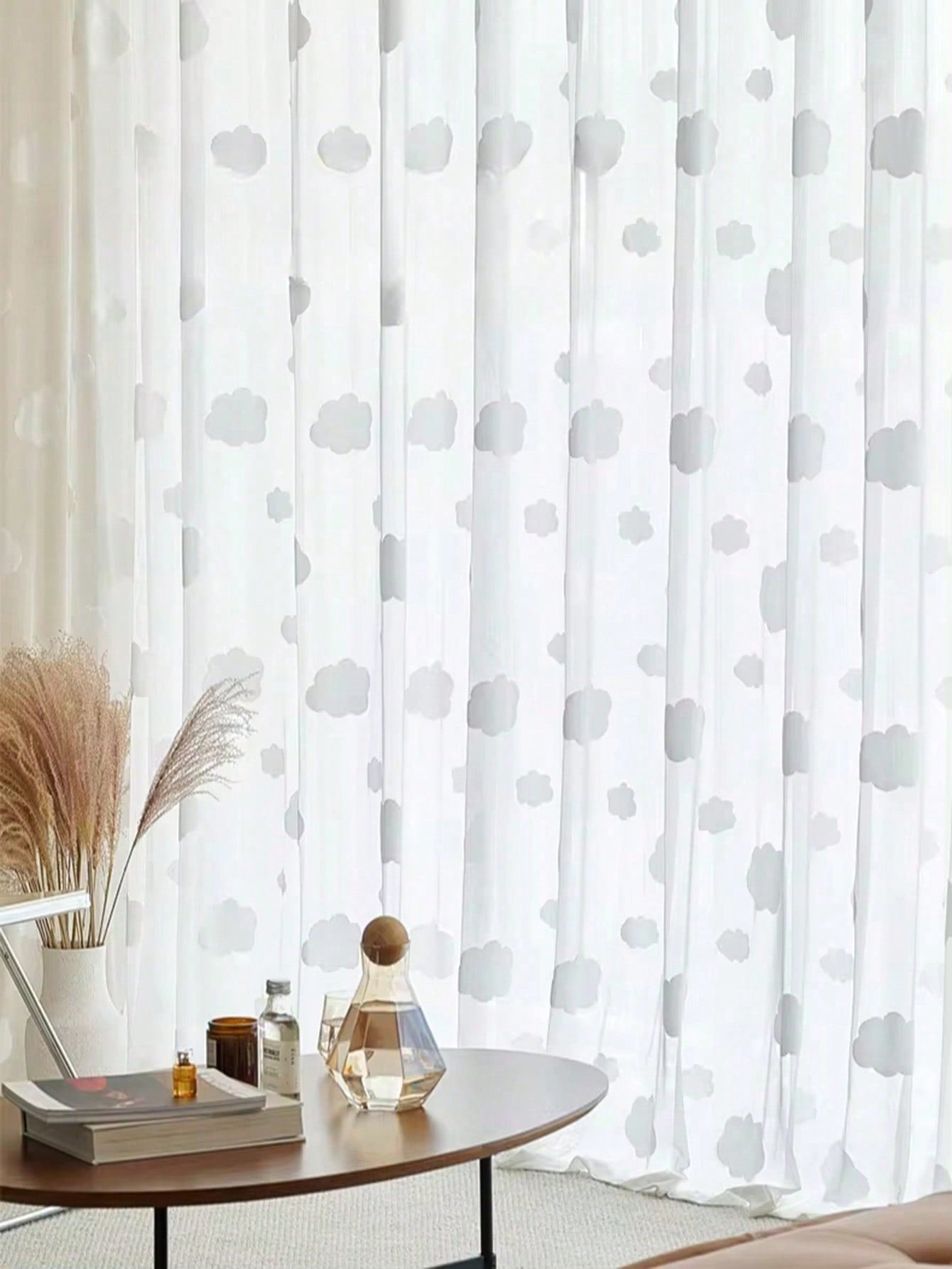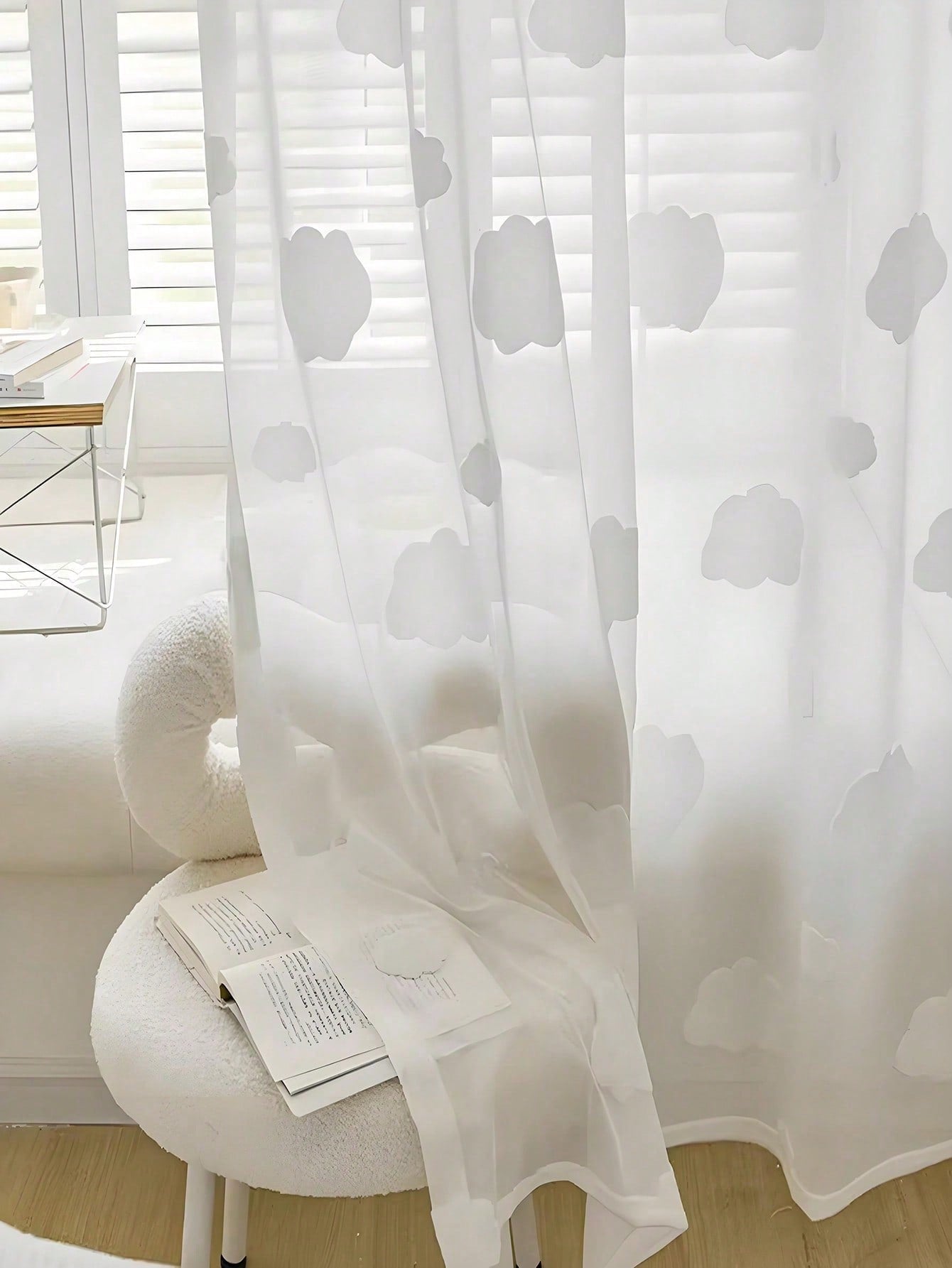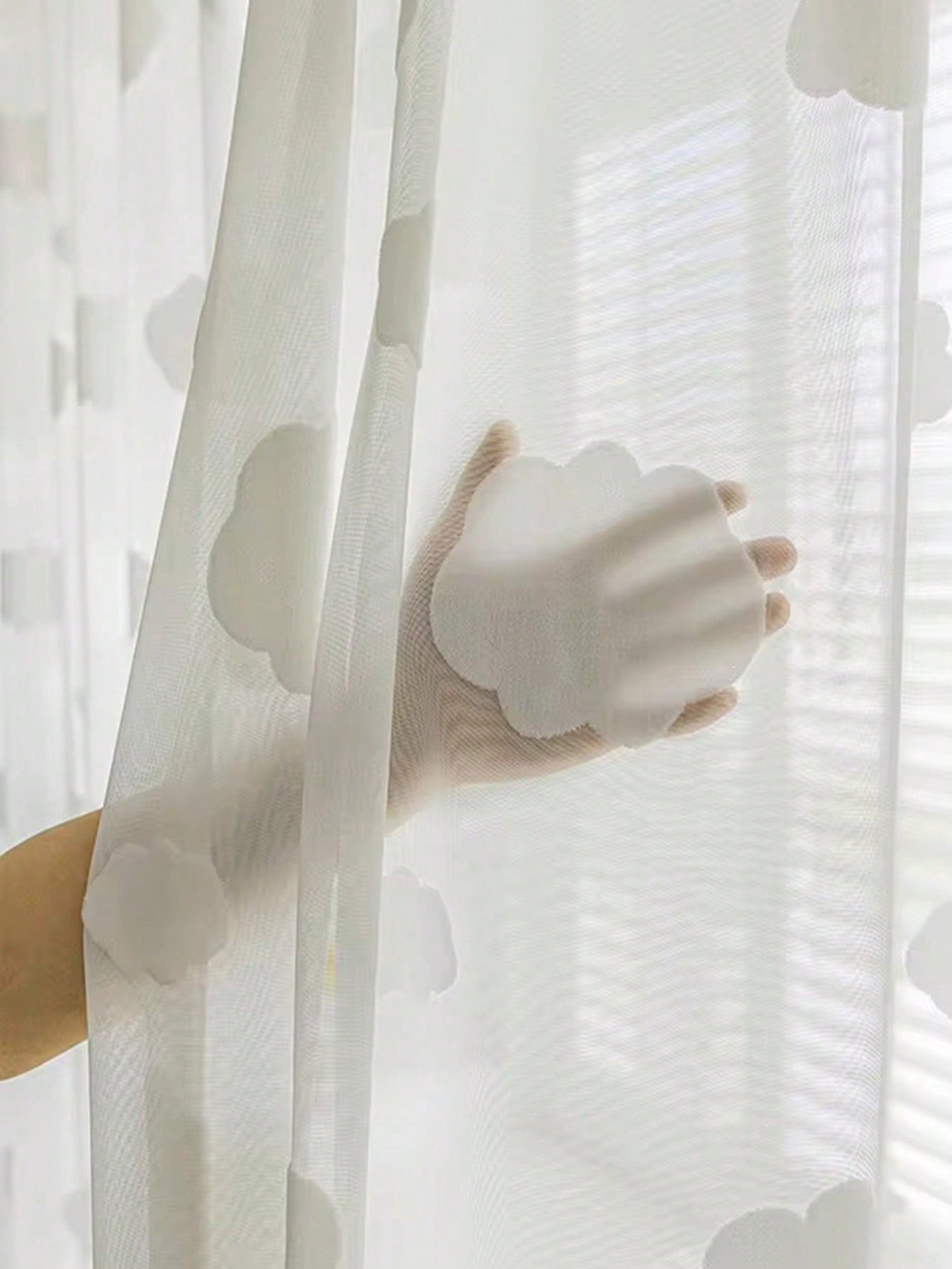 ستارة واحدة لطيفة من التول الأبيض بنقشة الغيوم الجاكار لغرفة النوم