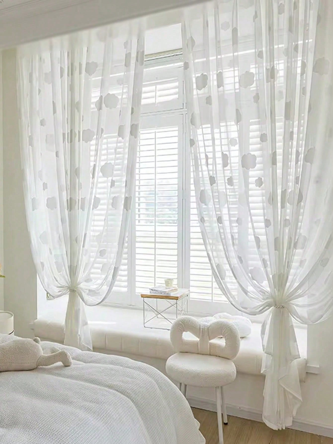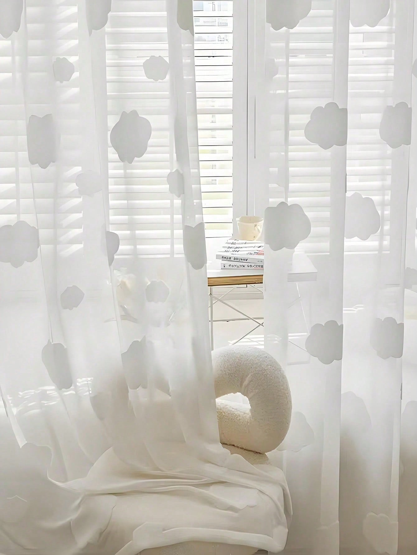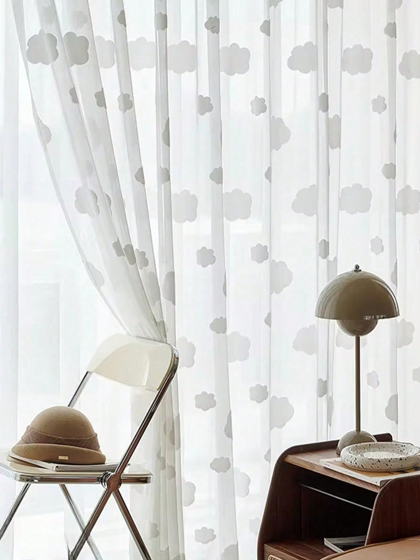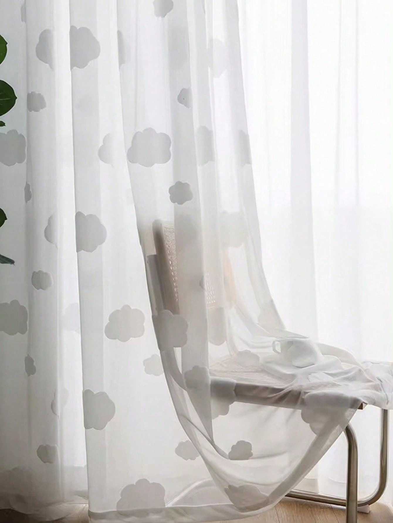 ستارة واحدة لطيفة من التول الأبيض بنقشة الغيوم الجاكار لغرفة النوم