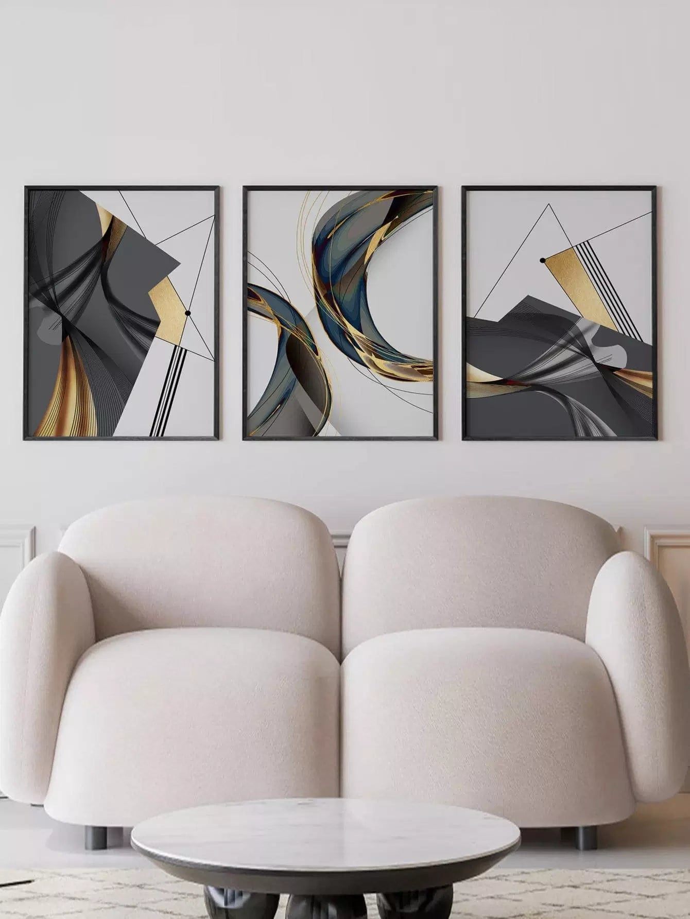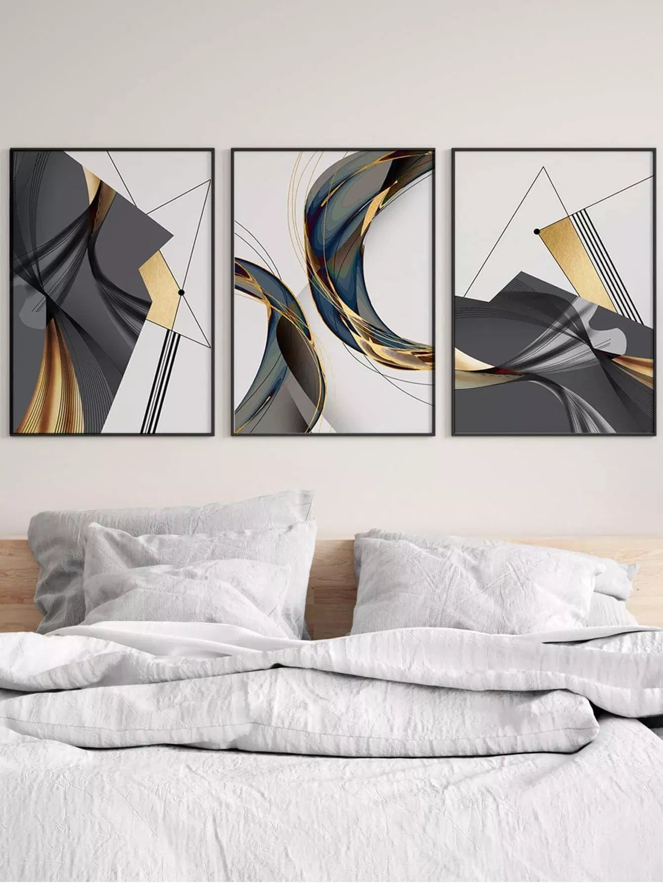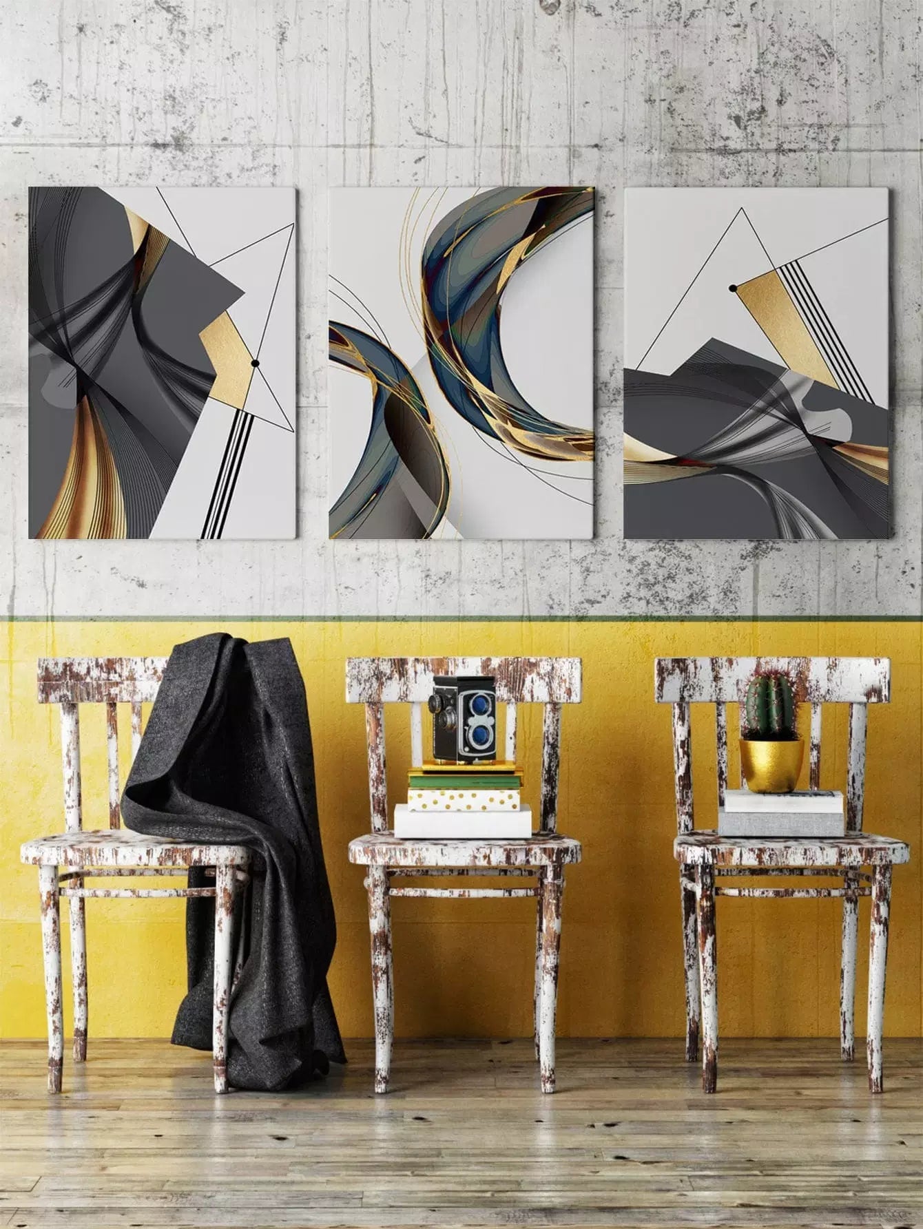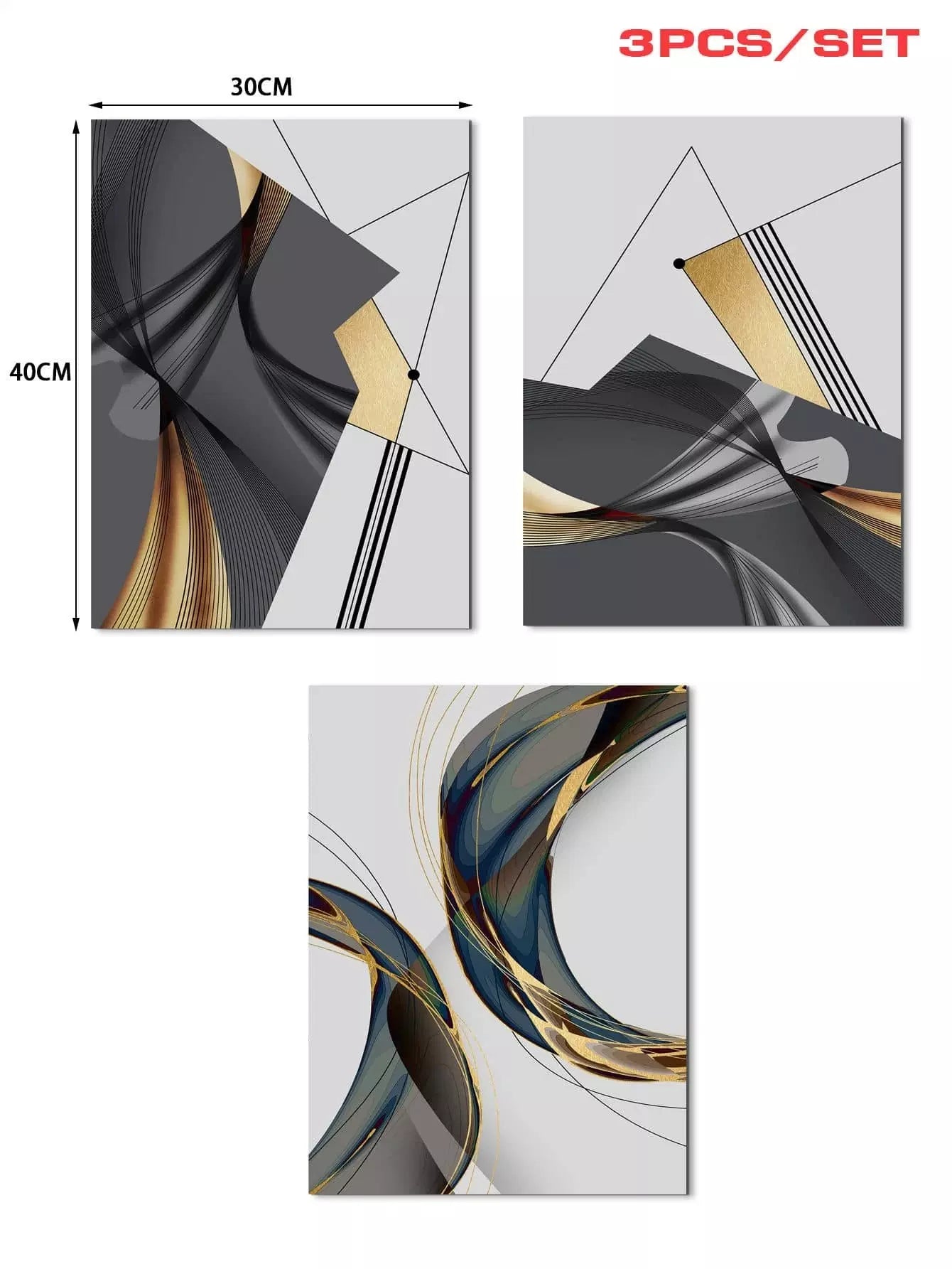 لوحة غير مؤطرة بنمط هندسي 3 قطع غير مؤطرة