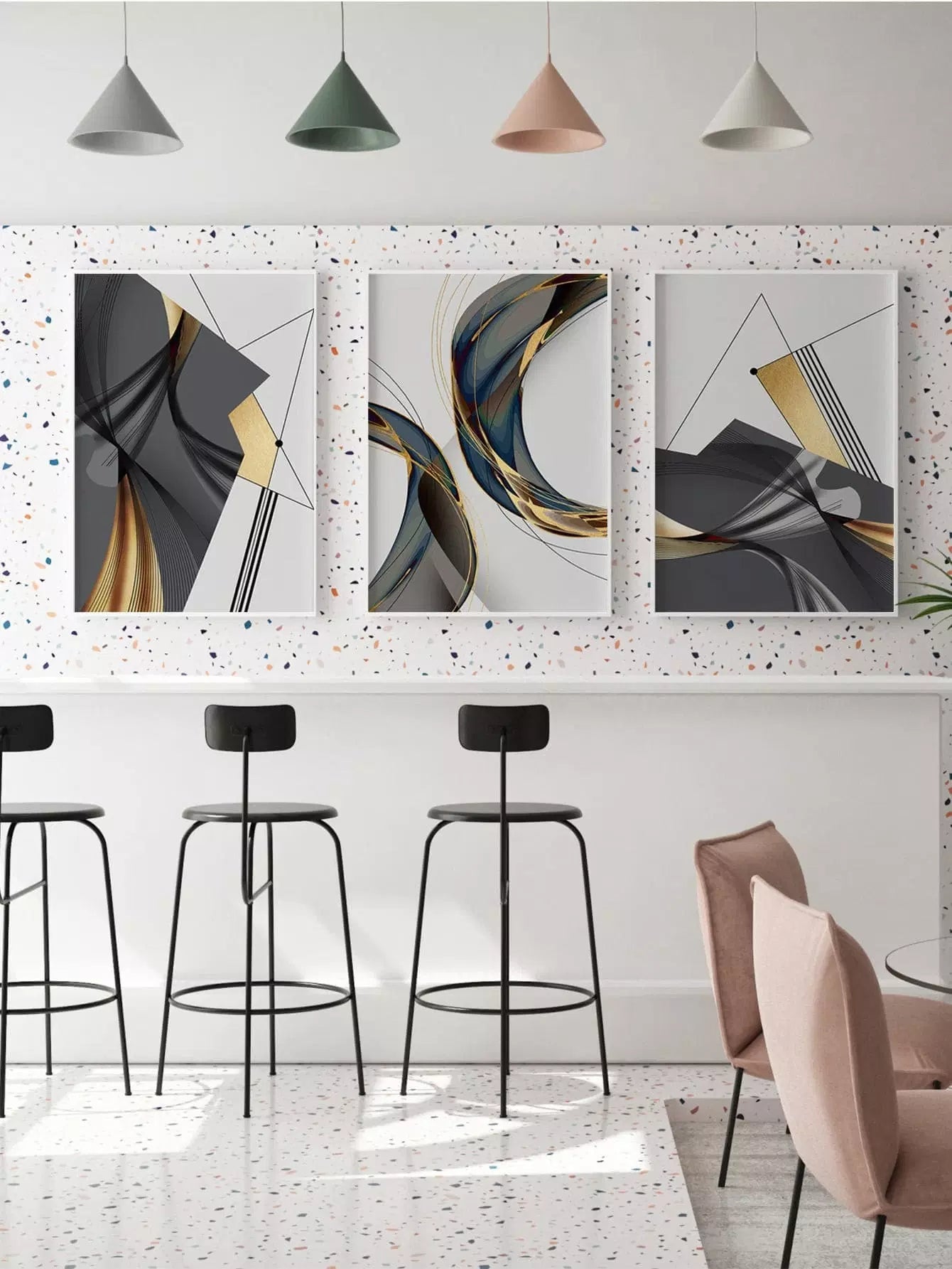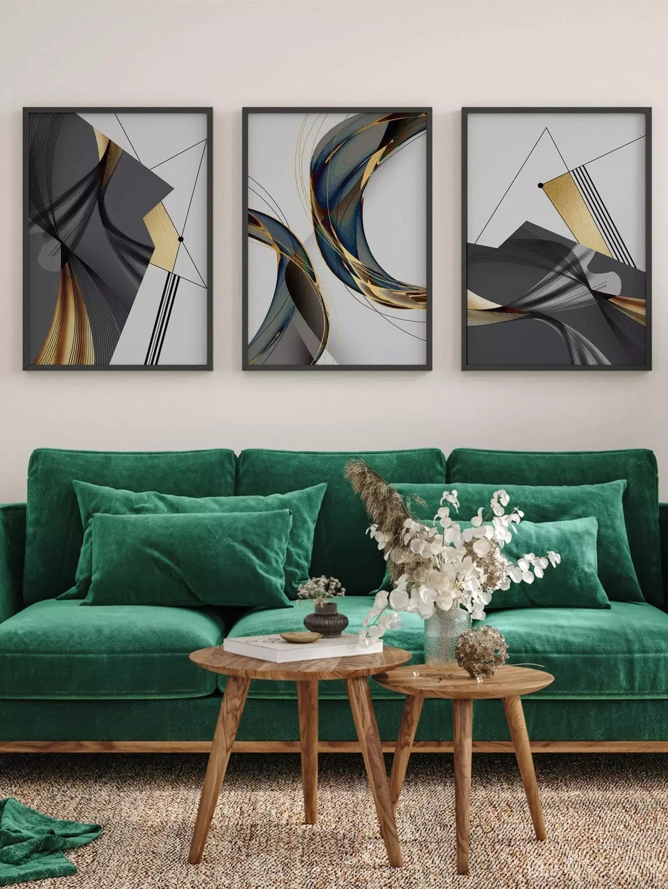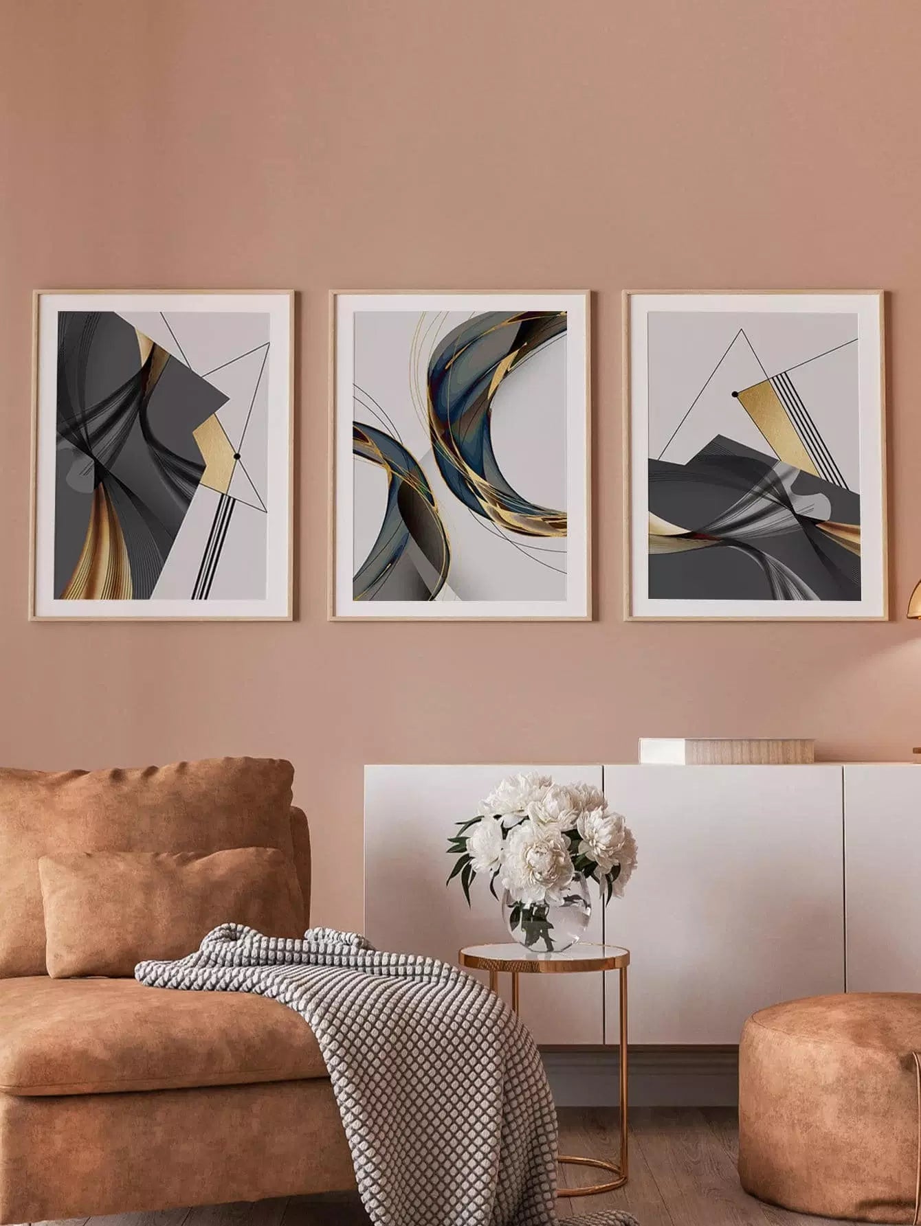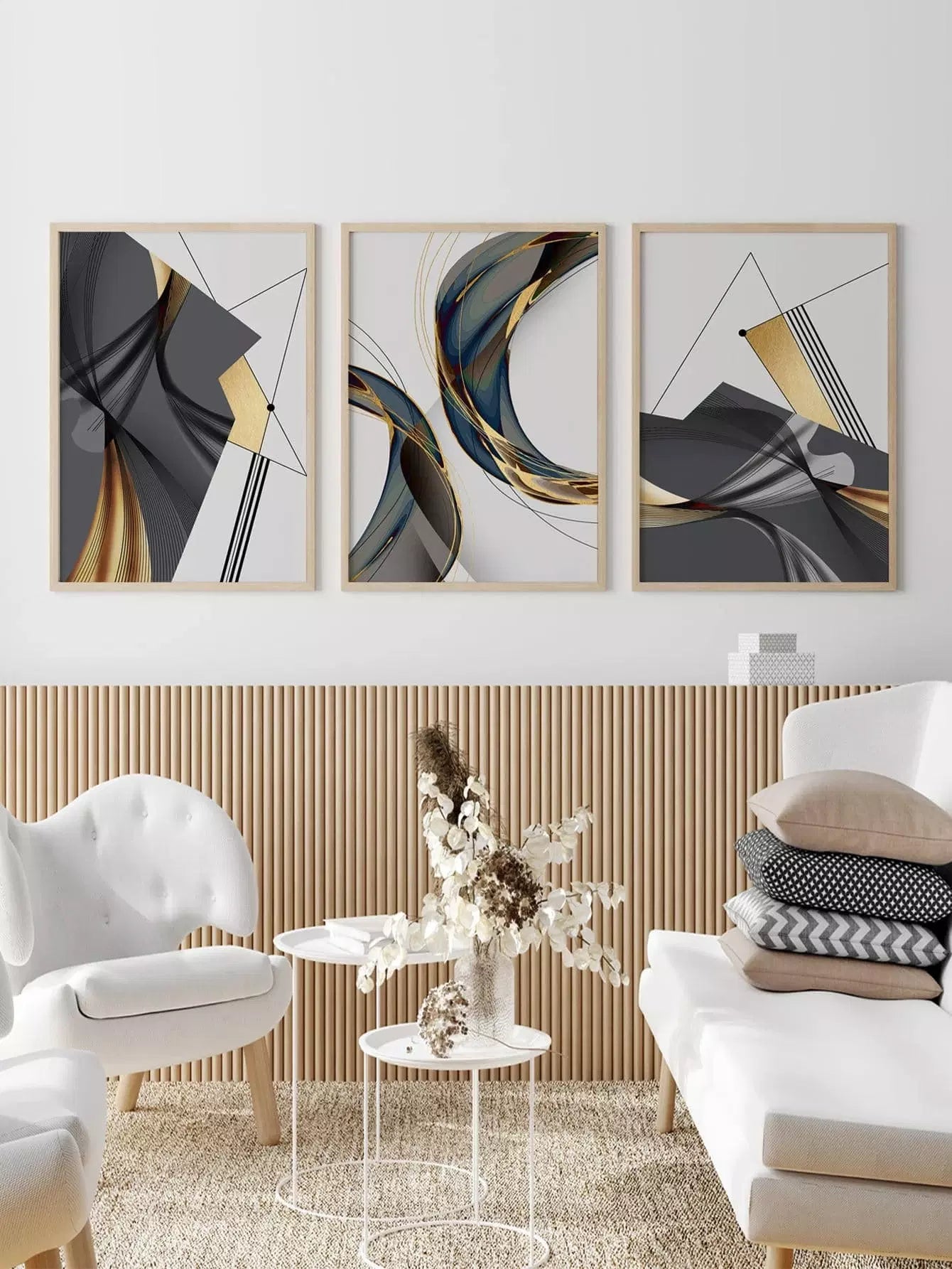 لوحة غير مؤطرة بنمط هندسي 3 قطع غير مؤطرة