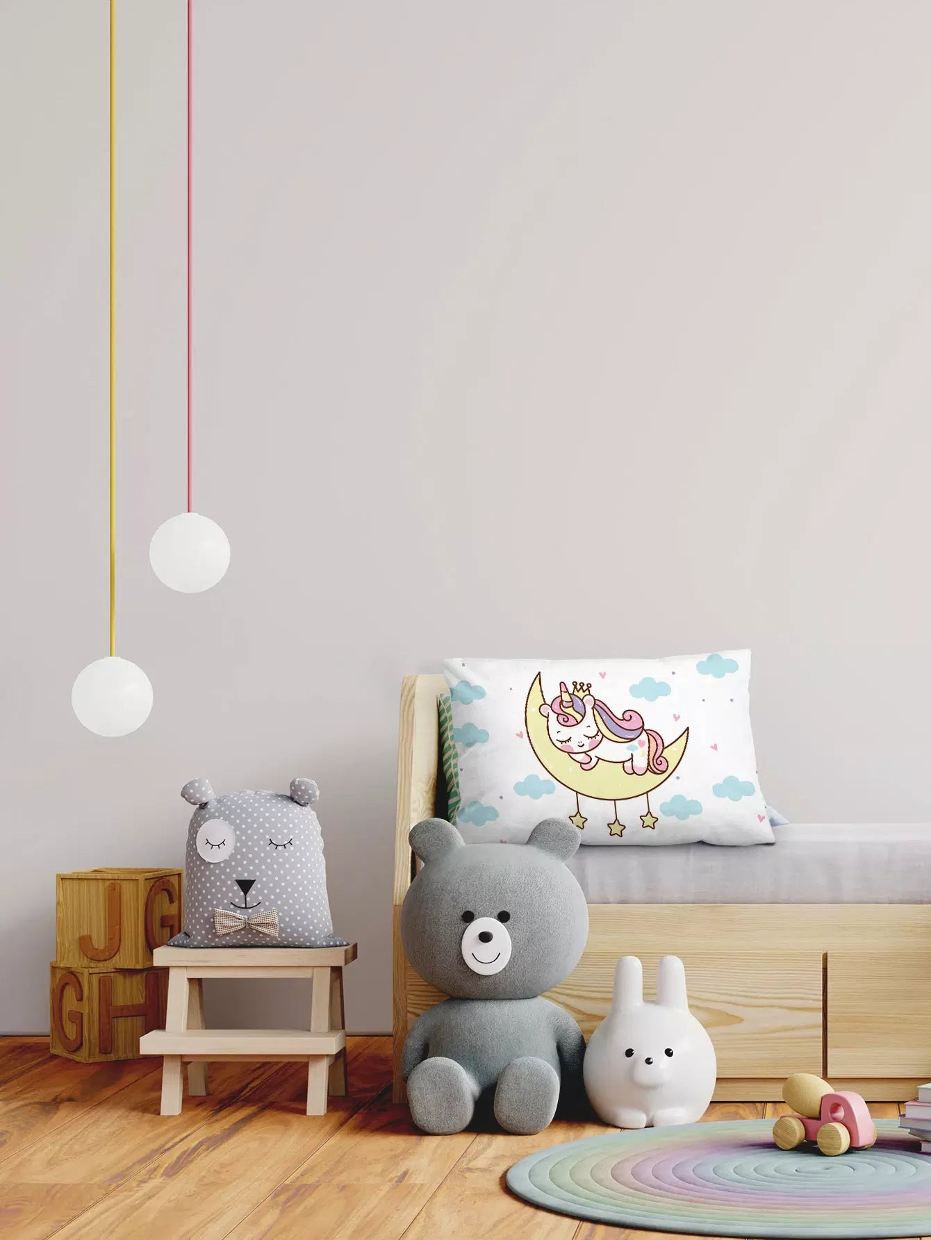 غطاء وسادة قطنية بطبعة يونيكورن للأطفال بدون حشو