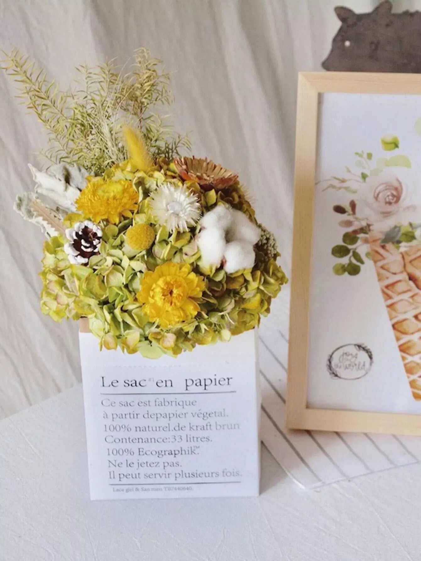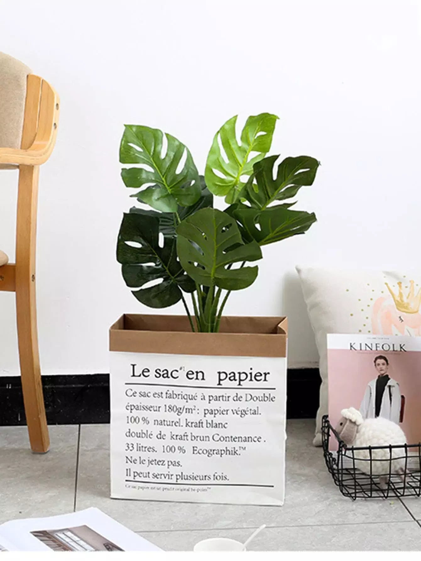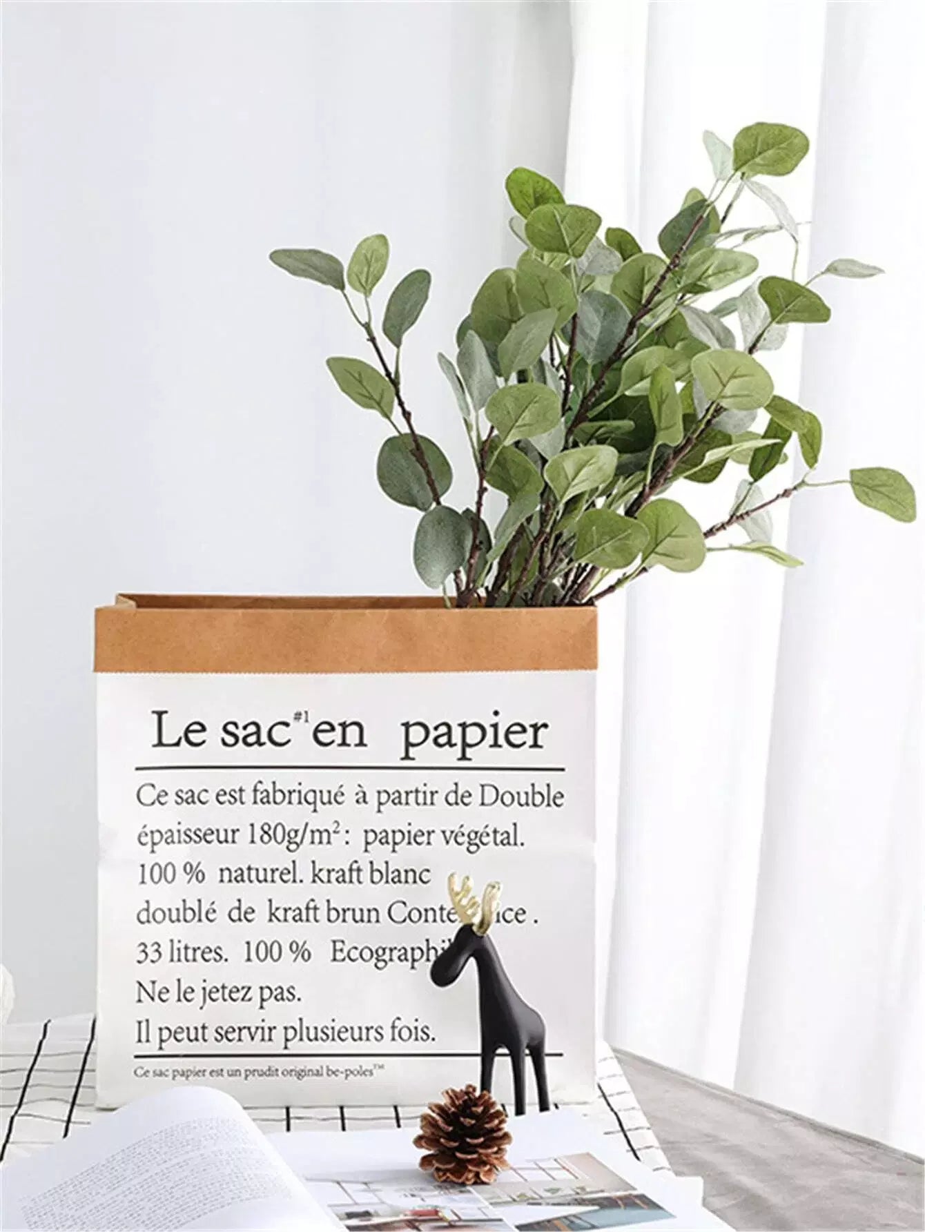 مزهرية من ورق كرافت مطبوع عليها حروف