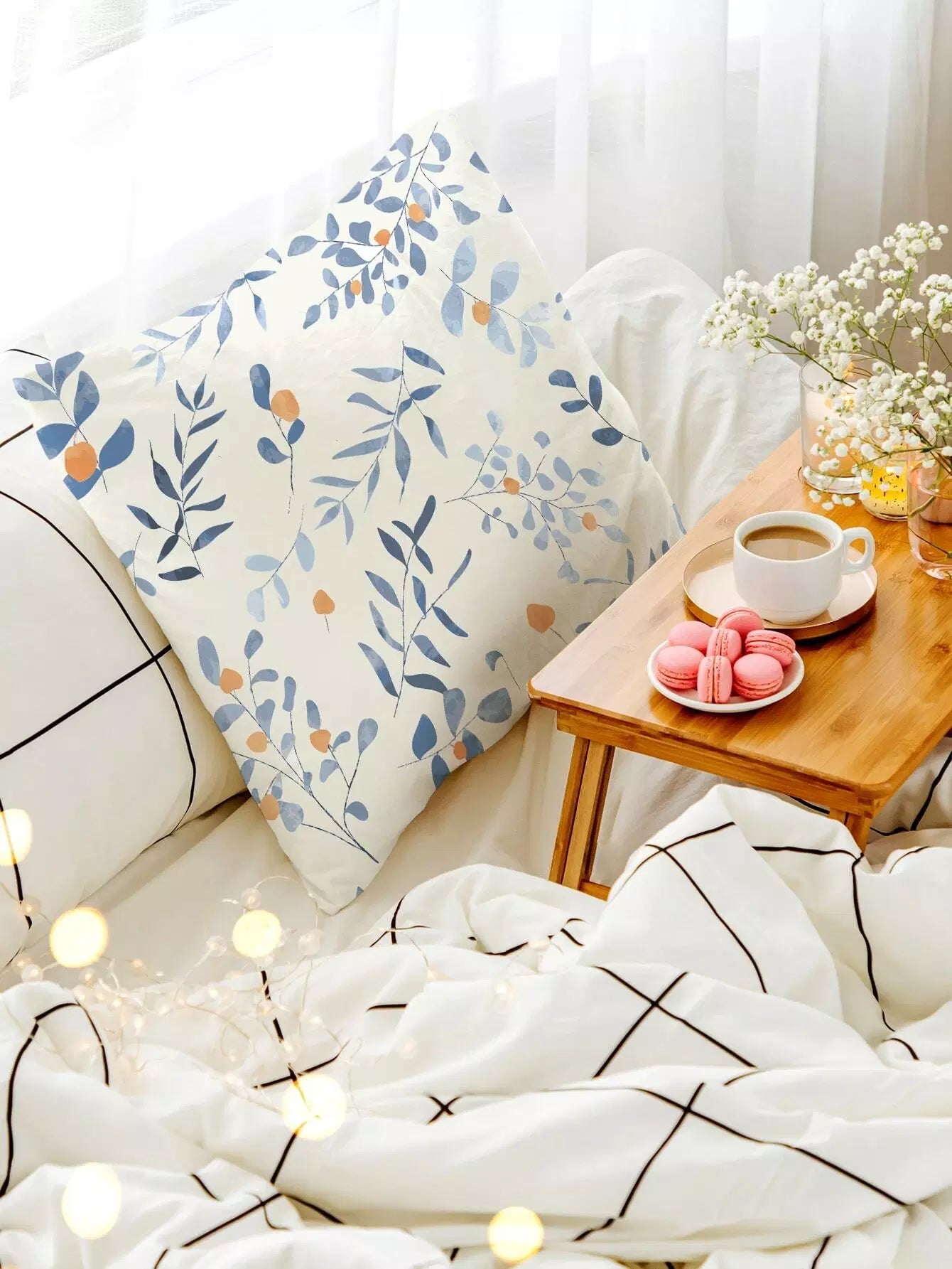 المنزل والمعيشة - غطاء وسادة بطباعة نباتات بدون حشو