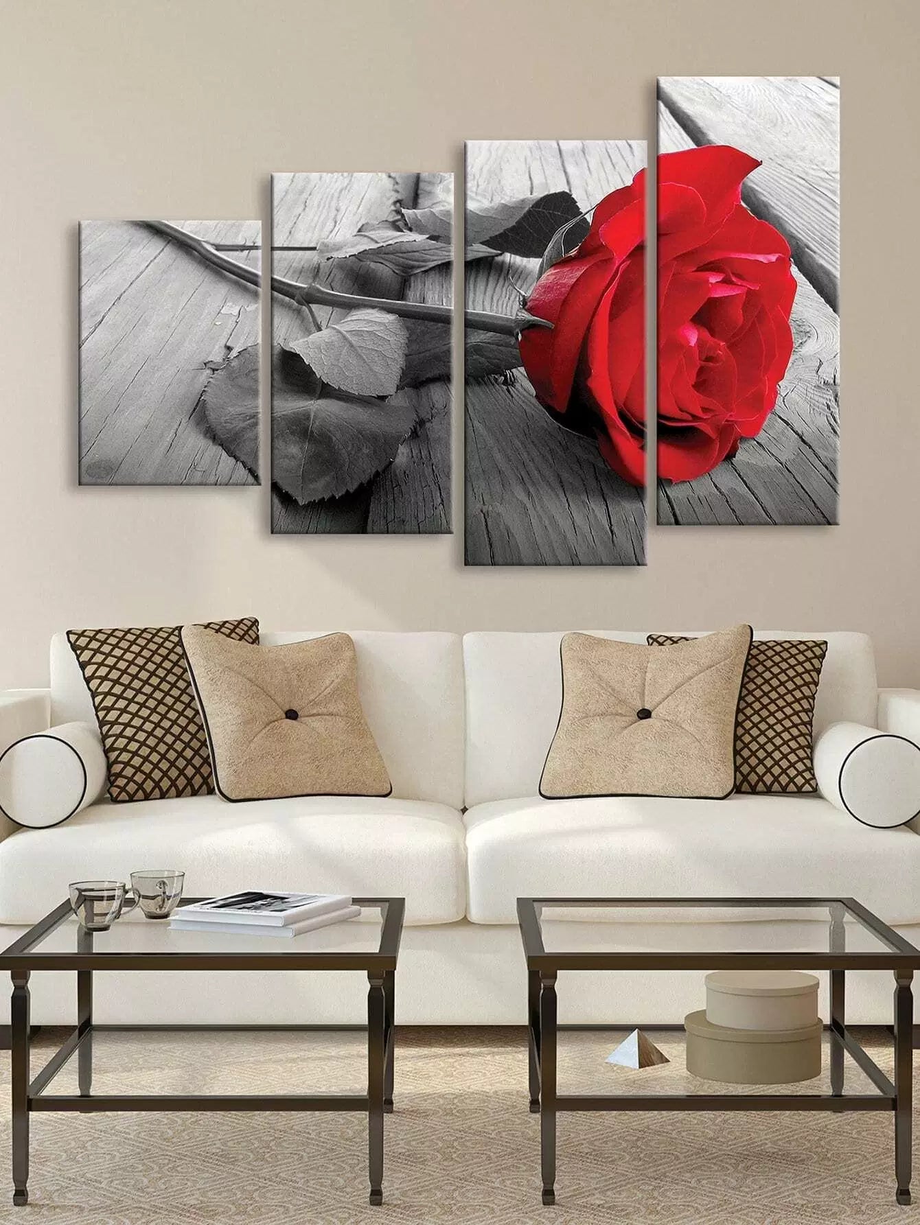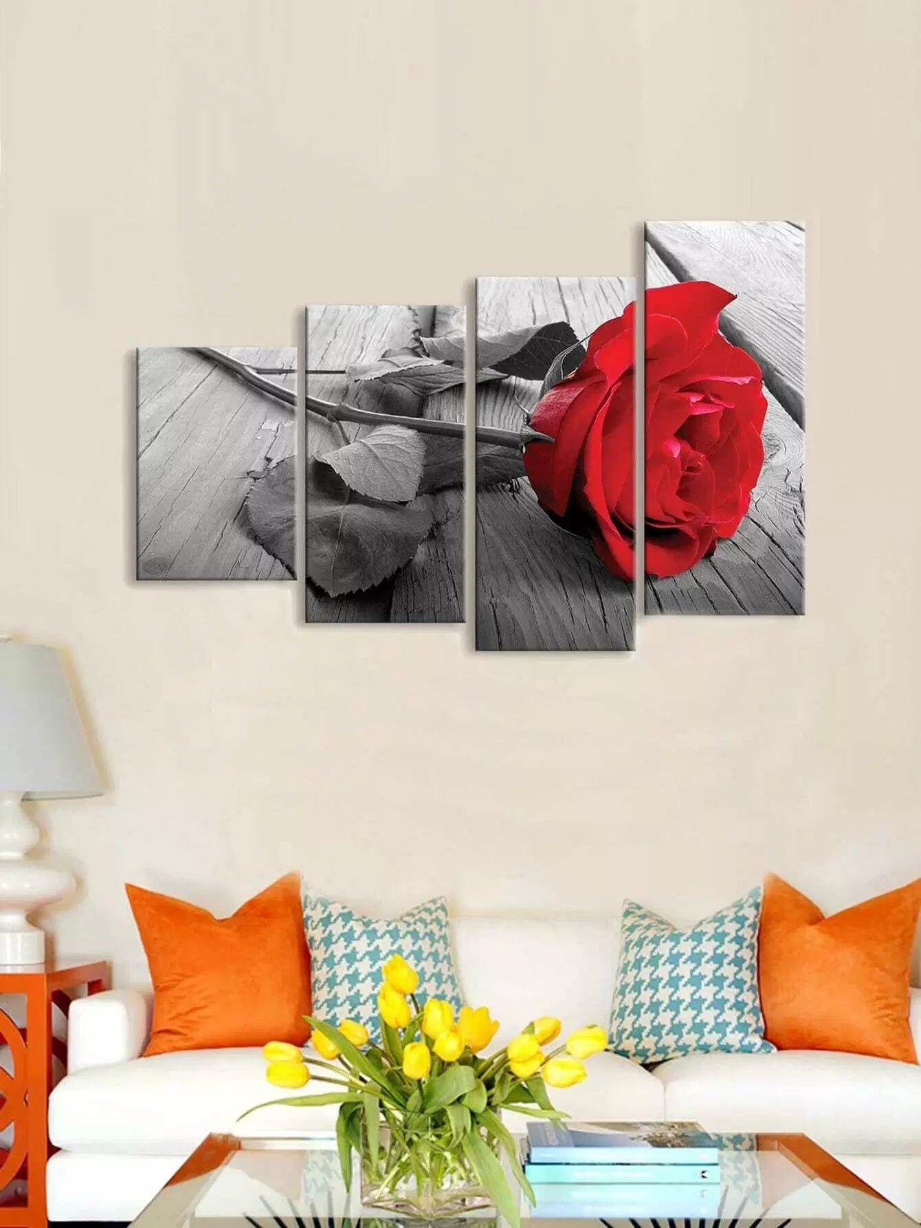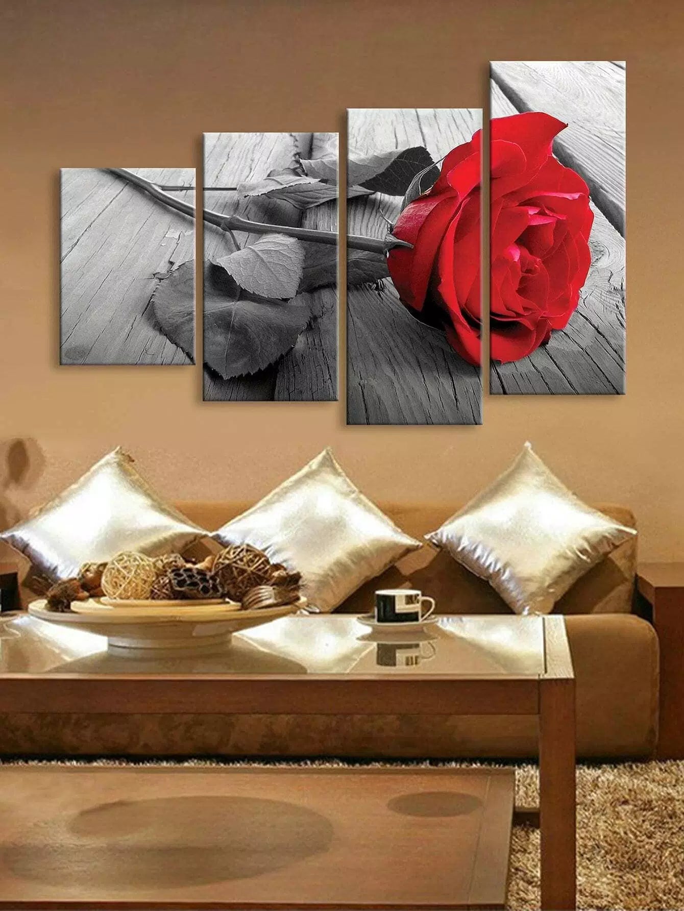 المنزل والمعيشة - لوحة فنية جدارية بطباعة وردة 4 قطع