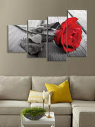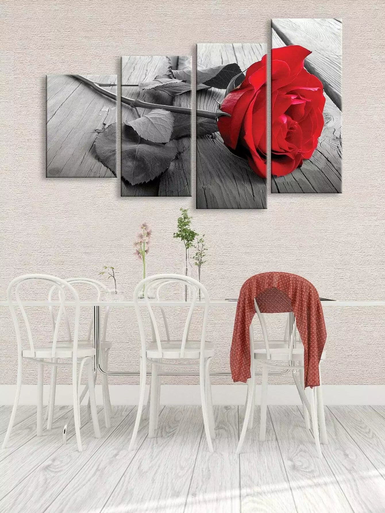 لوحة فنية جدارية مطبوعة عليها وردة مكونة من 4 قطع