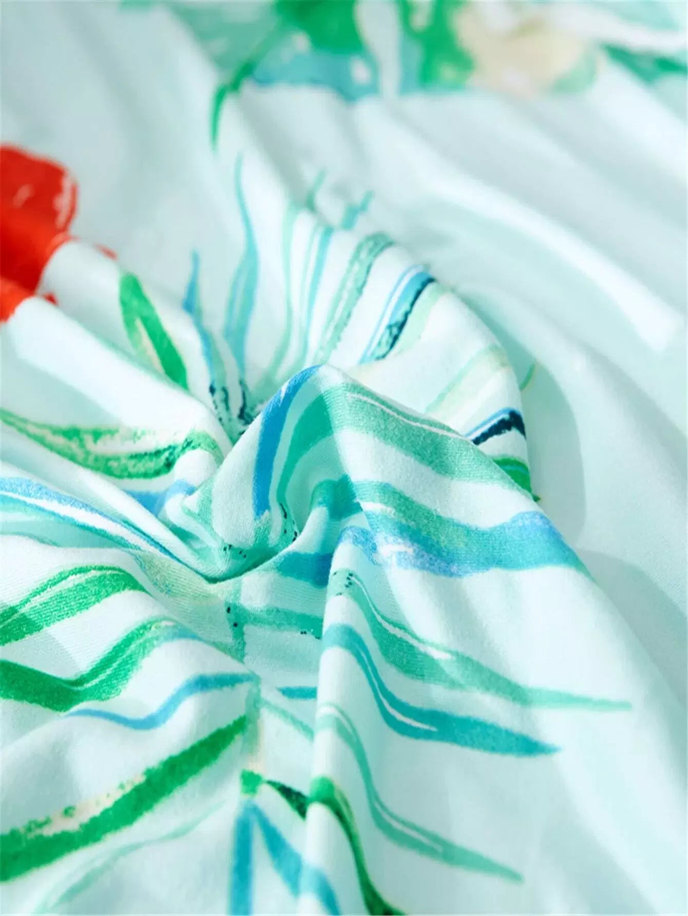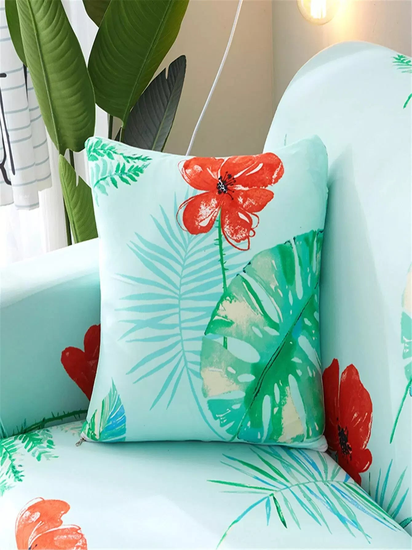 غطاء كنبة بطبعة أوراق الشجر وغطاء وسادة 1 قطعة
