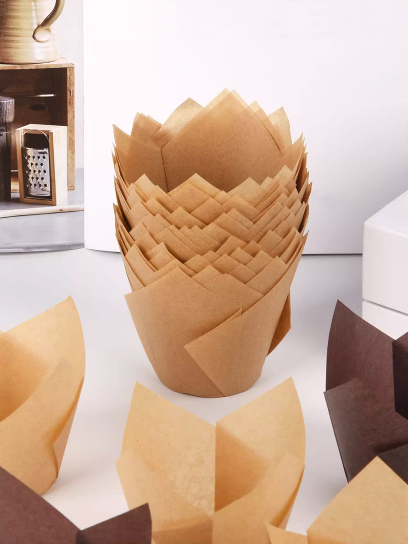 50 قطعة/مجموعة أكواب ورقية للكيك - أكواب ورقية عصرية متينة للكب كيك للمطبخ