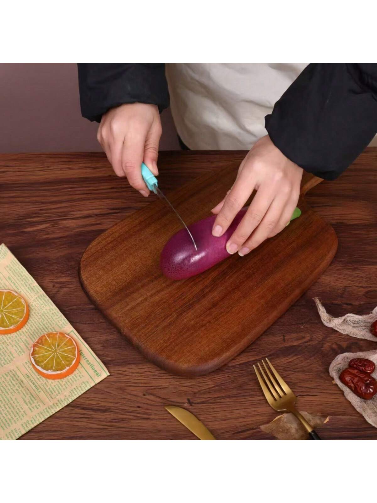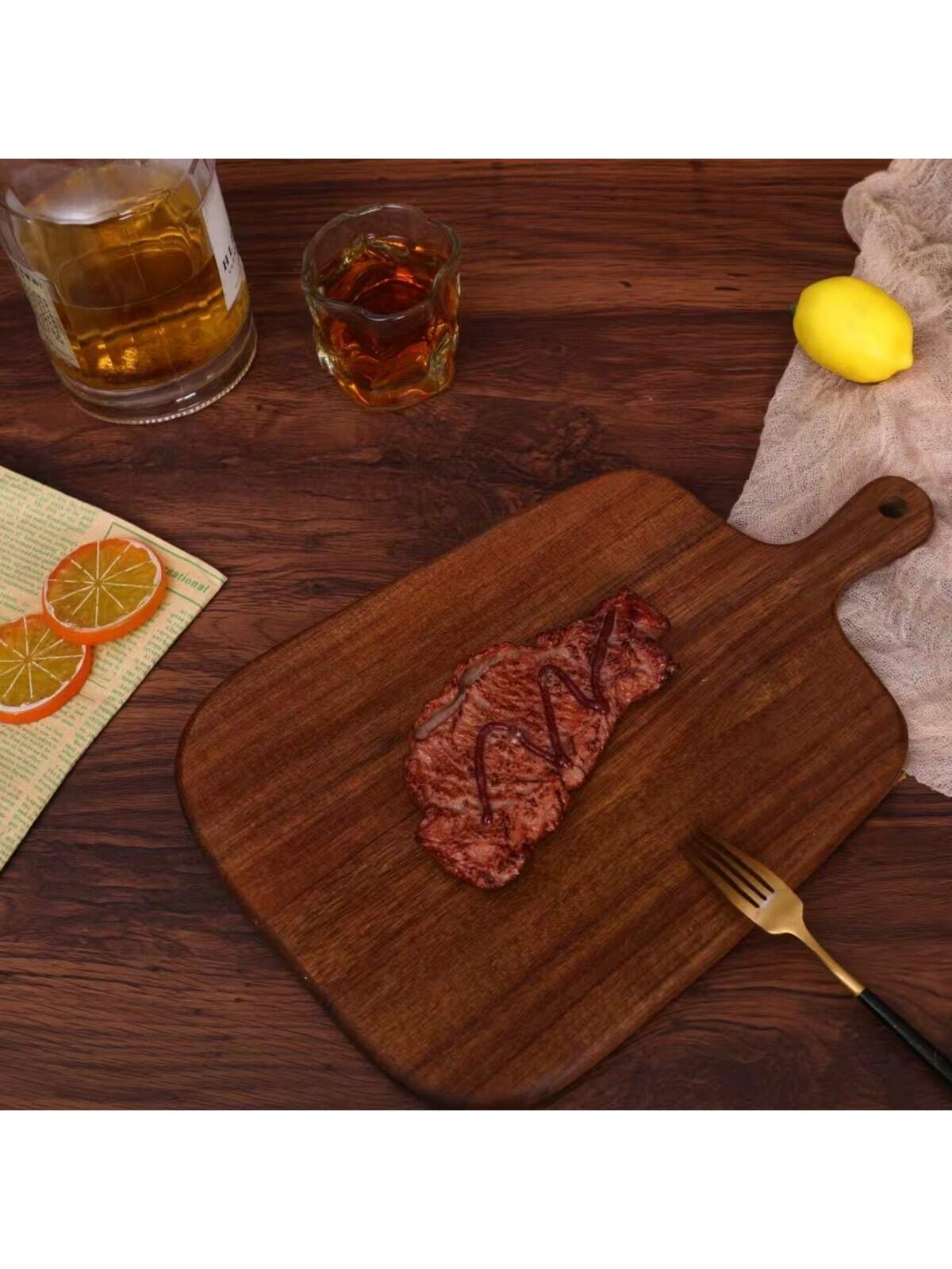 1pc Rosewood Cutting Board - Wooden Kitchen Chopping Board, Stylish Long Handle, Solid Wood, For Meat,