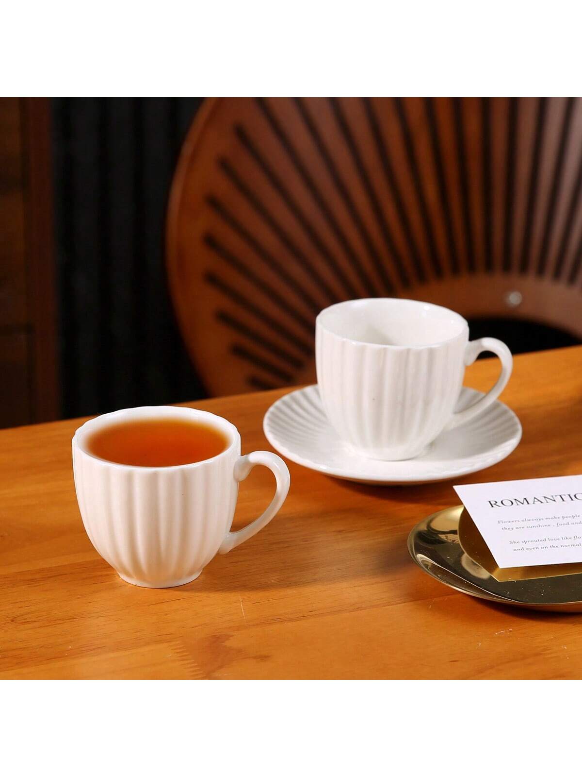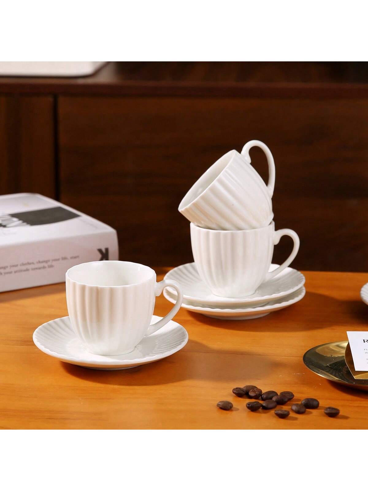 طقم فنجان وصحن قهوة فاخر من السيراميك المطلي بالذهب، سعة 90-100 مل/3.1-3.3 أونصة، مناسب للإسبريسو والقهوة التركية