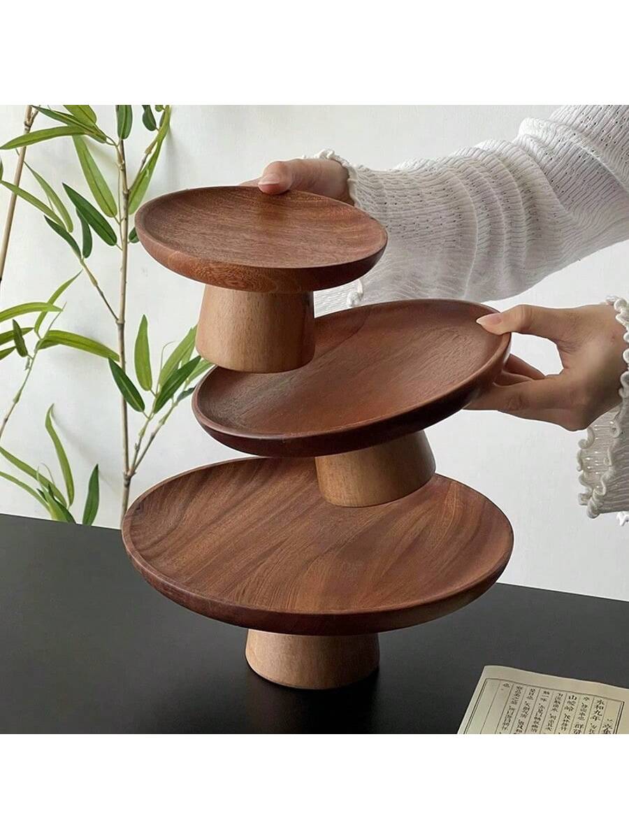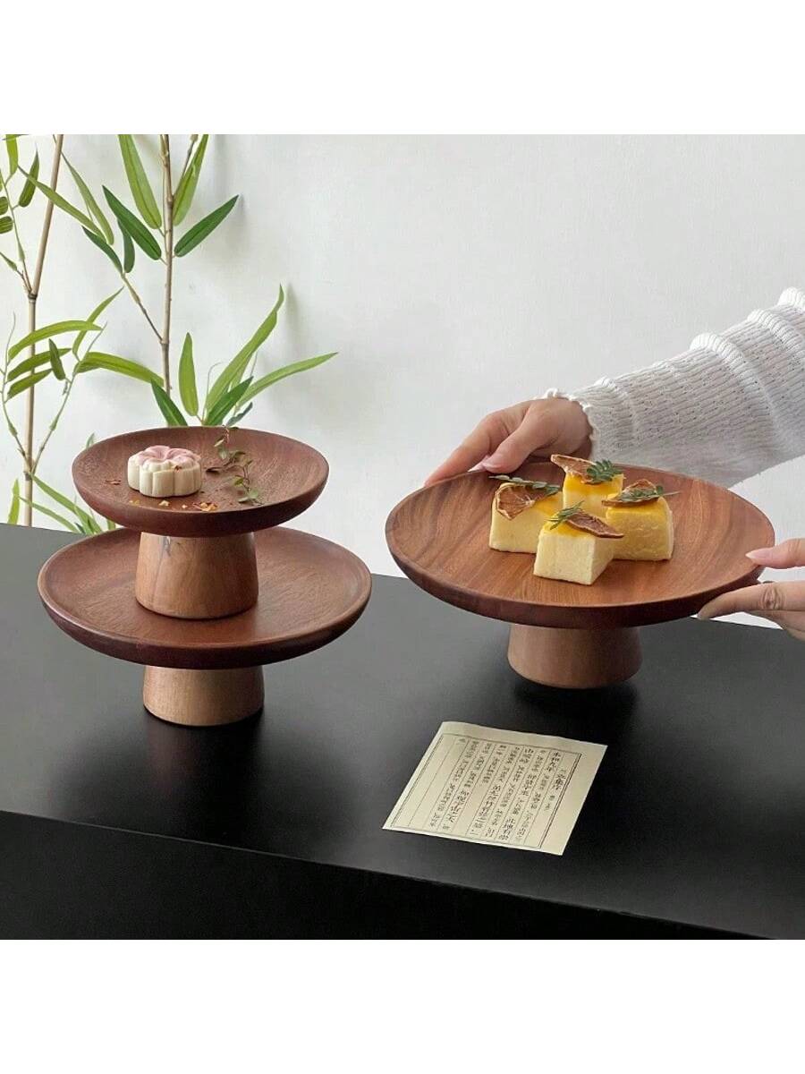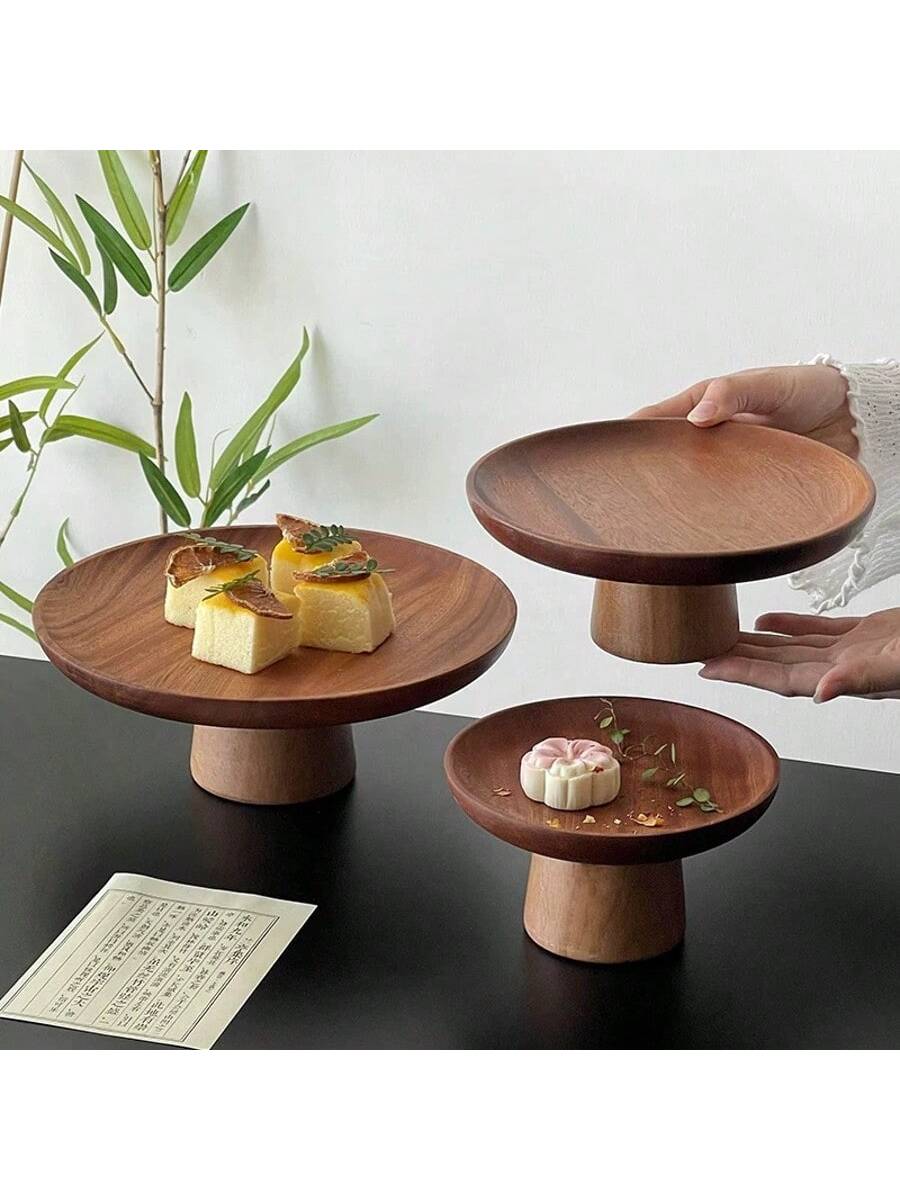 حامل كيك خشبي قطعة واحدة بقاعدة خشبية - طبق عرض الحلويات