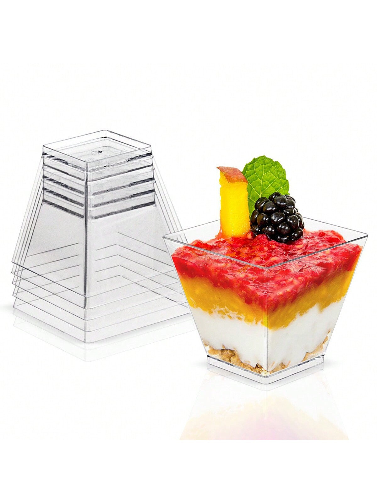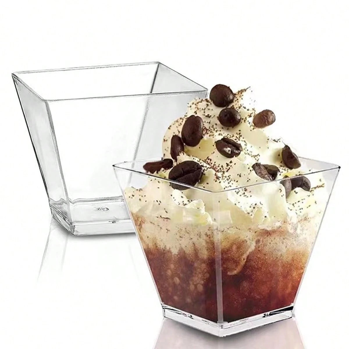 5/20/50/100 قطعة/مجموعة أكواب موس مربعة شفافة، أكواب حلويات ومعجنات للبودينغ والحلويات
