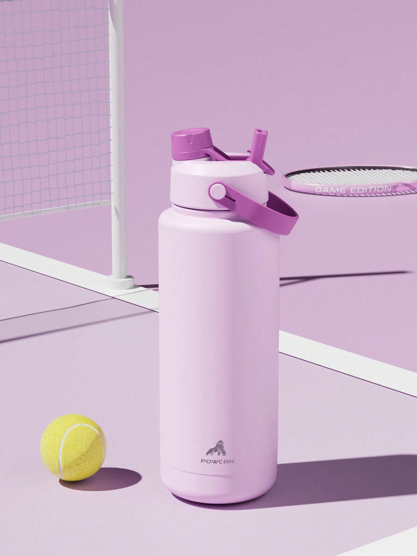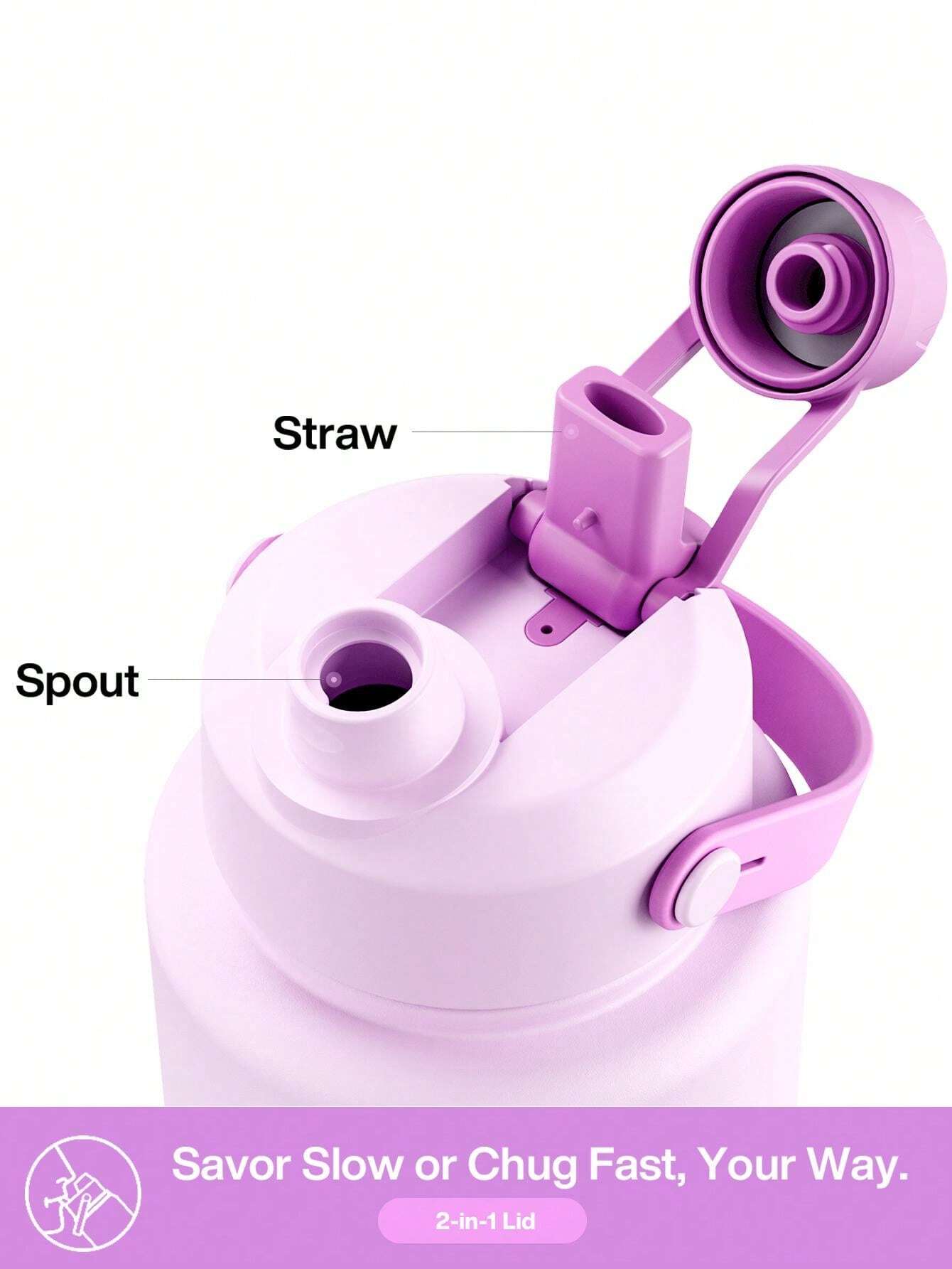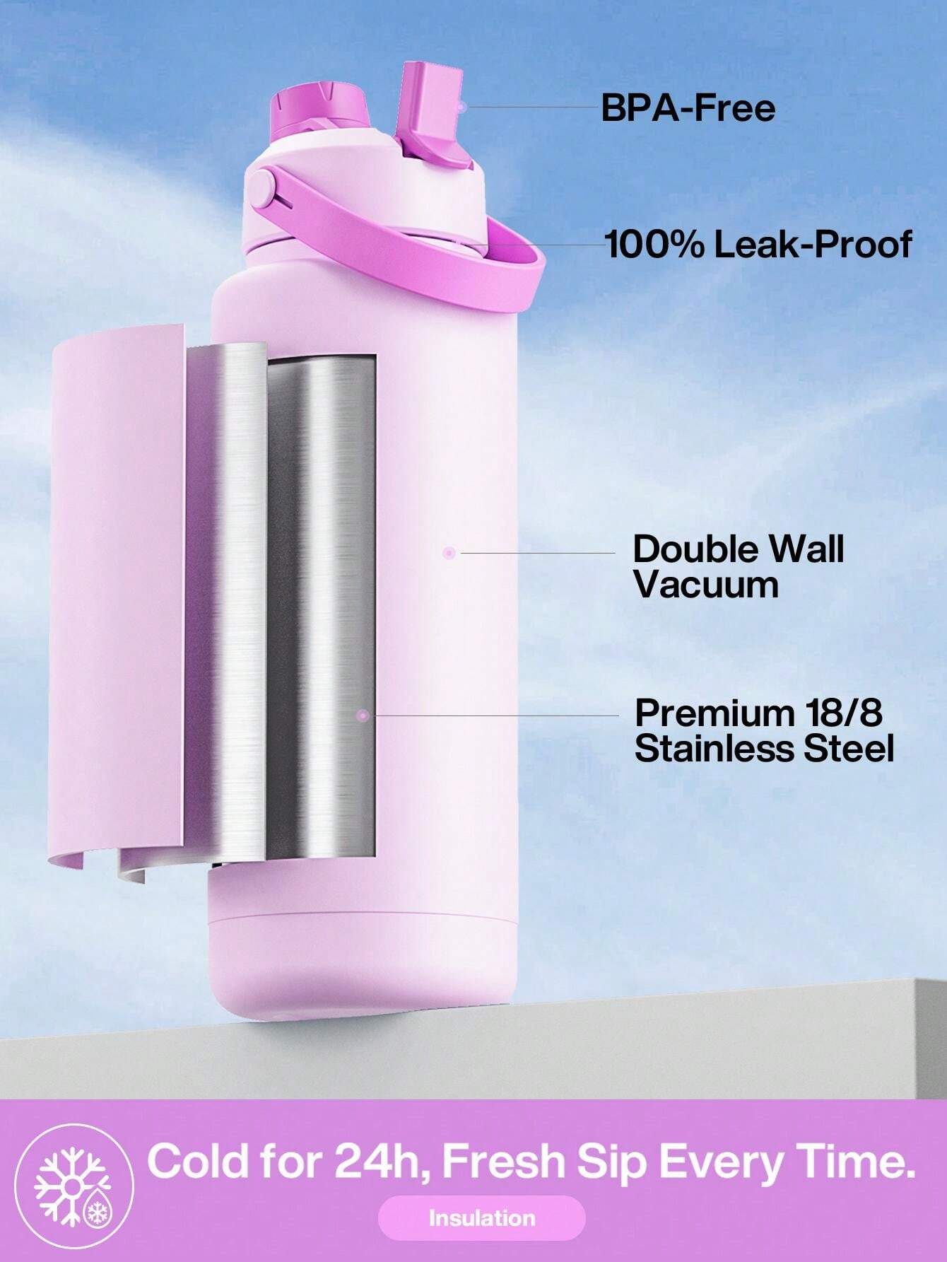 زجاجة ماء معزولة سعة 40 أونصة مع غطاء مزدوج الفوهة وماصة، تحافظ على برودة الماء لمدة 24 ساعة، مانعة للتسرب بجدار مزدوج