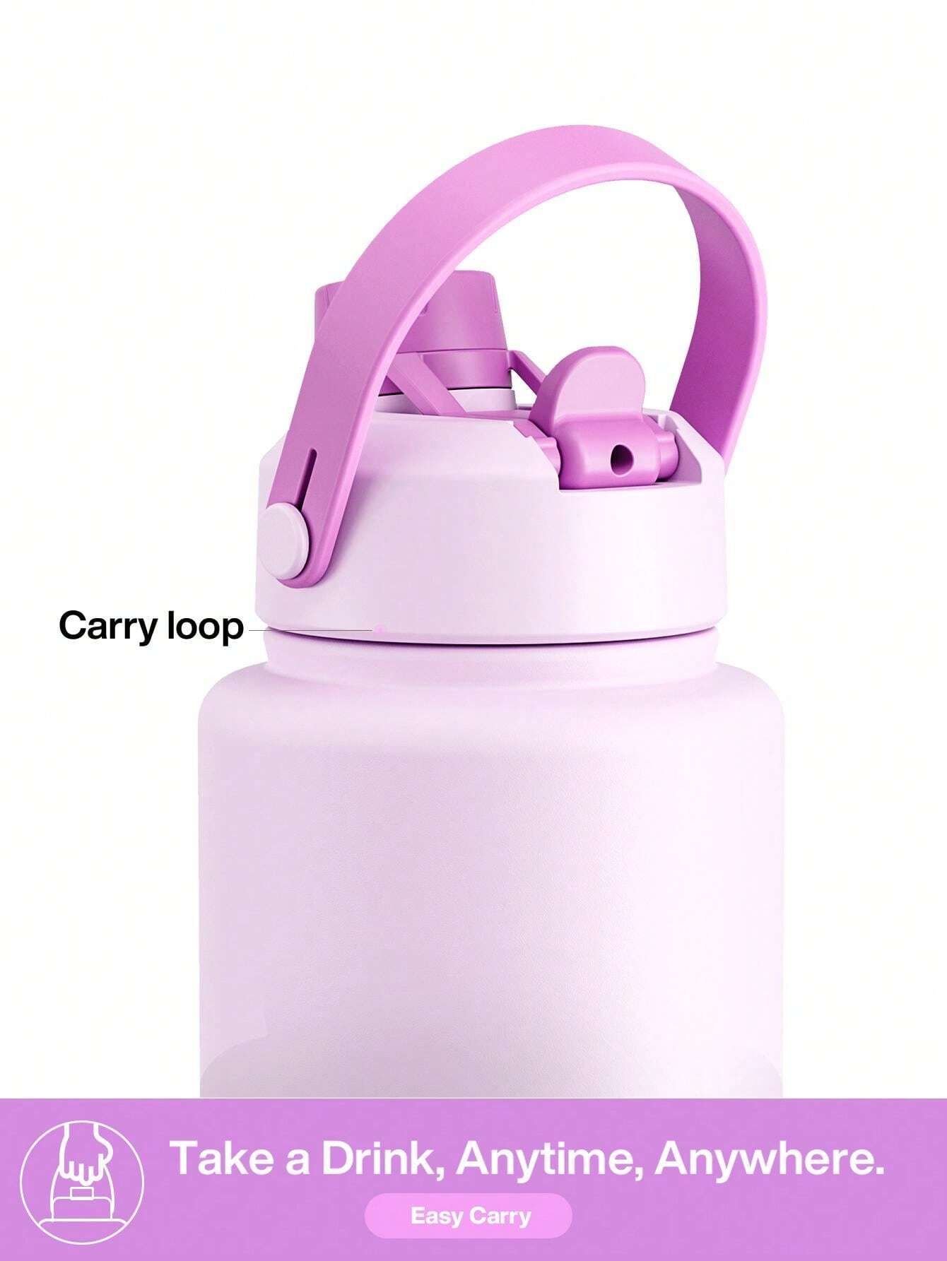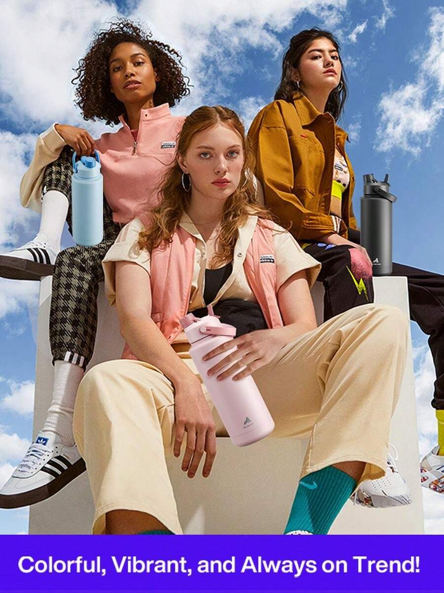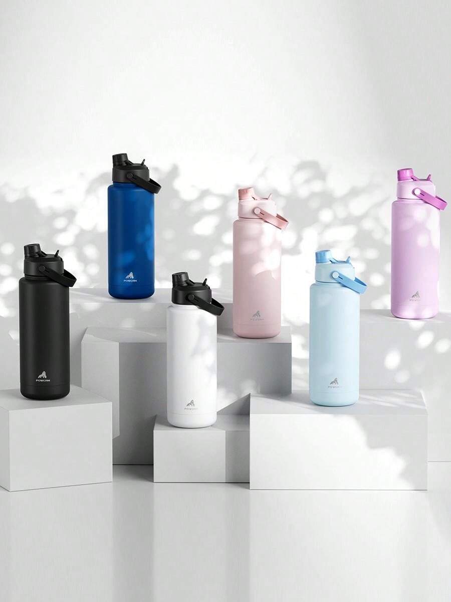 زجاجة ماء معزولة سعة 40 أونصة مع غطاء مزدوج الفوهة وماصة، تحافظ على برودة الماء لمدة 24 ساعة، مانعة للتسرب بجدار مزدوج