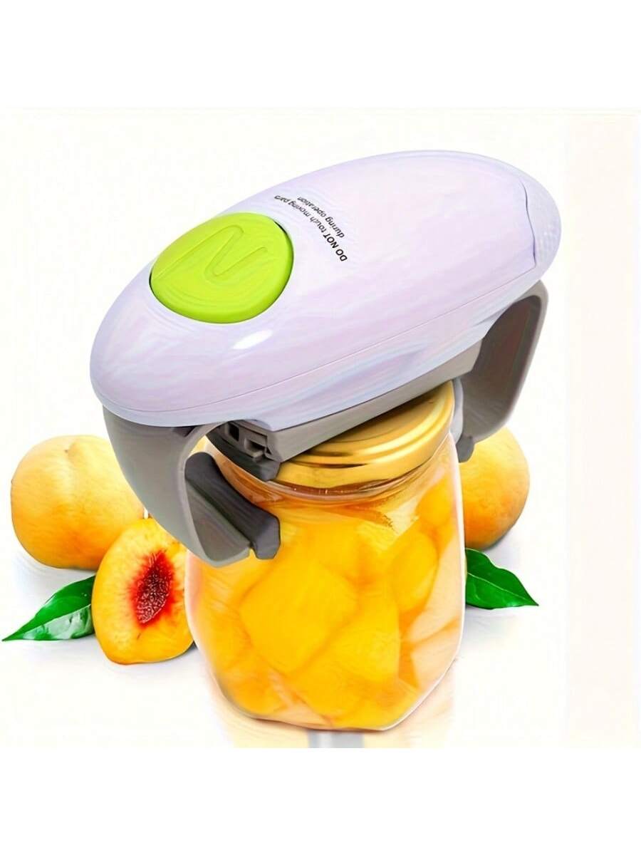 فتاحة علب وزجاجات كهربائية قطعة واحدة - زر واحد لفتح الغطاء تلقائيًا وإغلاقه بإحكام - أداة مطبخ تعمل بالبطارية
