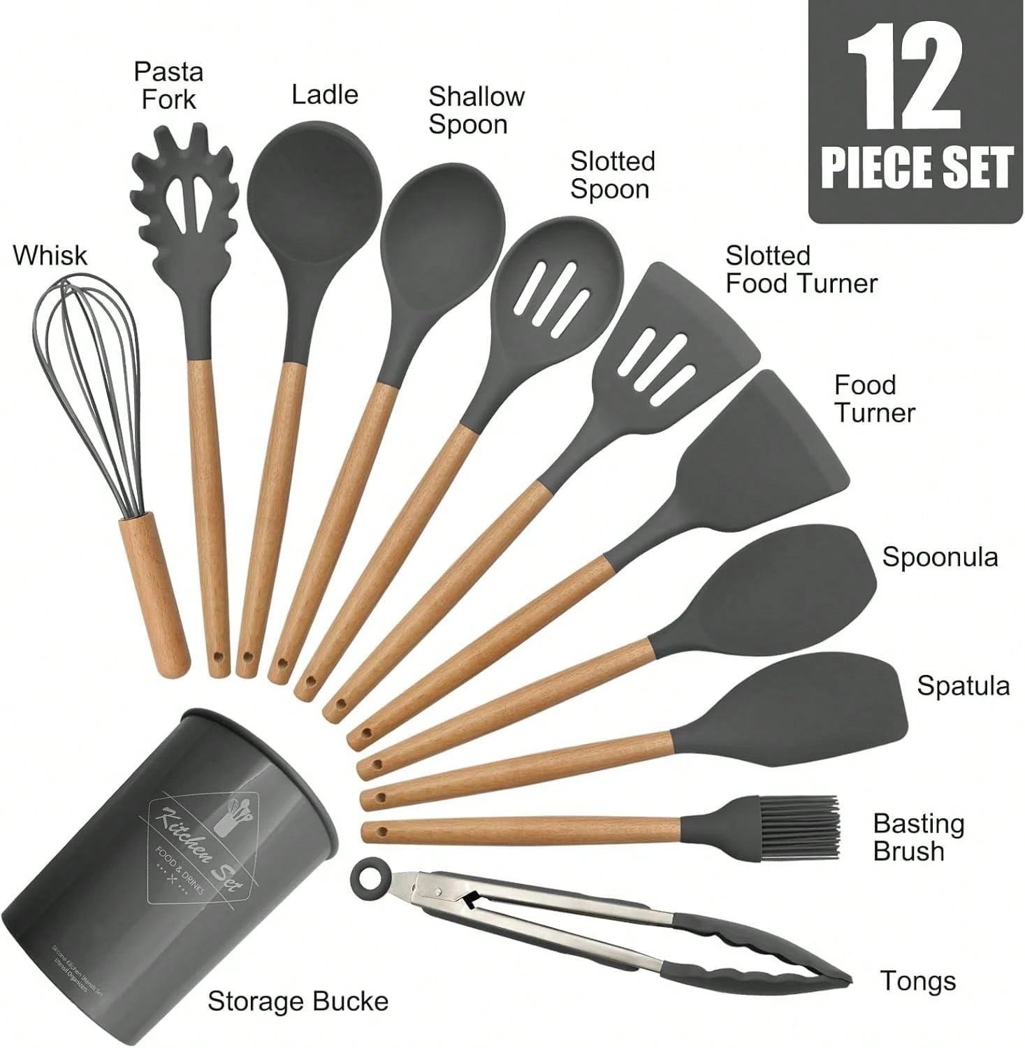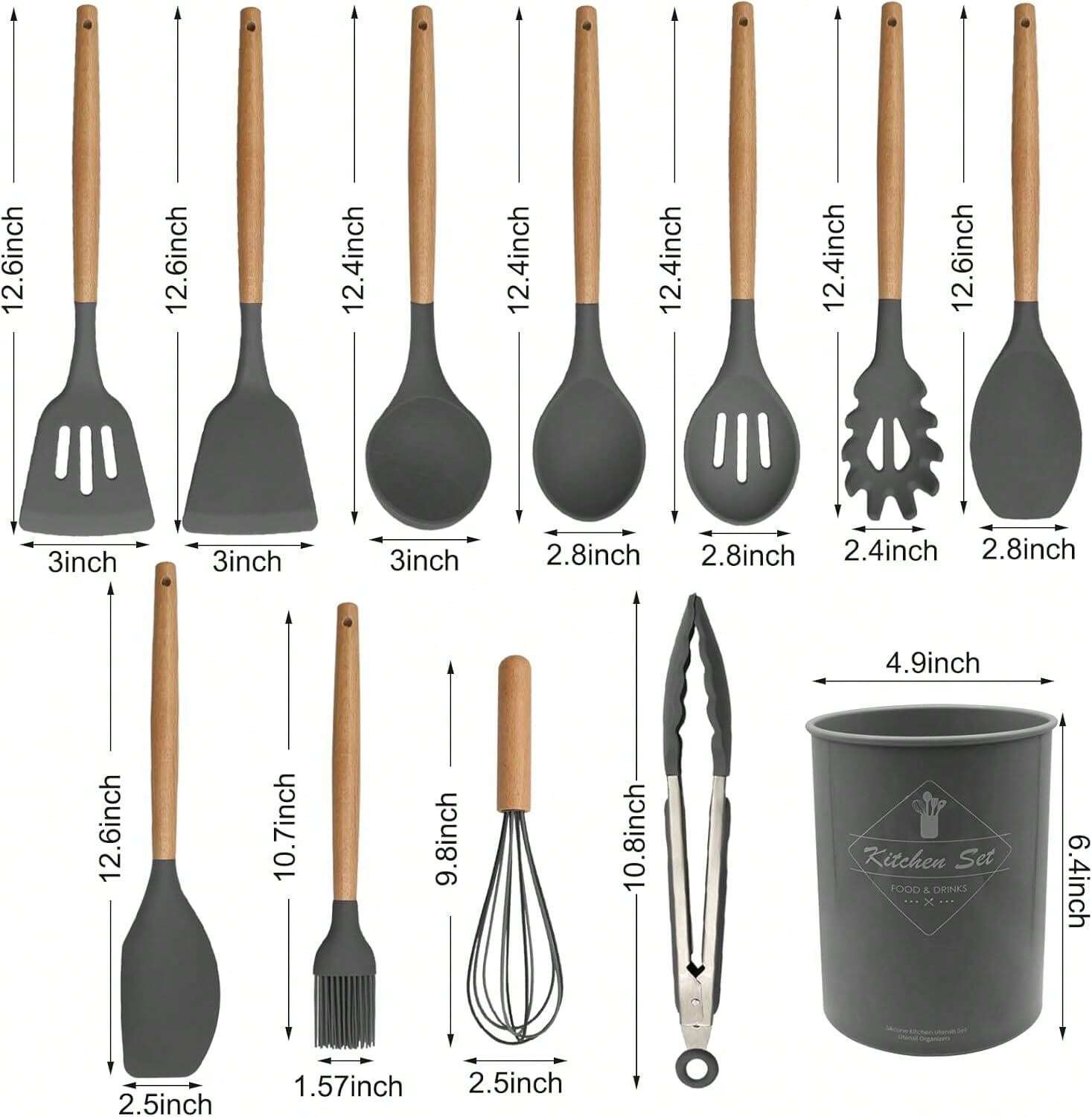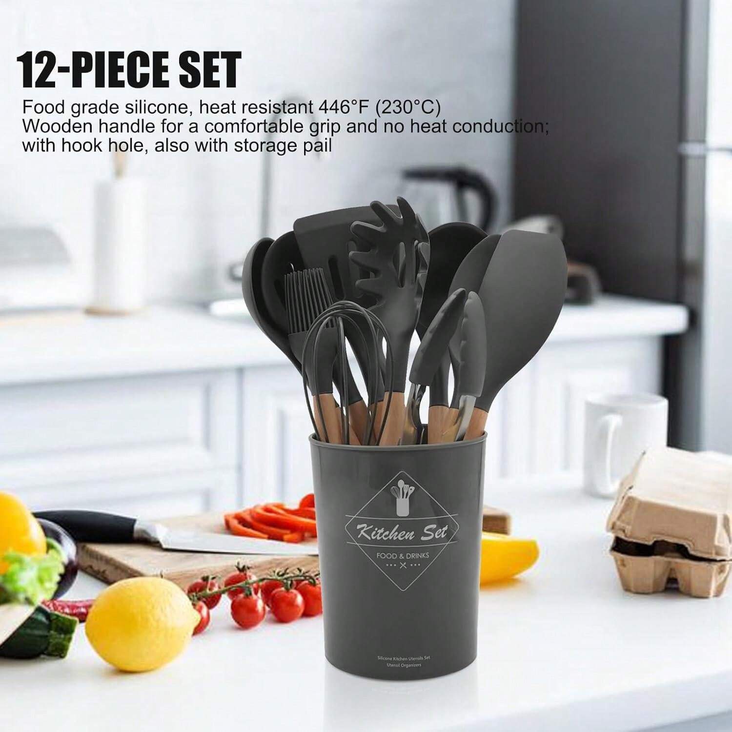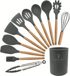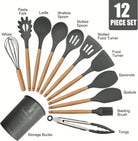 طقم أدوات مطبخ من السيليكون بمقابض خشبية، 12 قطعة/طقم أو 44 قطعة/طقم