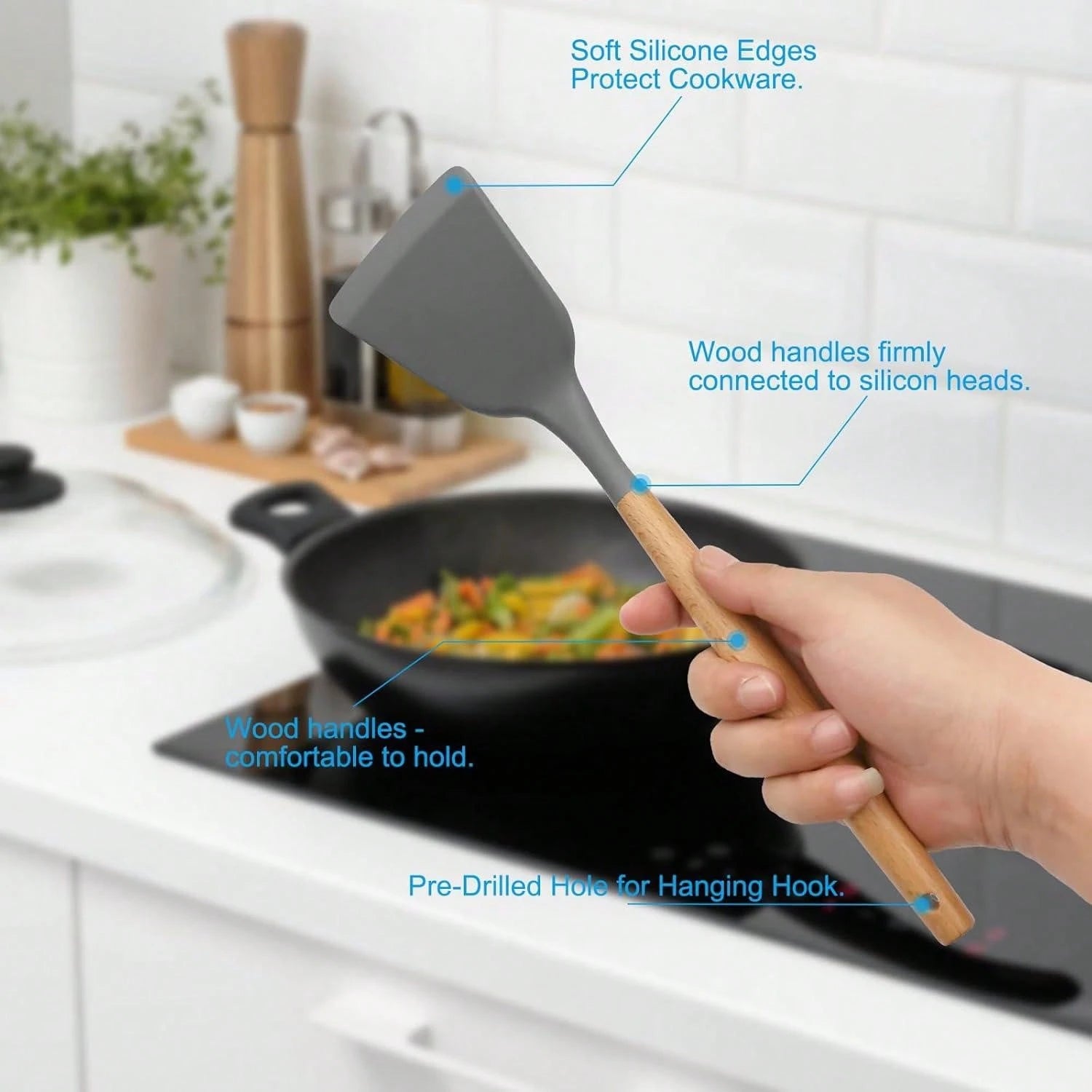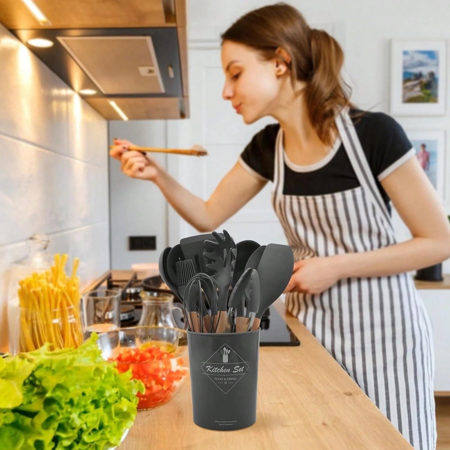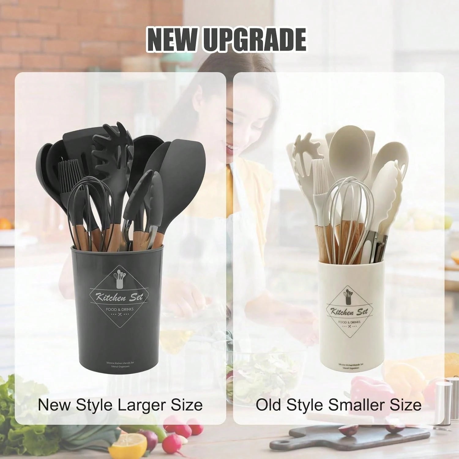 طقم أدوات مطبخ من السيليكون بمقابض خشبية، 12 قطعة/طقم أو 44 قطعة/طقم